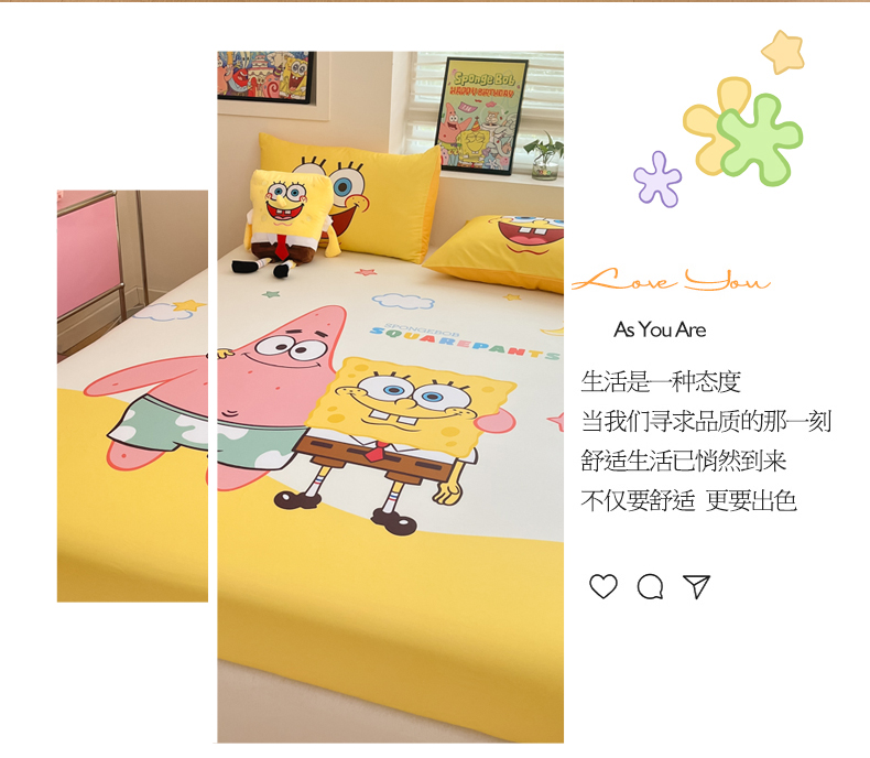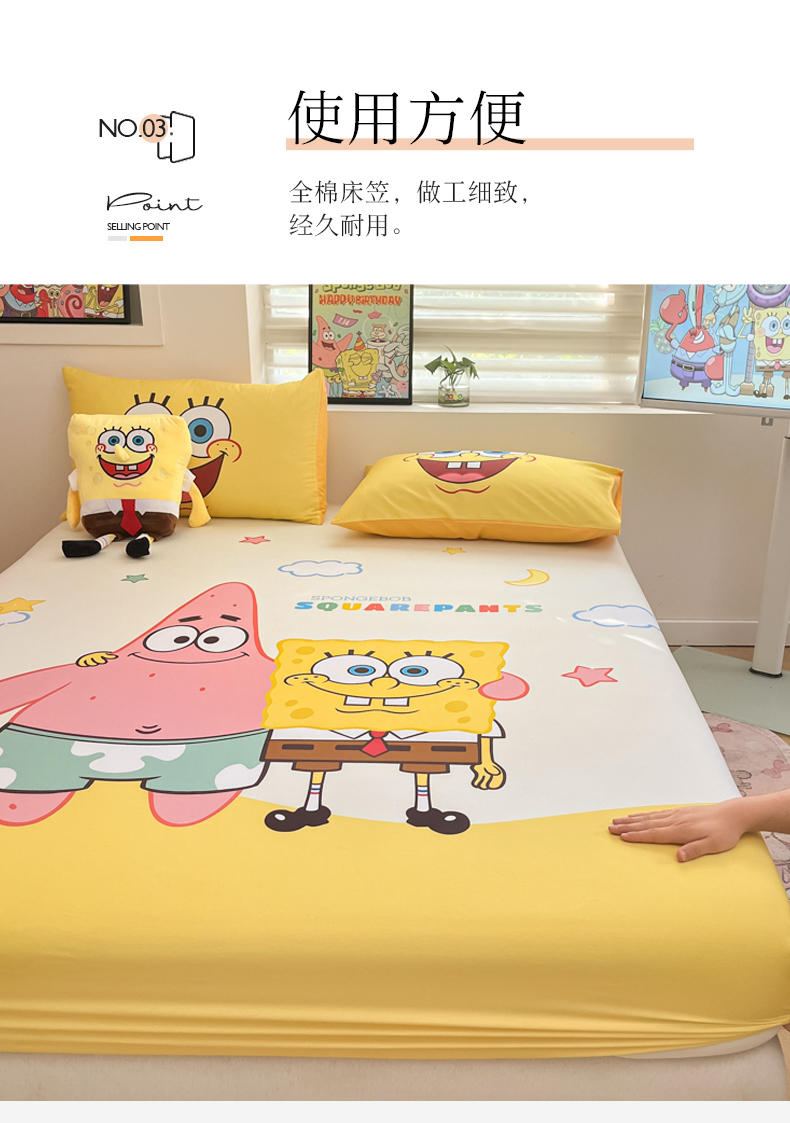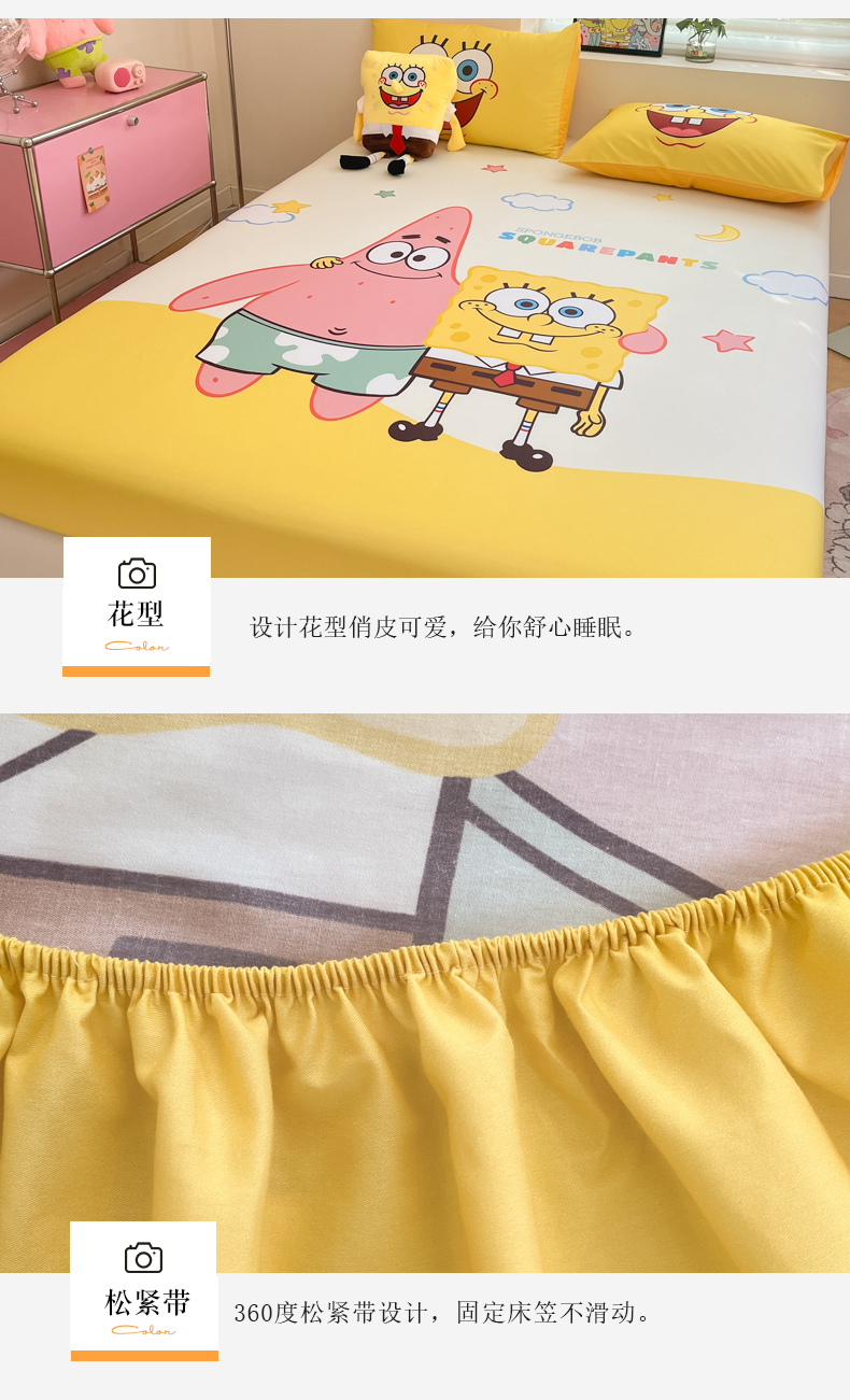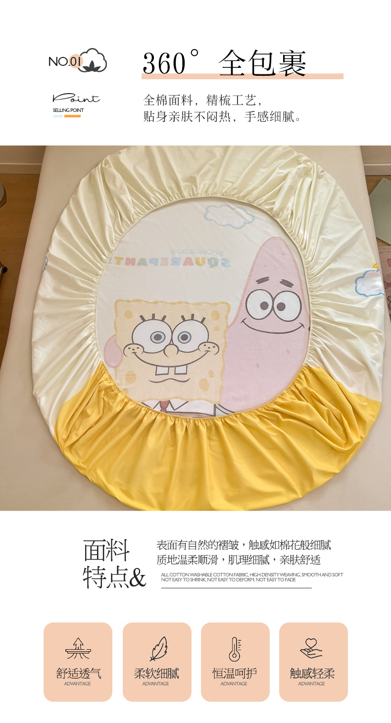 金爱家2025新款全棉大版单品-床笠 棉单品-伙伴海绵宝宝