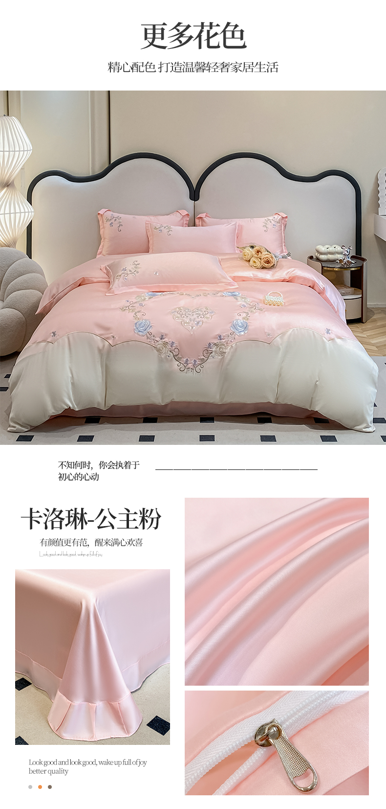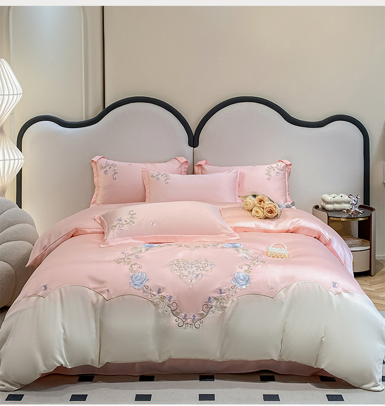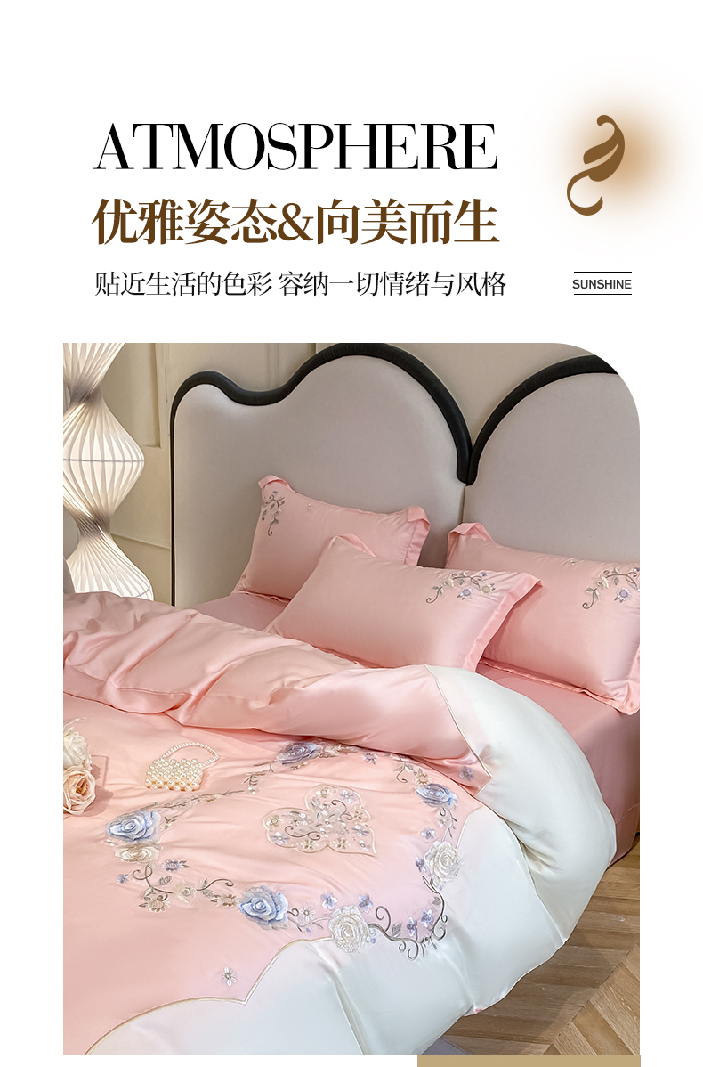 (总)爱家 2023新款超柔雪莲天丝刺绣四件套-花开半夏系列,花开半夏-宾利蓝,花开半夏-公主粉,花开半夏-奶油黄,花开半夏-奶油绿,花开半夏-优雅紫