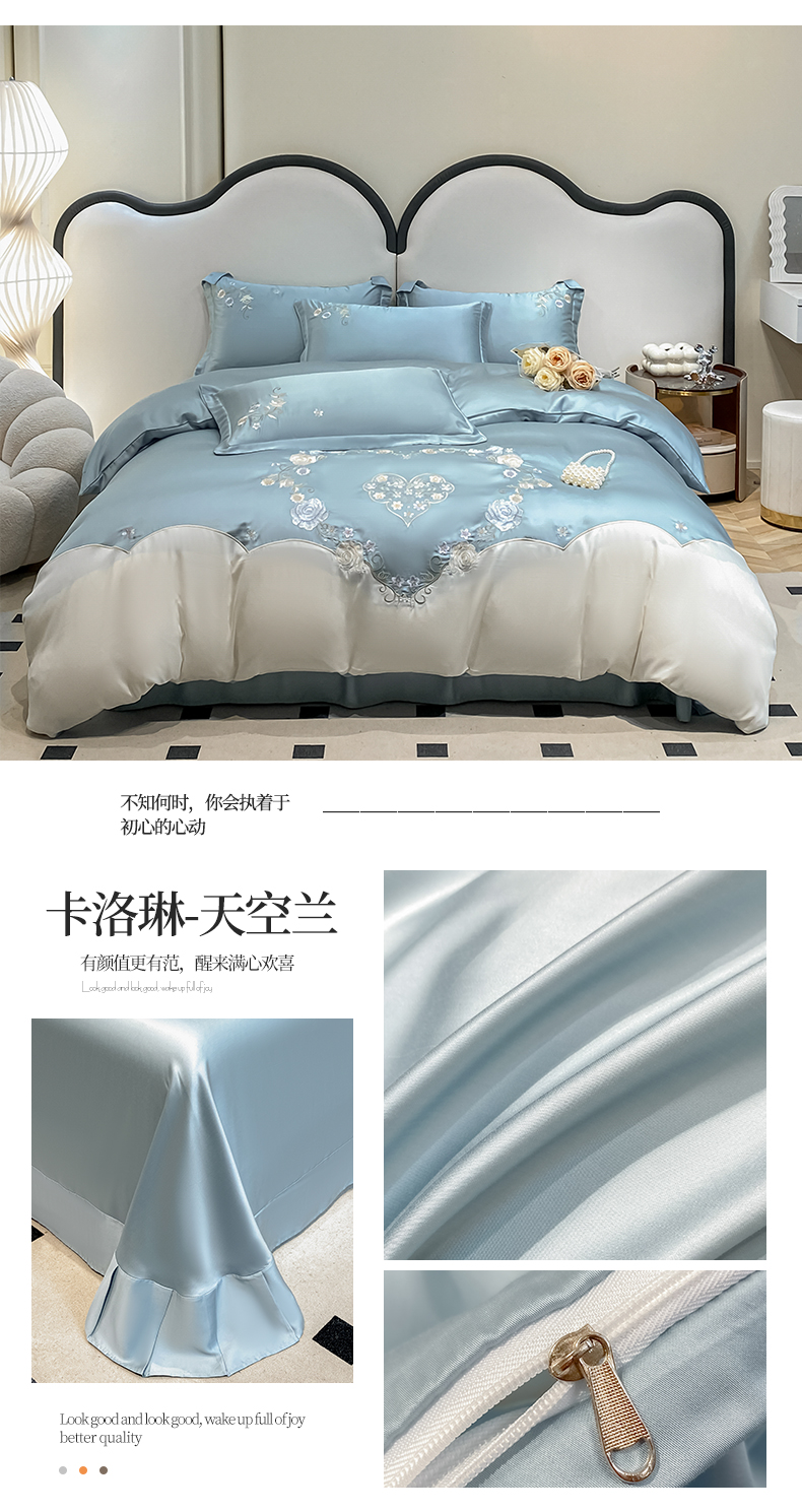 商品名称:爱家(原缔乐家纺) 2025新款雪莲天丝四件套-卡洛琳 卡洛琳-天空兰