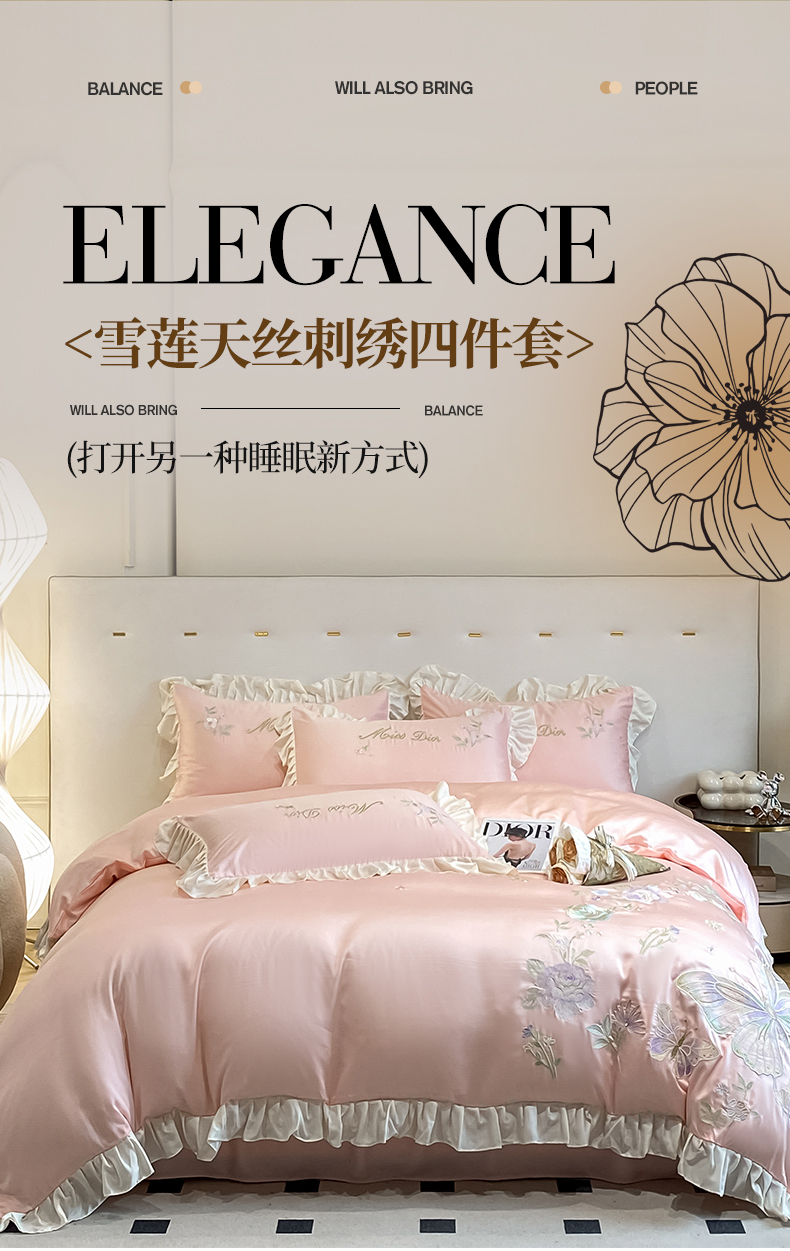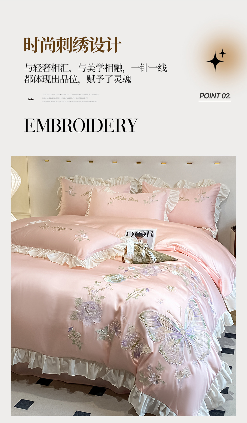 (总)爱家(原缔乐家纺) 2023新款超柔雪莲天丝刺绣四件套-蝴蝶梦系列,蝴蝶梦-公主粉,蝴蝶梦-奶昔白,蝴蝶梦-奶油绿,蝴蝶梦-天空兰