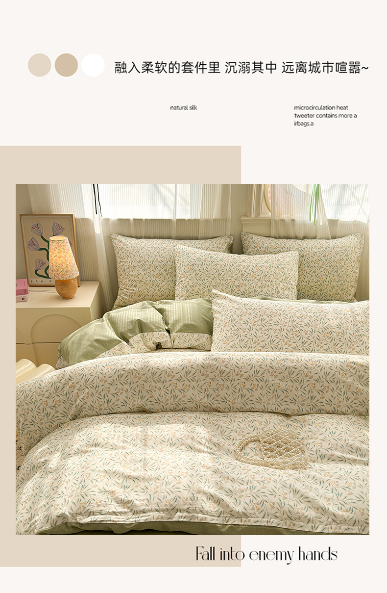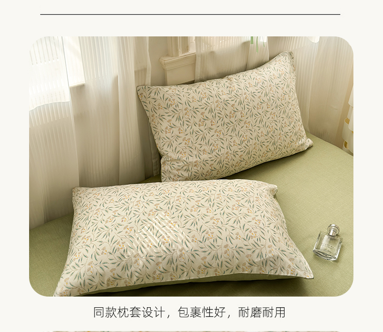 商品名称:清雅福 2025全棉13372小清新四件套和单被套早春系列第二批--单枕套 绿茵