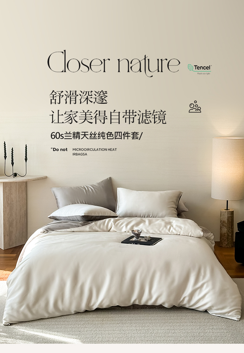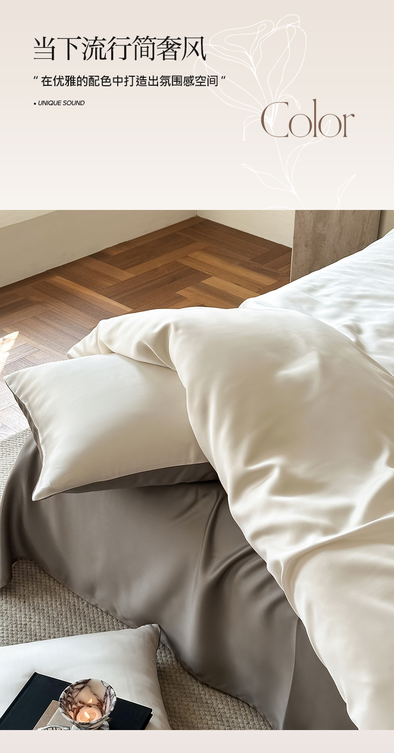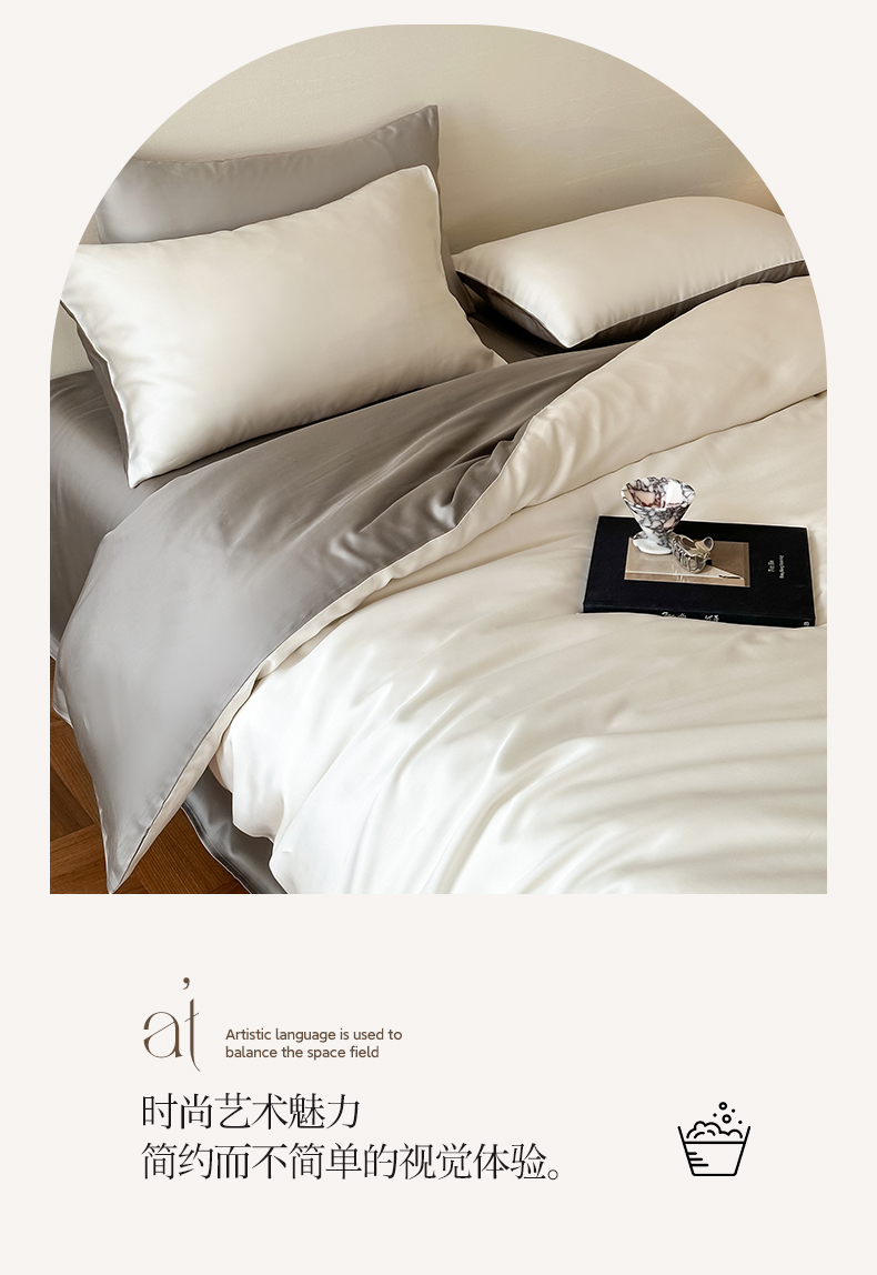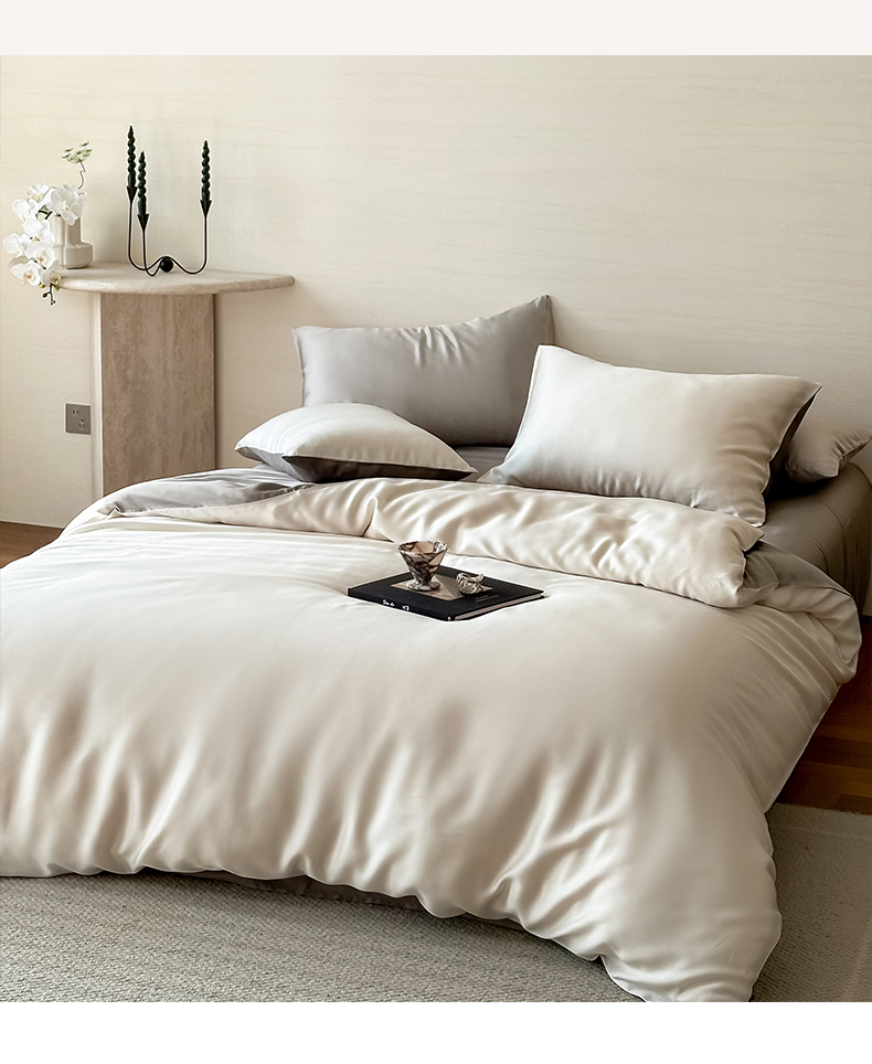 商品名称:帅露 2025新款60S纯色双拼四件套 乳蛋白-冷岩灰