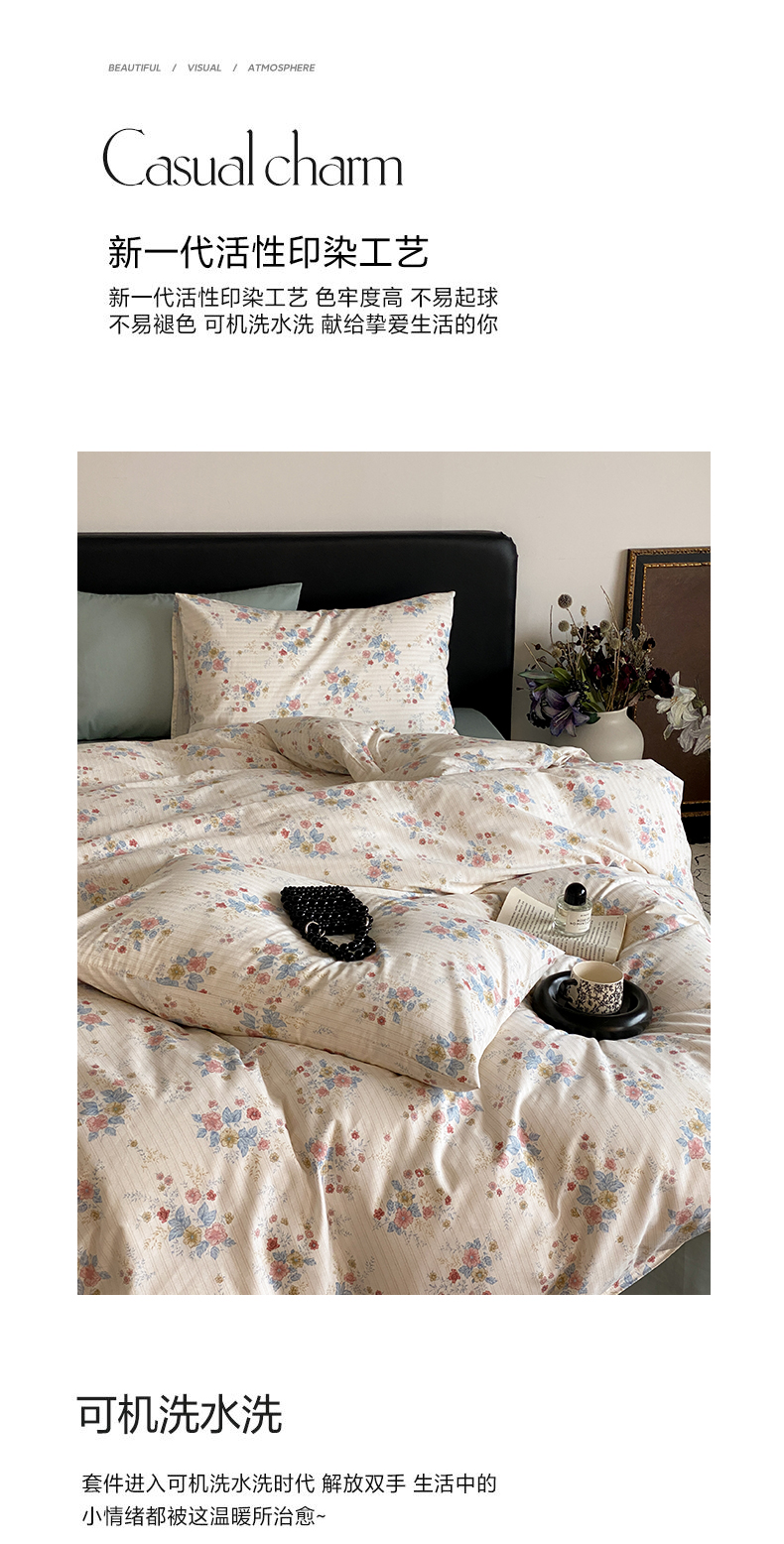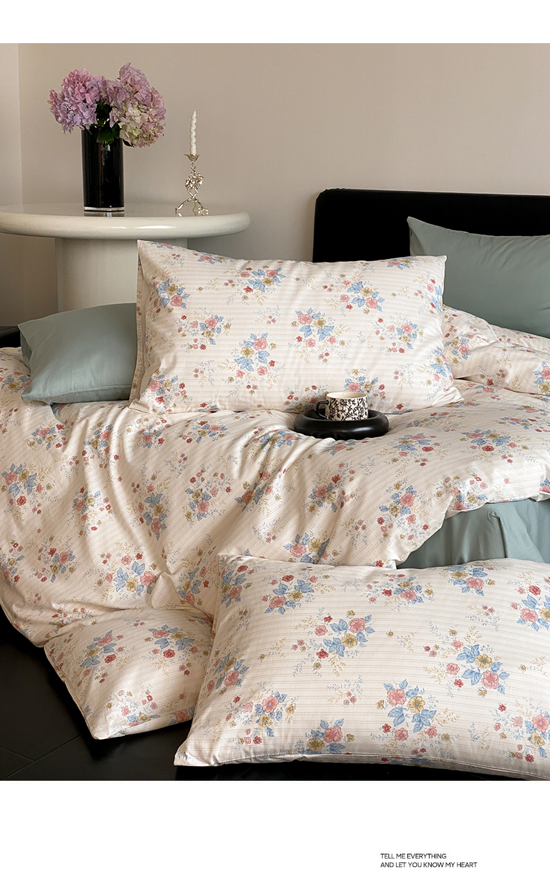 商品名称:帅露 2025开春新品全棉喷气13070小清新印花纯棉全棉四件套 淡雅花影