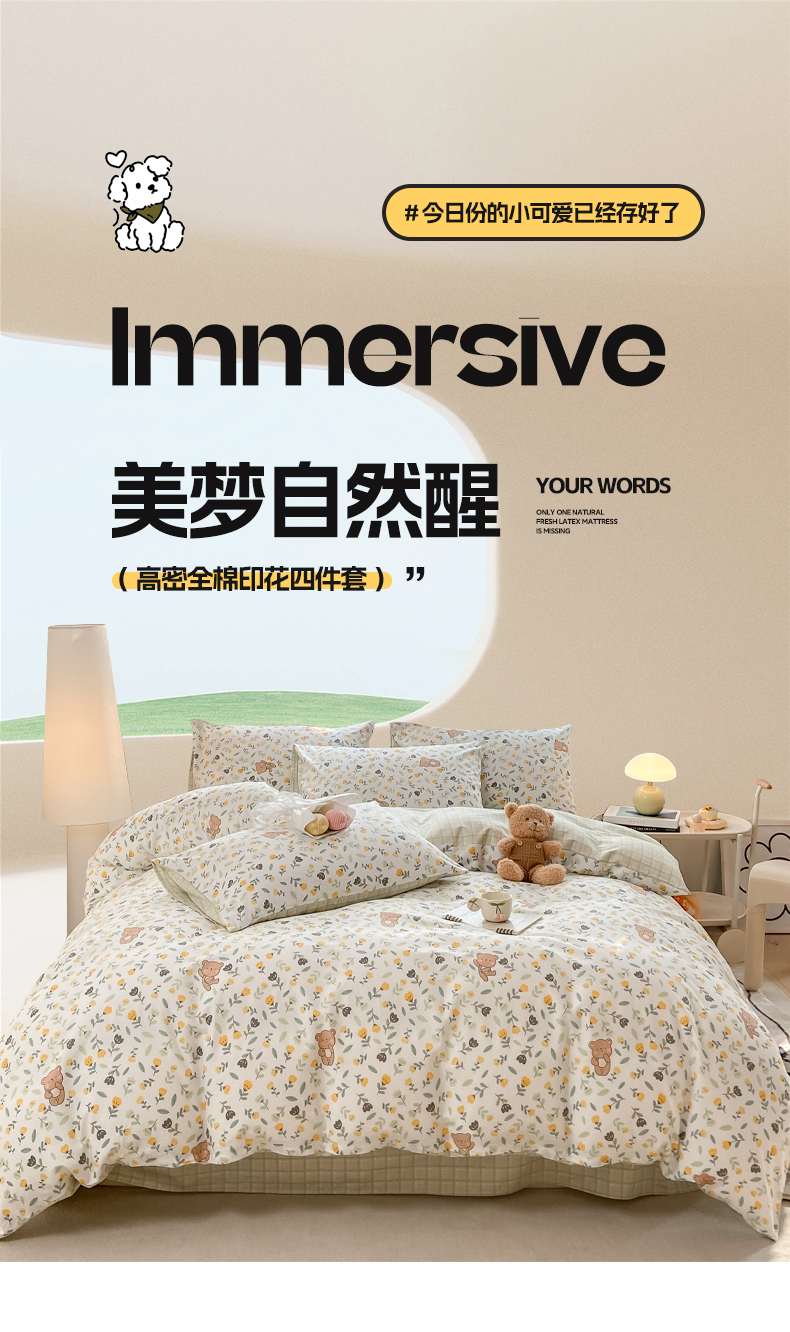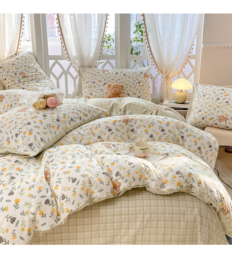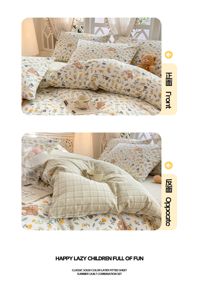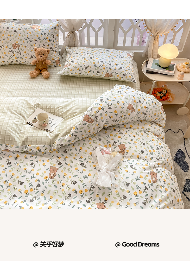 商品名称:帅露家纺 2025开春新品全棉喷气13070小清新印花纯棉全棉四件套 朵朵熊