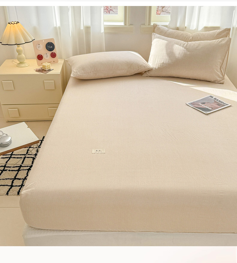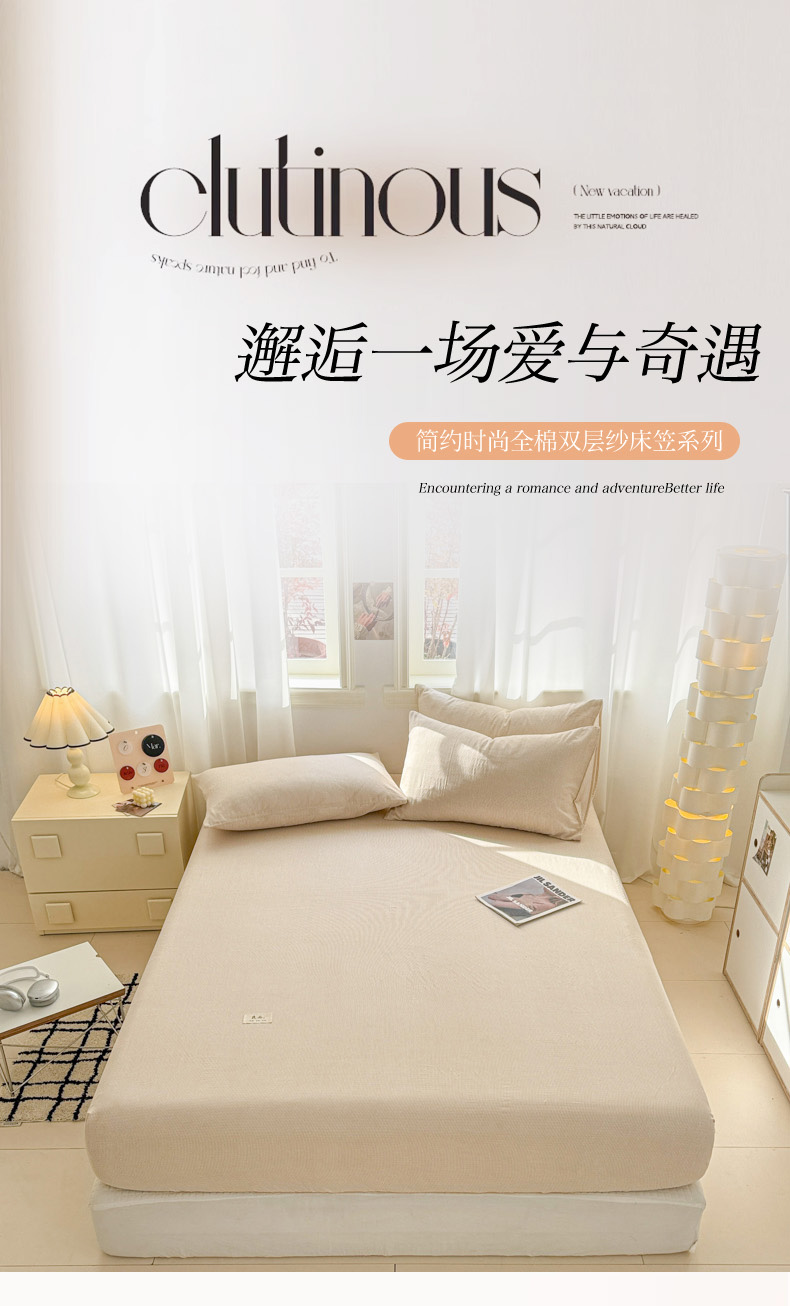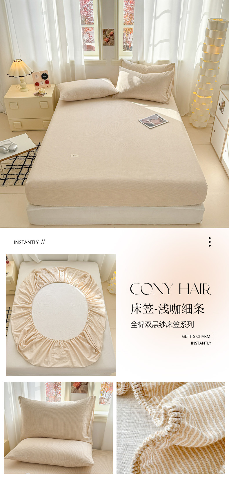 • 91家纺网 家纺一手货源 找家纺 眠博士2025新款 全棉双层纱 单床笠 双层纱床笠-浅咖细条