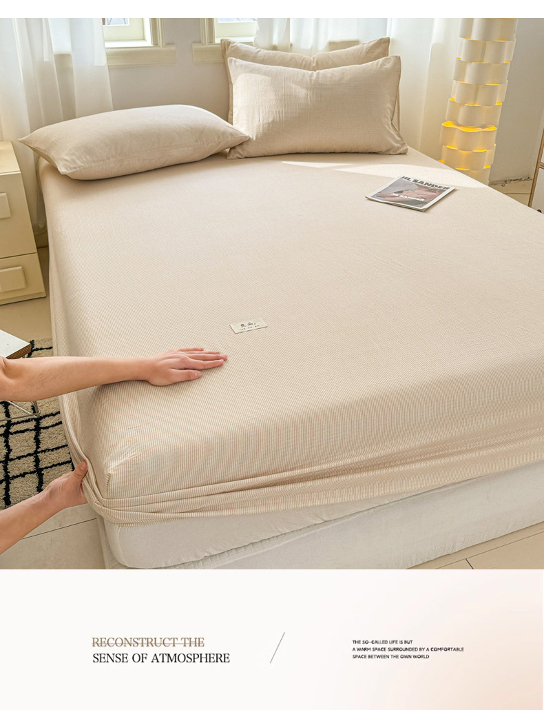 眠博士2025新款 全棉双层纱 单床笠 双层纱床笠-浅咖细条