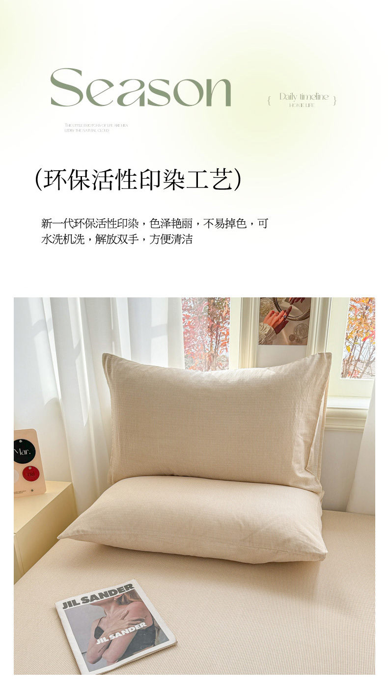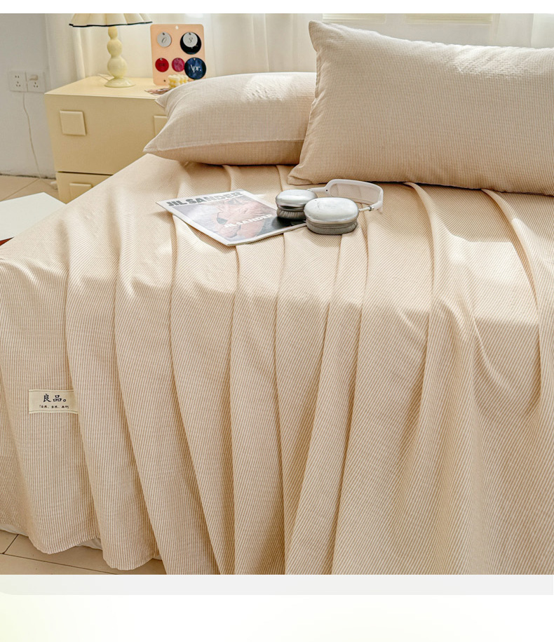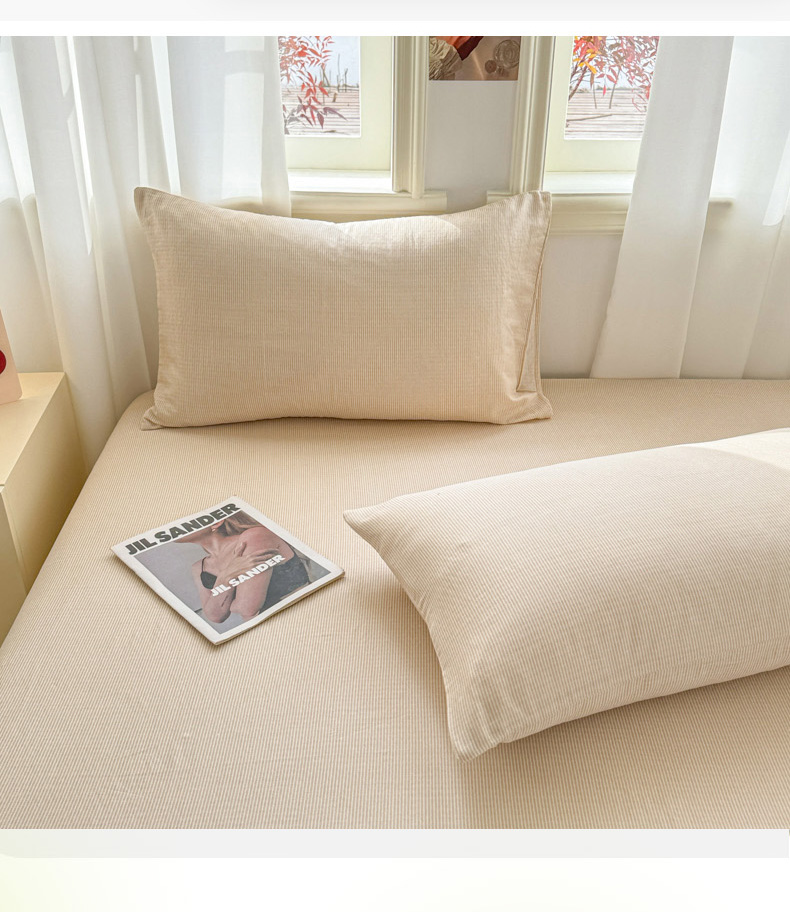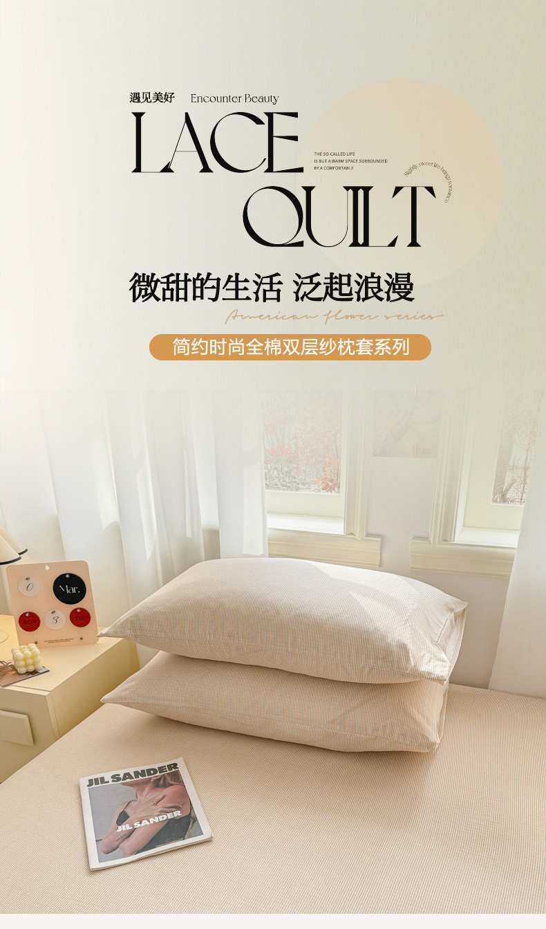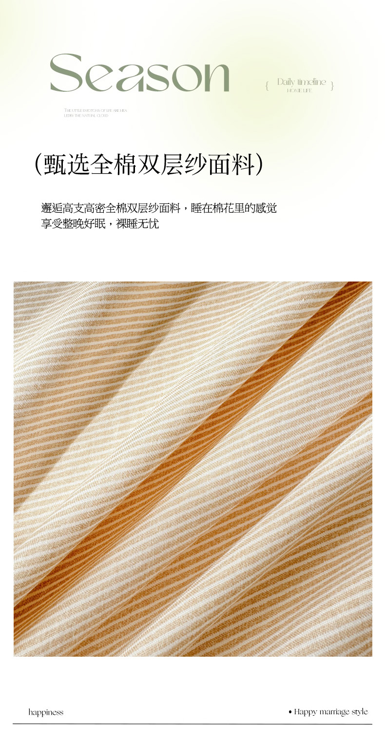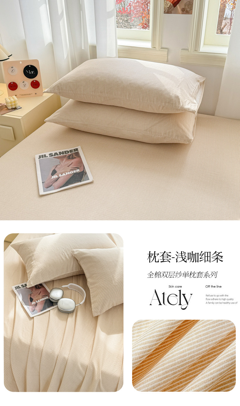 商品名称:眠博士2025新款全棉双层纱单枕套 双层纱枕套-浅咖细条