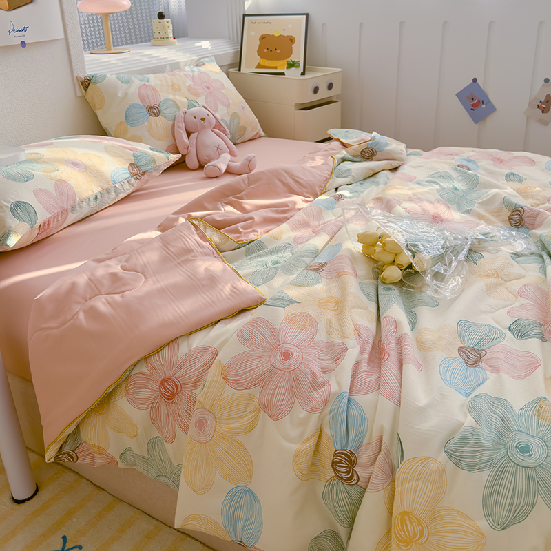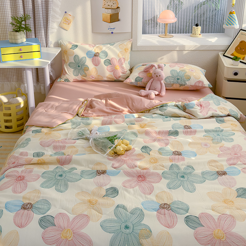 (总)老帅的工厂店 2025新款多巴胺水洗云朵棉大眼睛系列夏被四件套,奥利奥,海盐芝士,麻薯,蓝莓卷,芊泥卷,青梅茶,曲奇饼,小甜筒