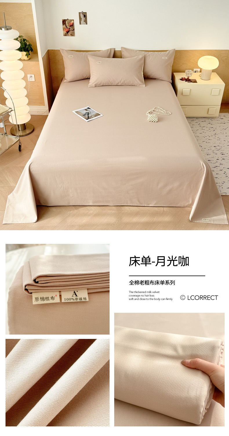 眠博士2025新款全棉老粗布床单 老粗布床单-月光咖