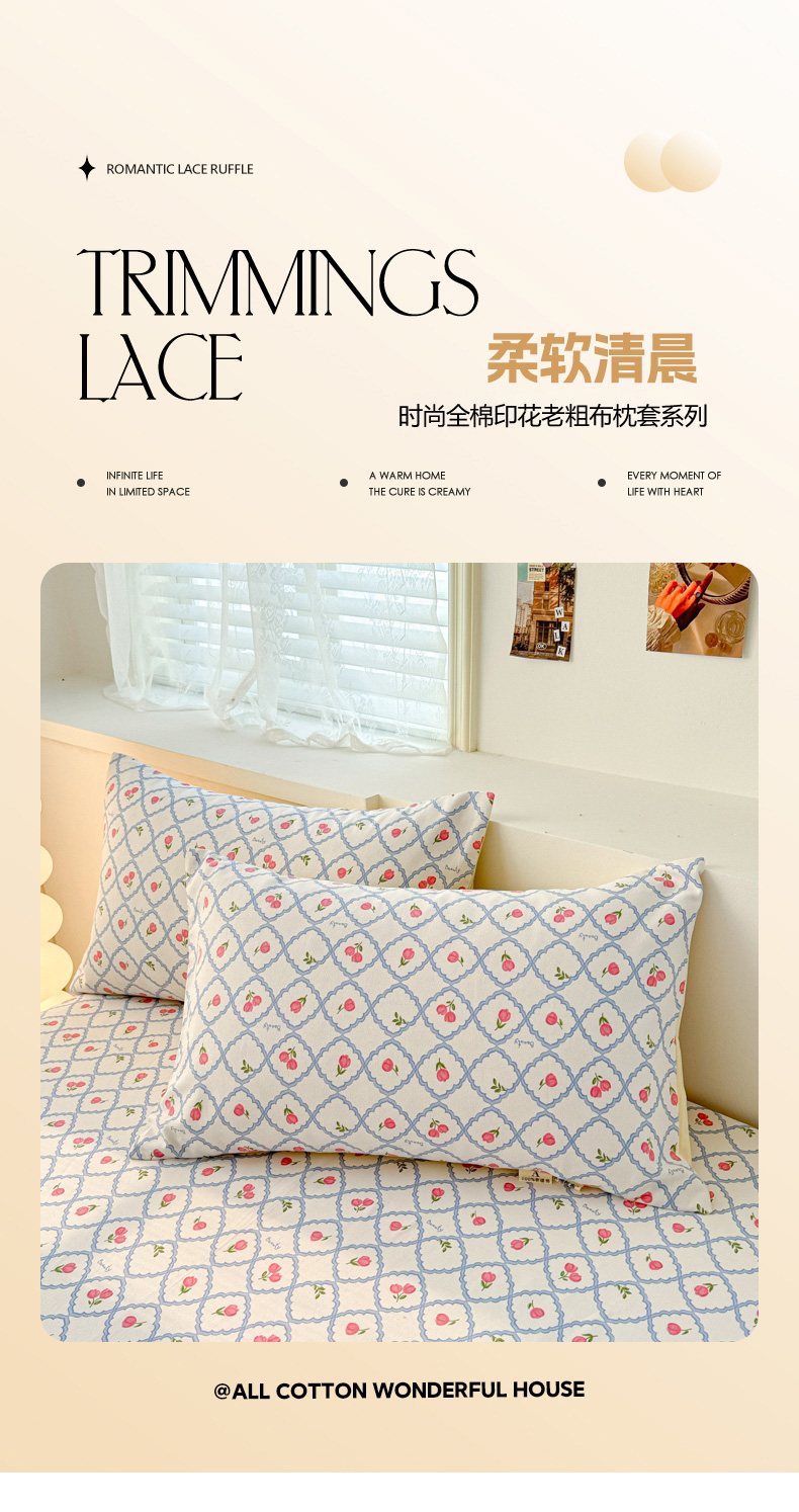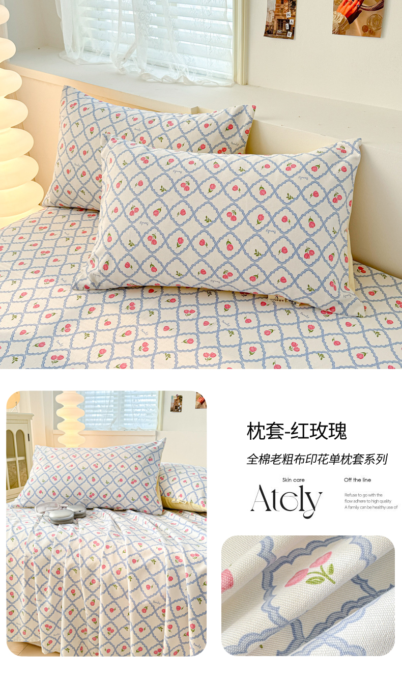 商品名称:眠博士2025新款全棉老粗布枕套 老粗布枕套-红玫瑰