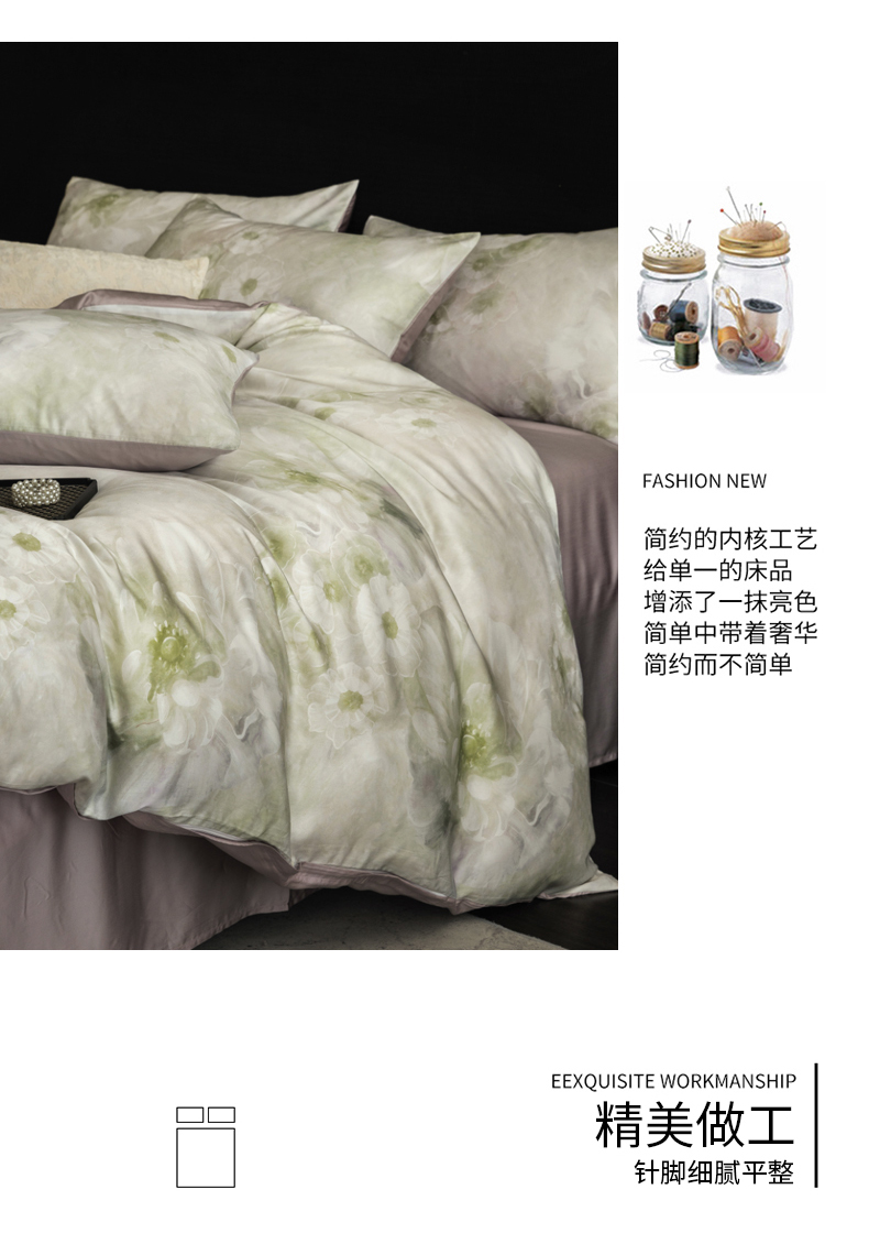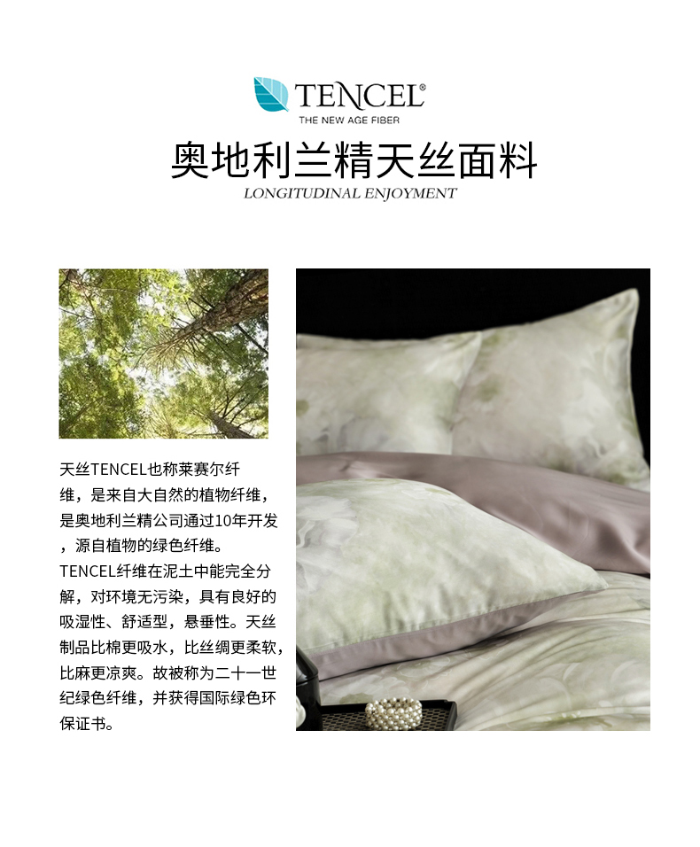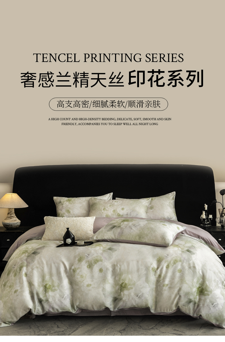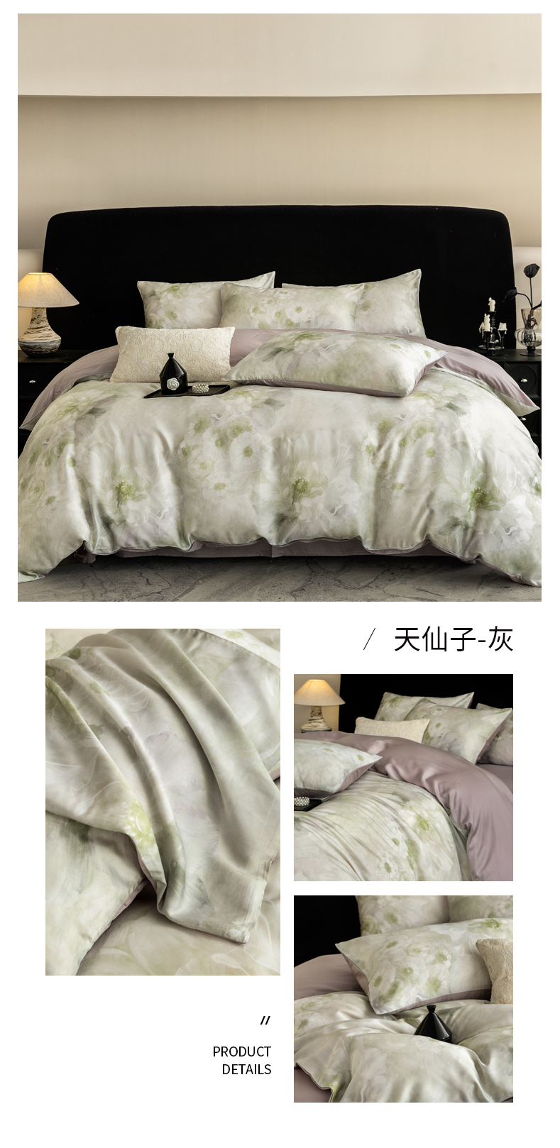 商品名称:立奥被业 2025年新款100%兰精天丝四件套天丝数码印花四件套 天仙子-灰