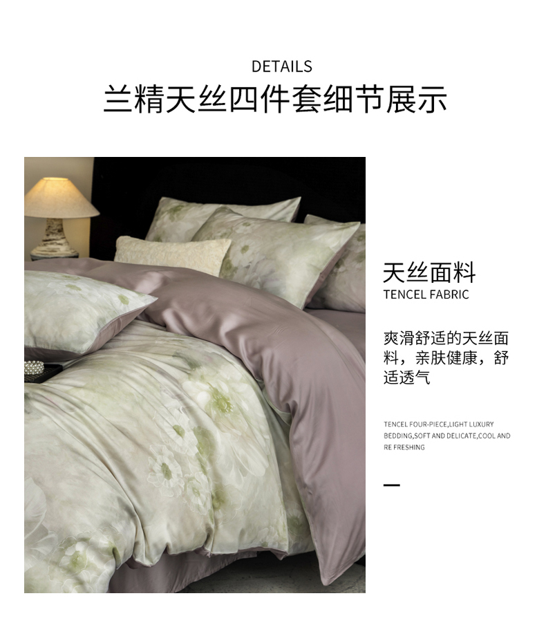 (总)立奥被业 2025年新款100%兰精天丝四件套天丝数码印花四件套,虞美人-粉,彩云归-粉,彩云归-绿,蝶恋花-粉,蝶恋花-绿,佳人醉-粉,佳人醉-绿,蓝莲金,乐游曲-灰,乐游曲-金,蜜合金,蜜合绿,牡丹粉,牡丹绿,木兰花-绿,木兰花-紫,水仙灰,水仙紫,棠梨粉,棠梨紫,天仙子-粉,天仙子-灰,条纹粉,条纹黄,条纹蓝,条纹绿,杏园芳-灰,杏园芳-紫,忆江南-金,忆江南-紫,余梦粉,余梦灰,虞美人-紫,雨荷绿,雨荷紫