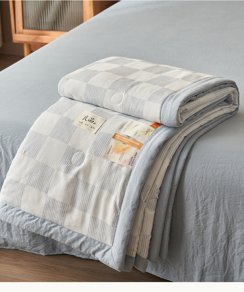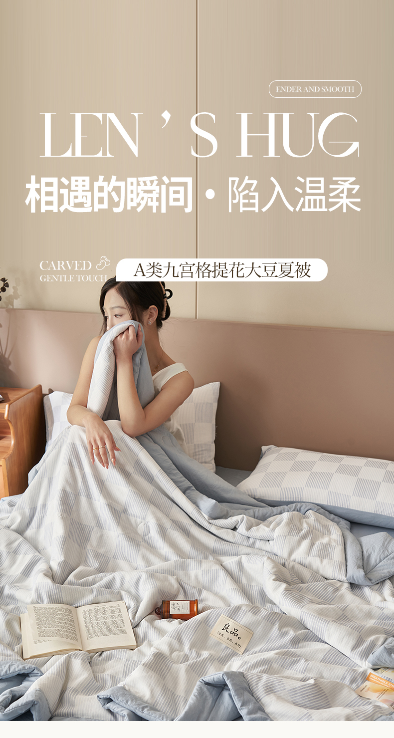 商品名称:一加一 2025新款A类九宫格提花大豆夏被被子被芯 九宫格提花蓝