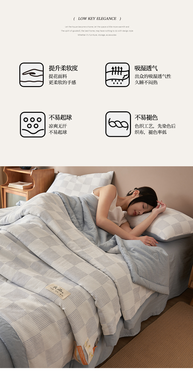 (总)一加一 2025新款全棉色织简约风艾阳绒抗菌被芯,浅兰韵律,桃之夭天,悠然时光