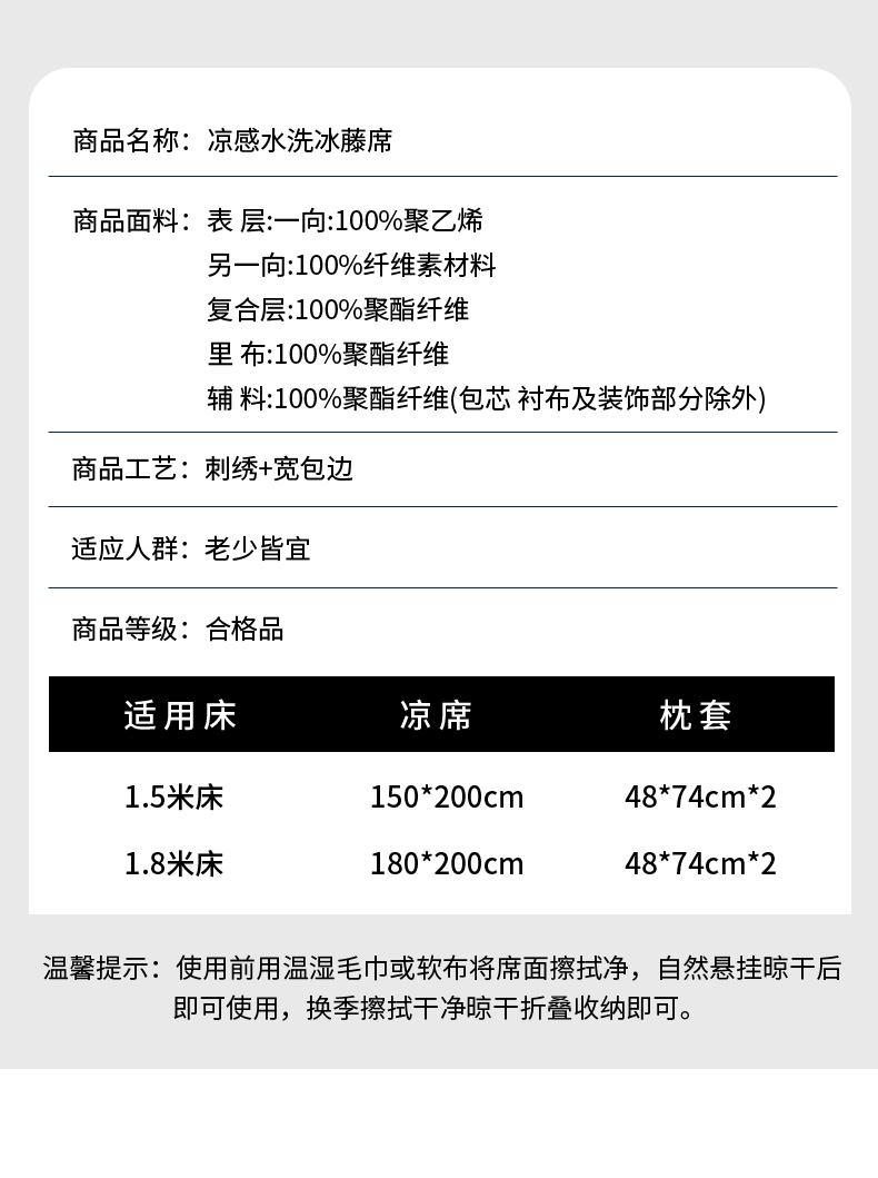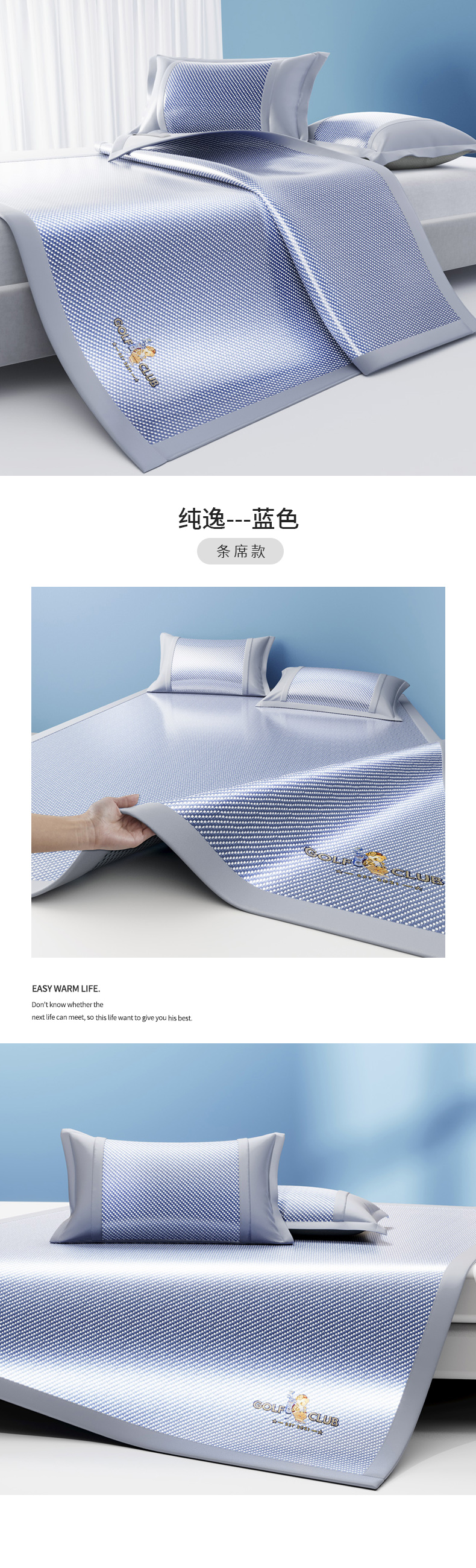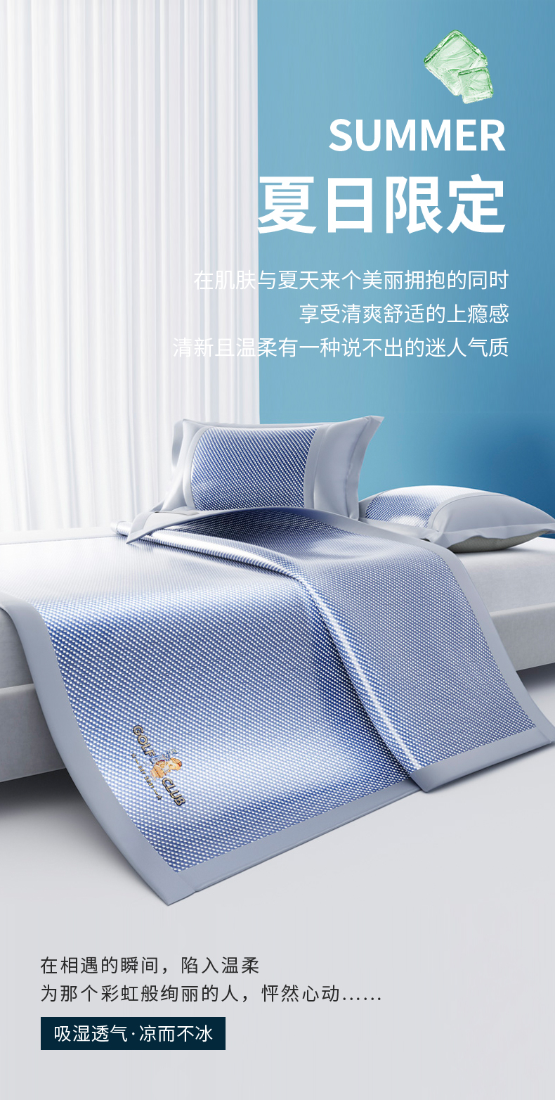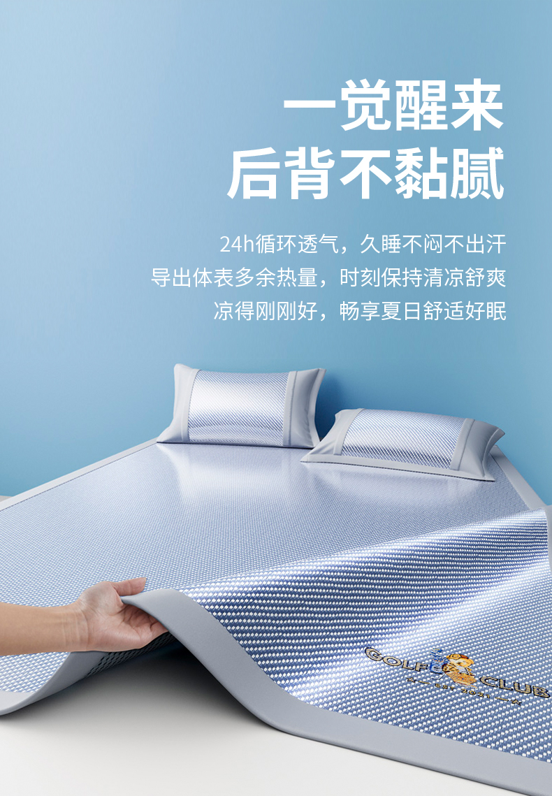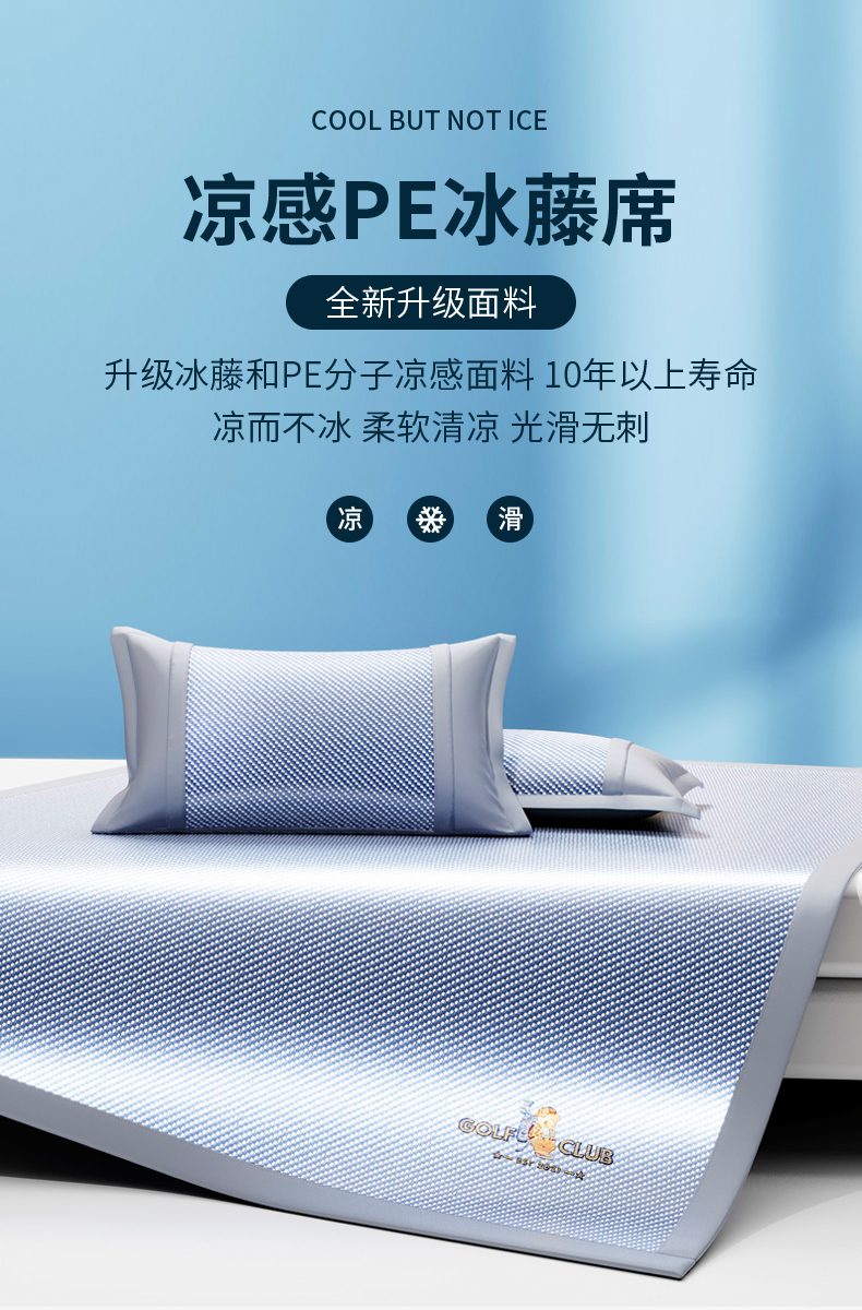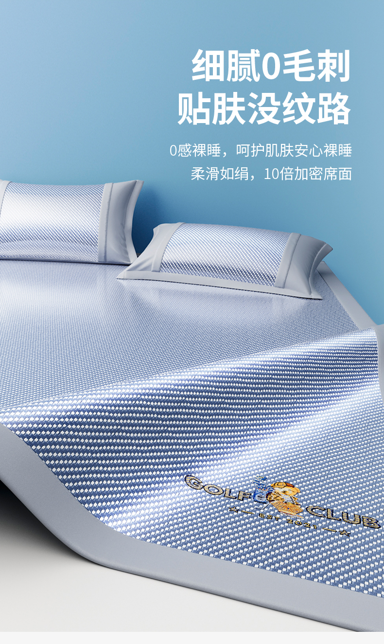 商品名称:阿牛席业 2025新款凉感PE冰藤凉席系列-纯逸 纯逸-蓝(条席)