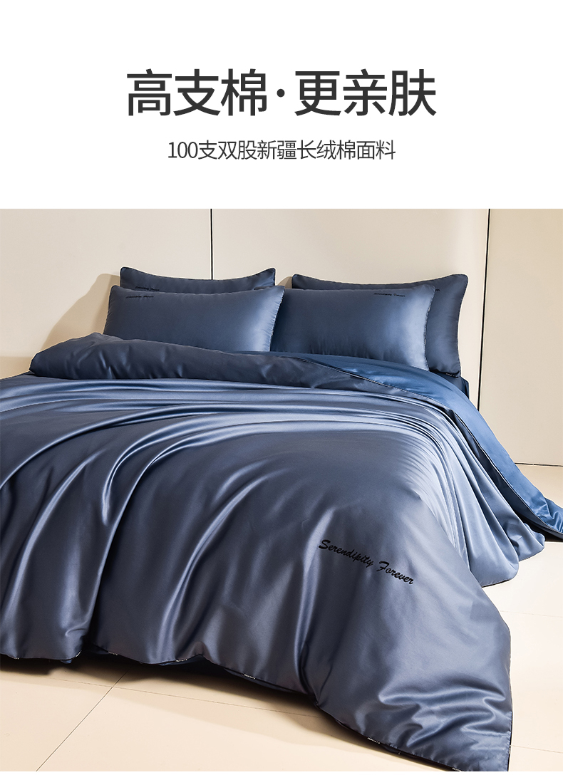 (总)米奈家居 2024新款长绒棉纯棉刺绣四件套-罗琳-简约风,冰川灰,湖蓝,蜜桃粉,藕粉,香槟,香芋紫,象牙白