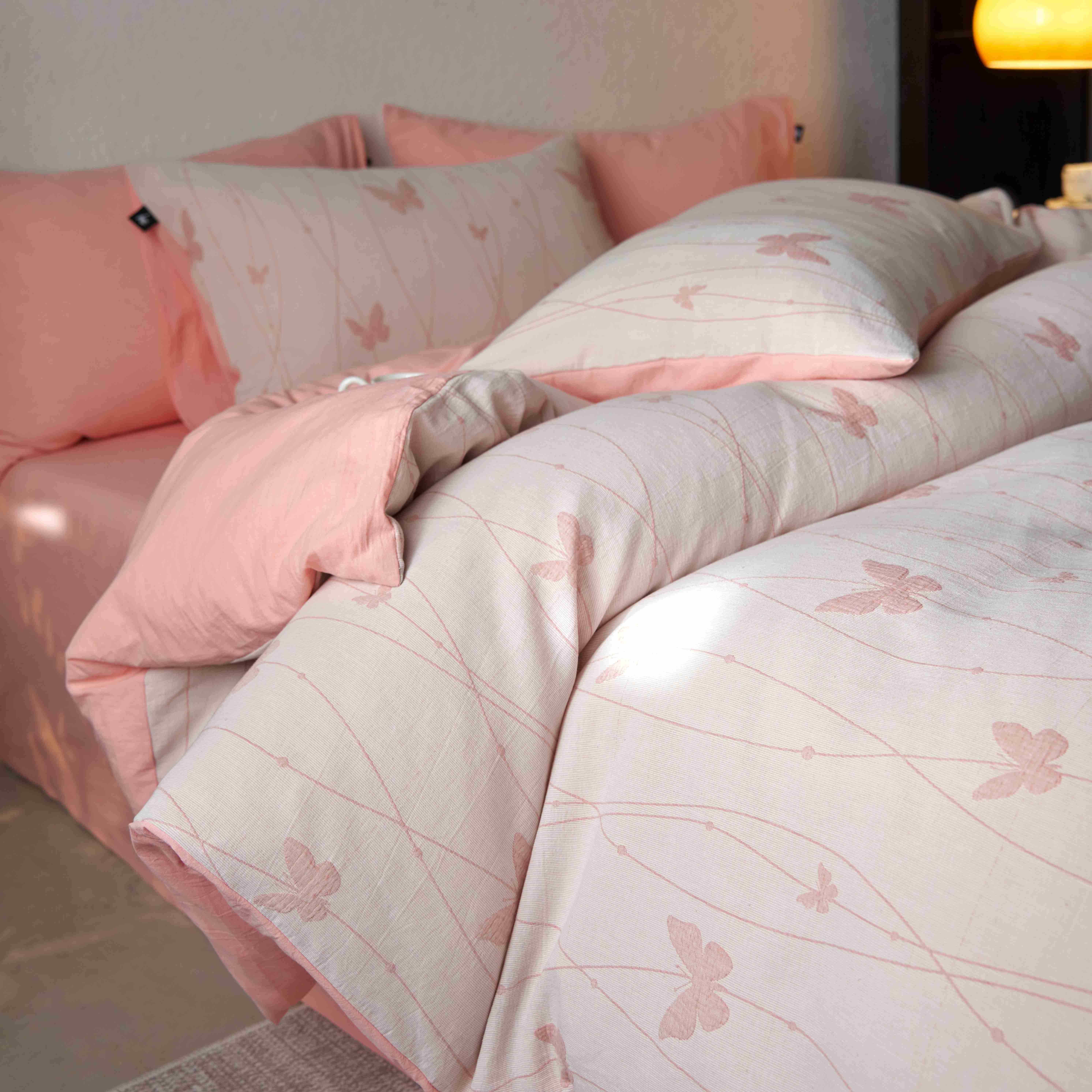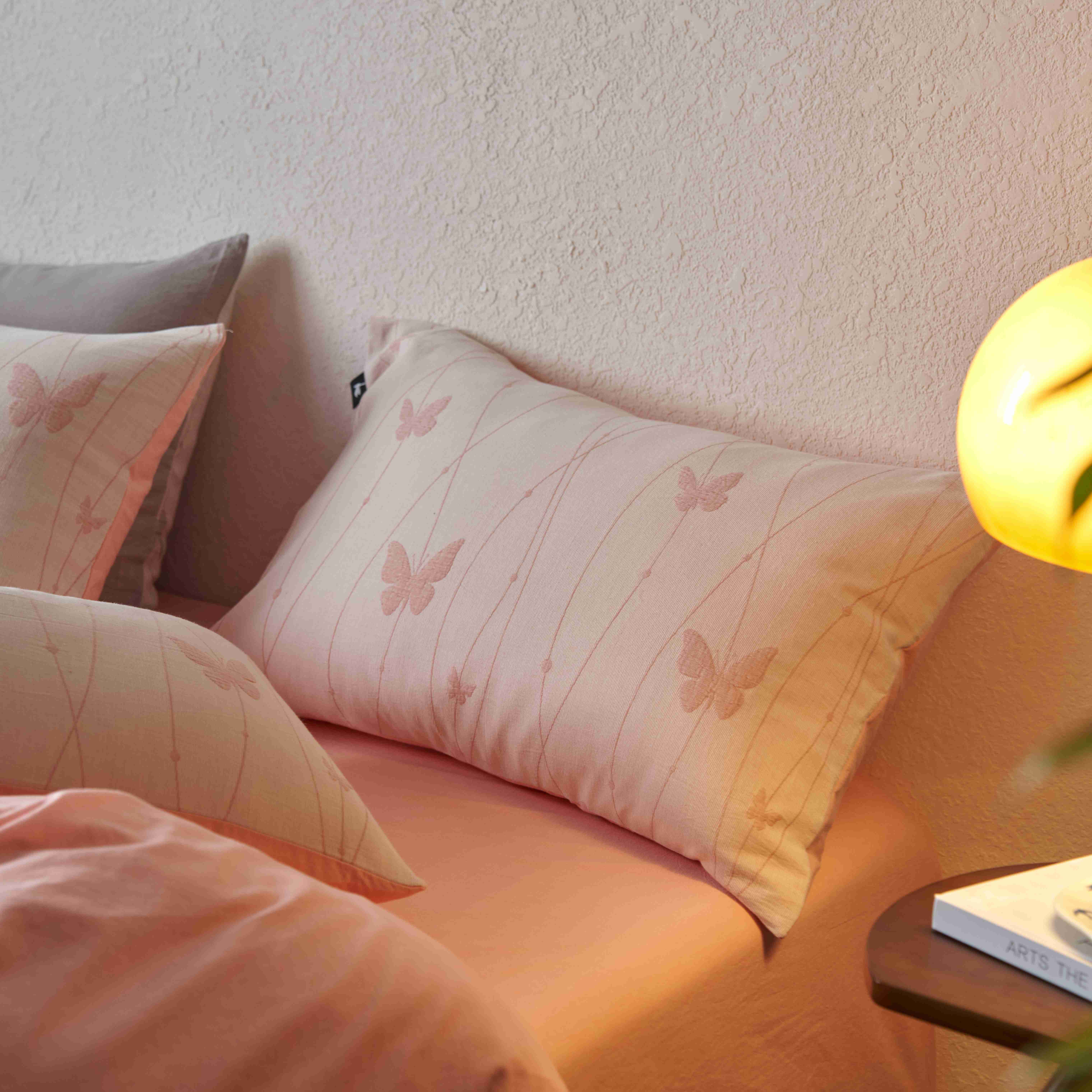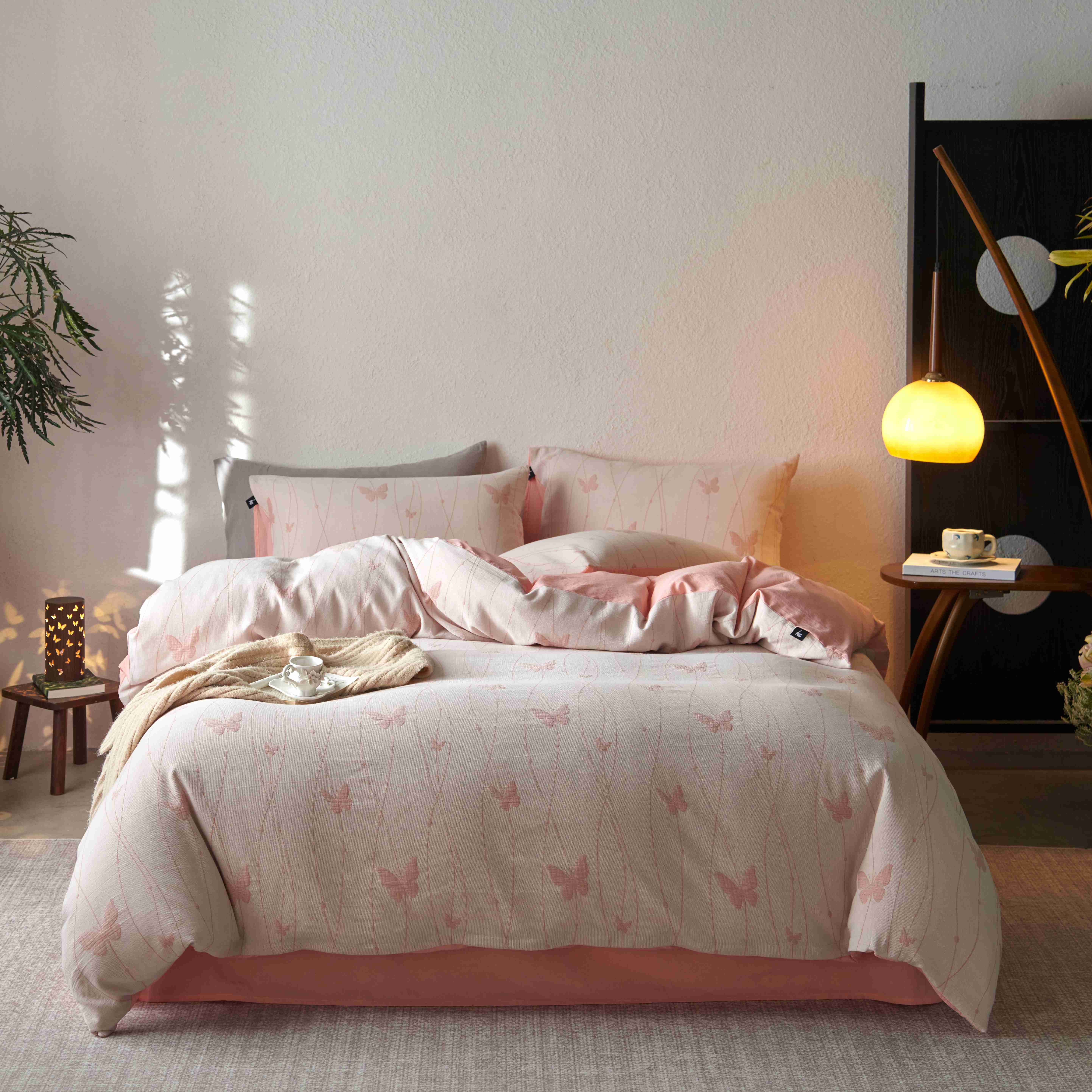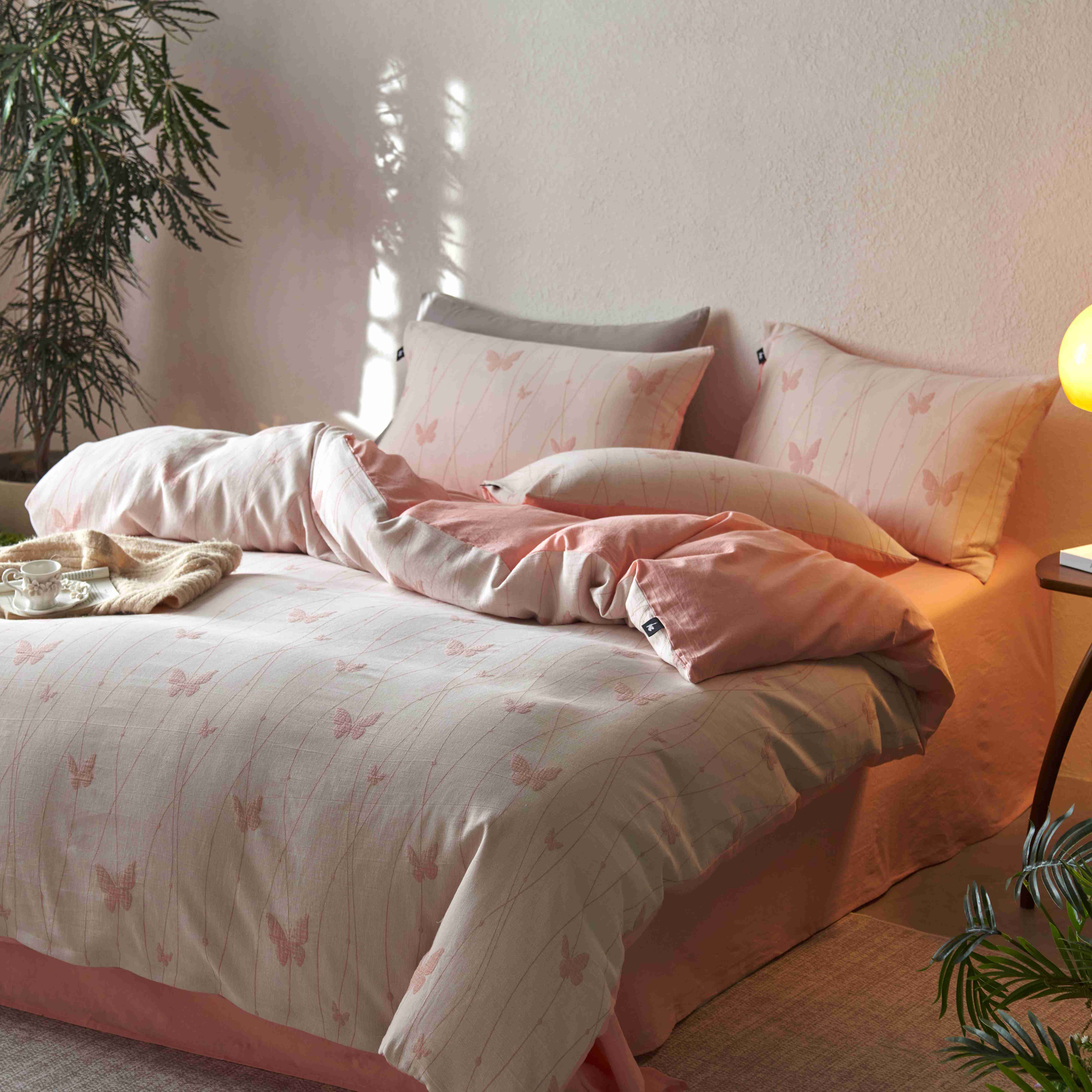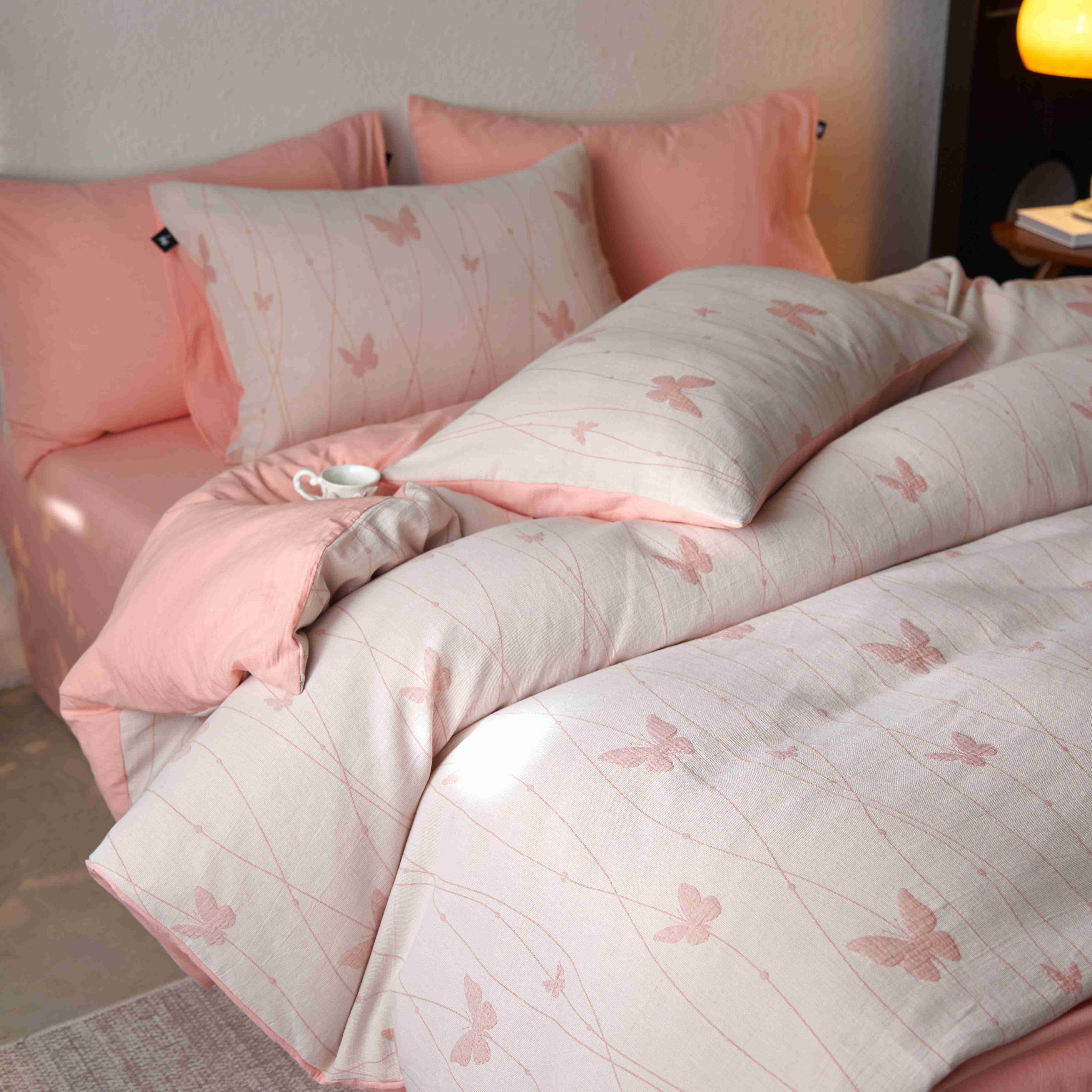 安莱生活 2025新款60s双层纱色织大提花蝶舞翩翩四件套系列 蝶舞翩翩-嫩粉