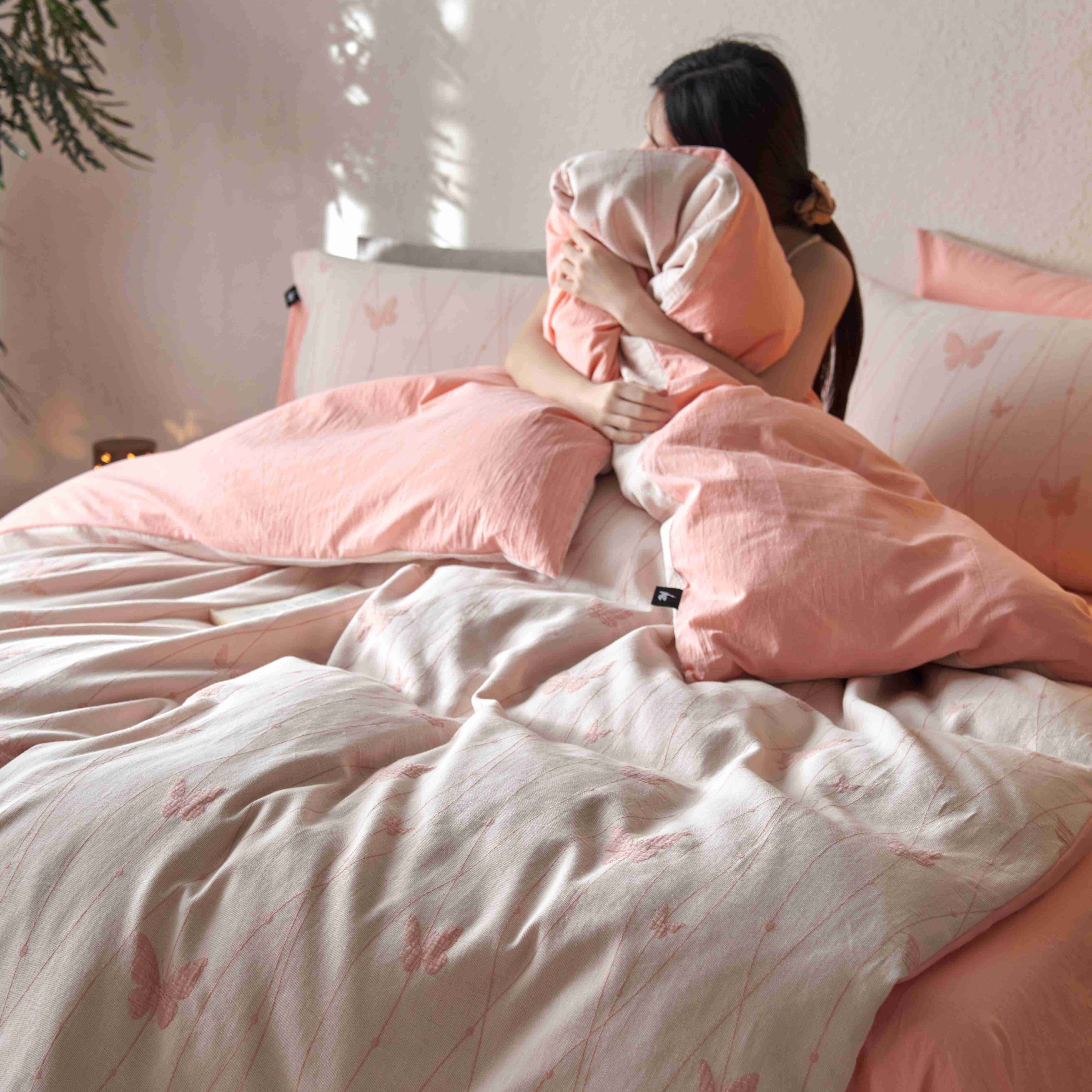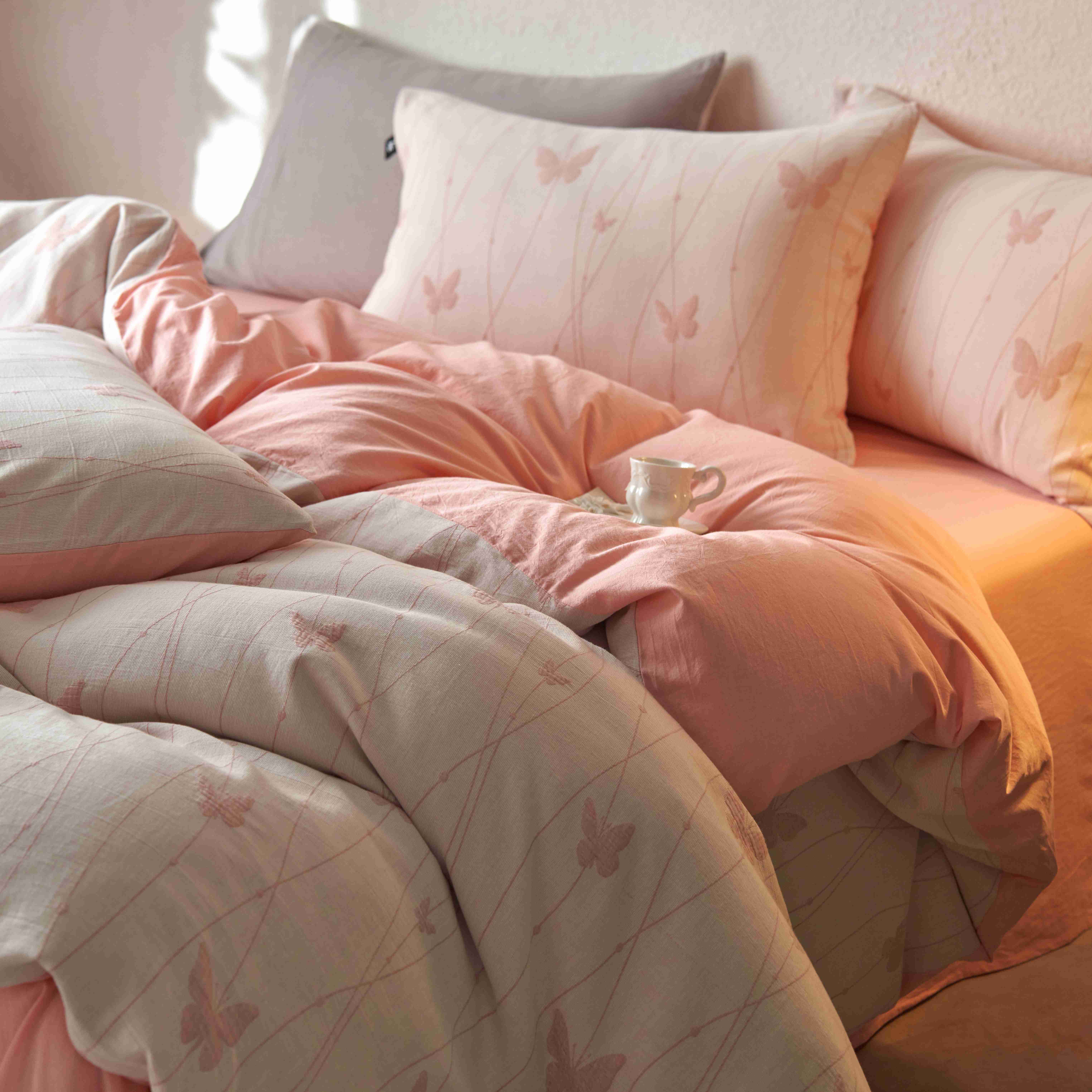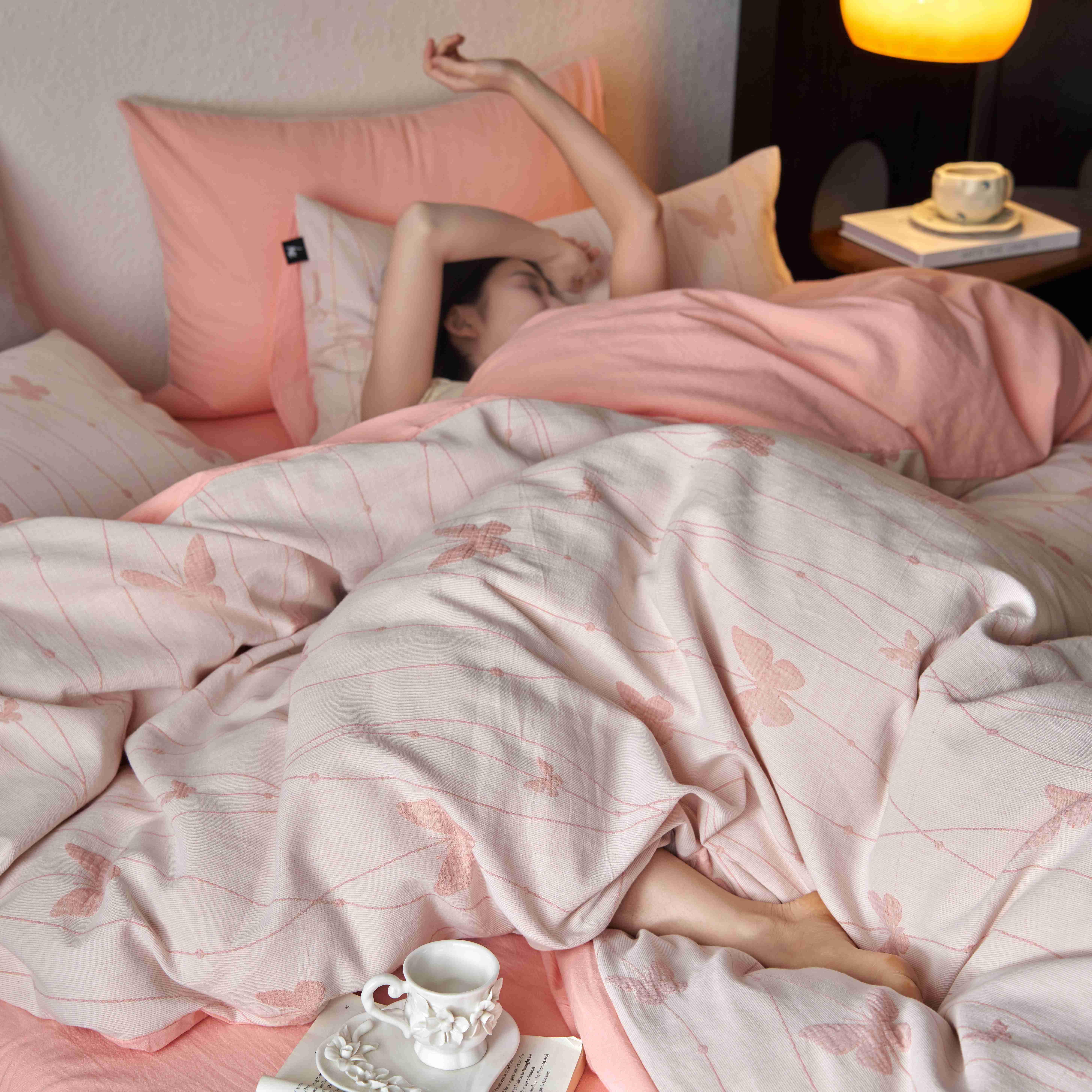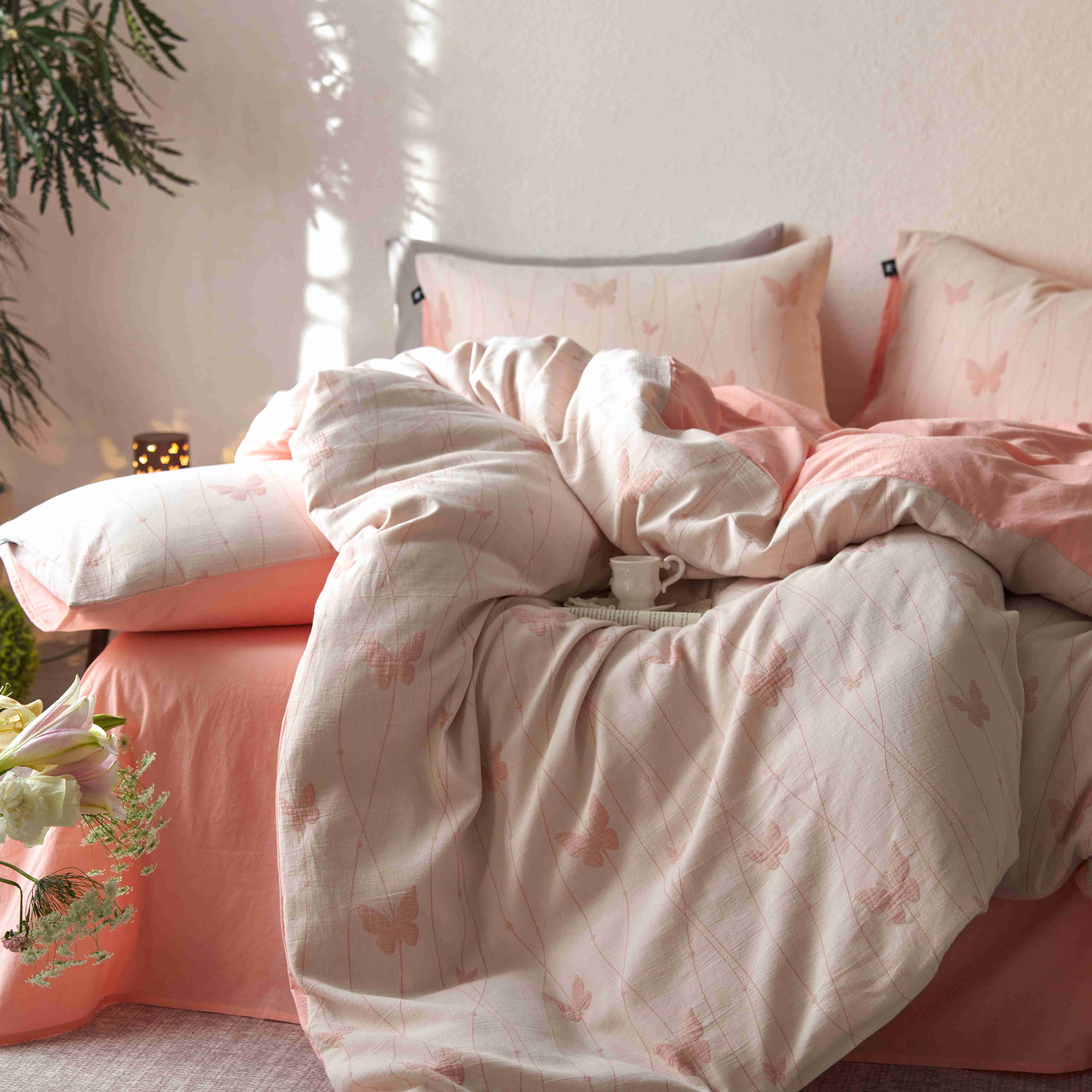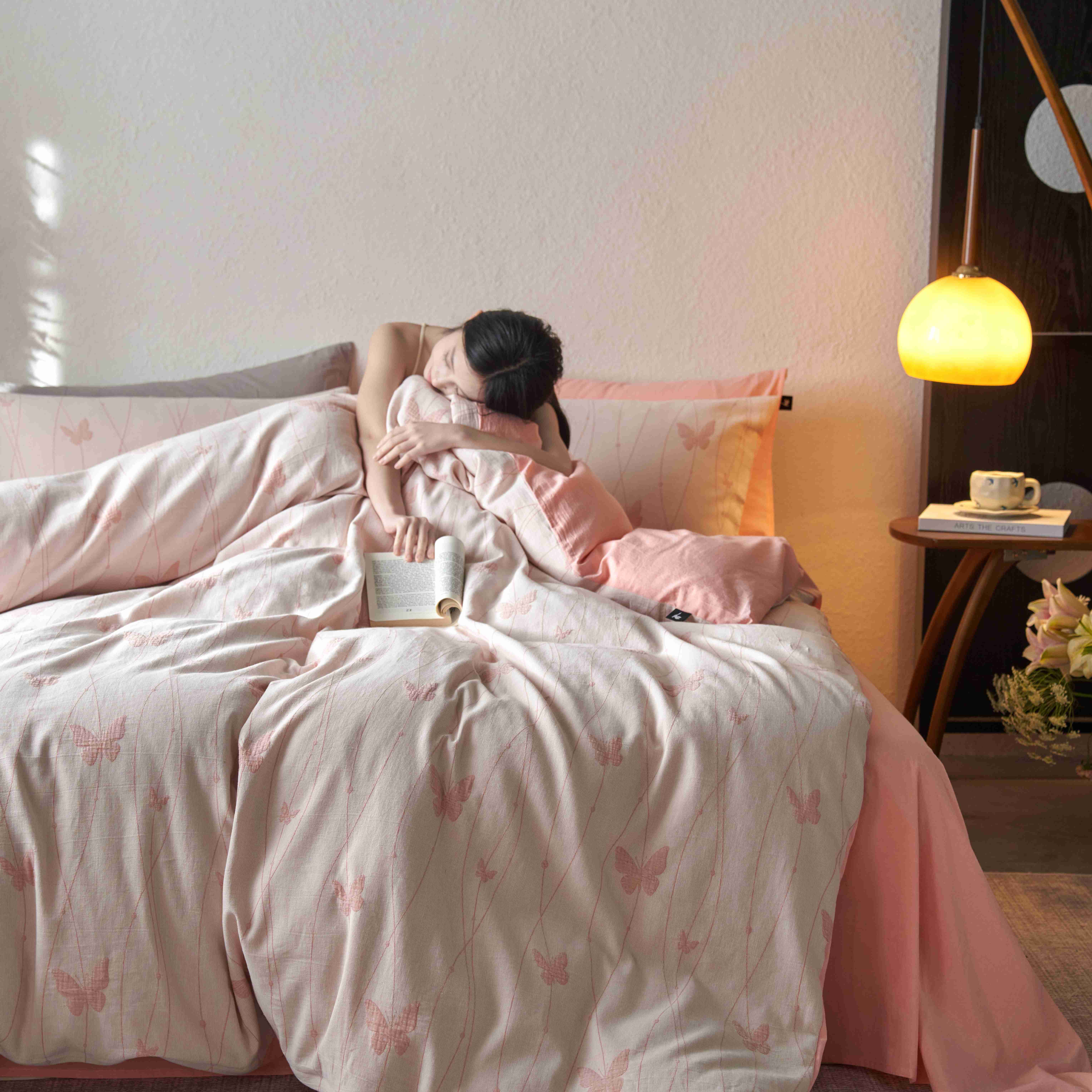 安莱生活 2025新款60s双层纱色织大提花蝶舞翩翩四件套系列 蝶舞翩翩-嫩粉