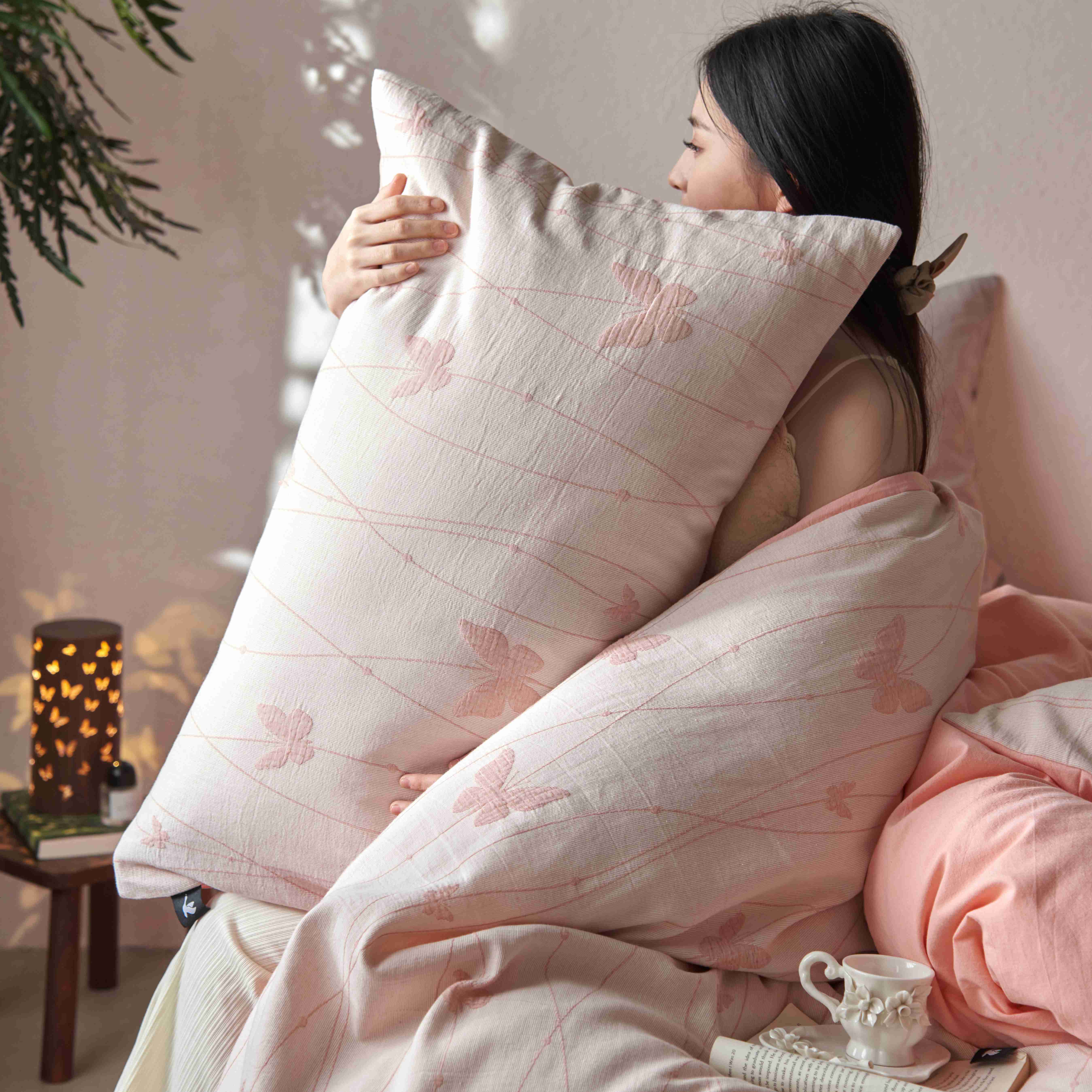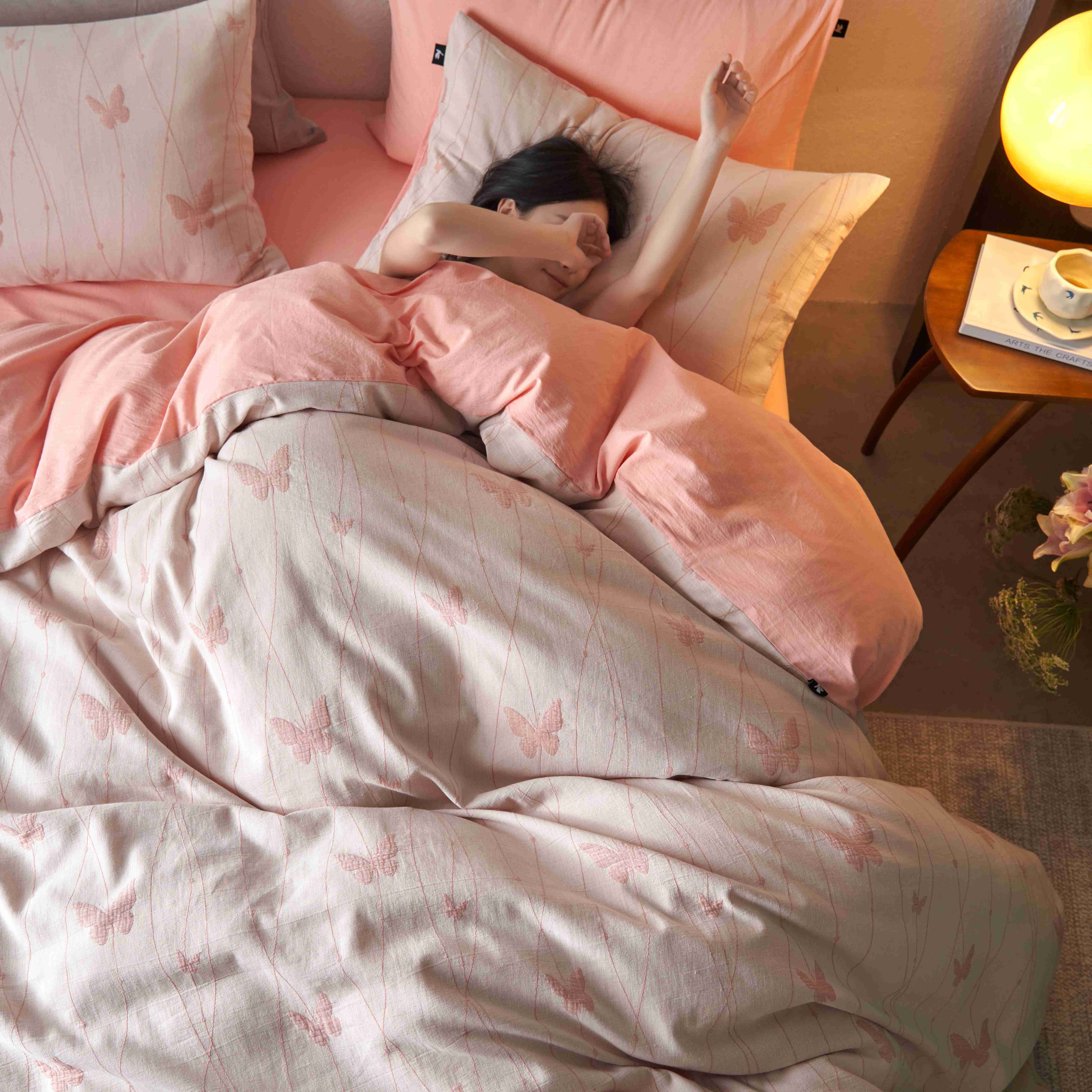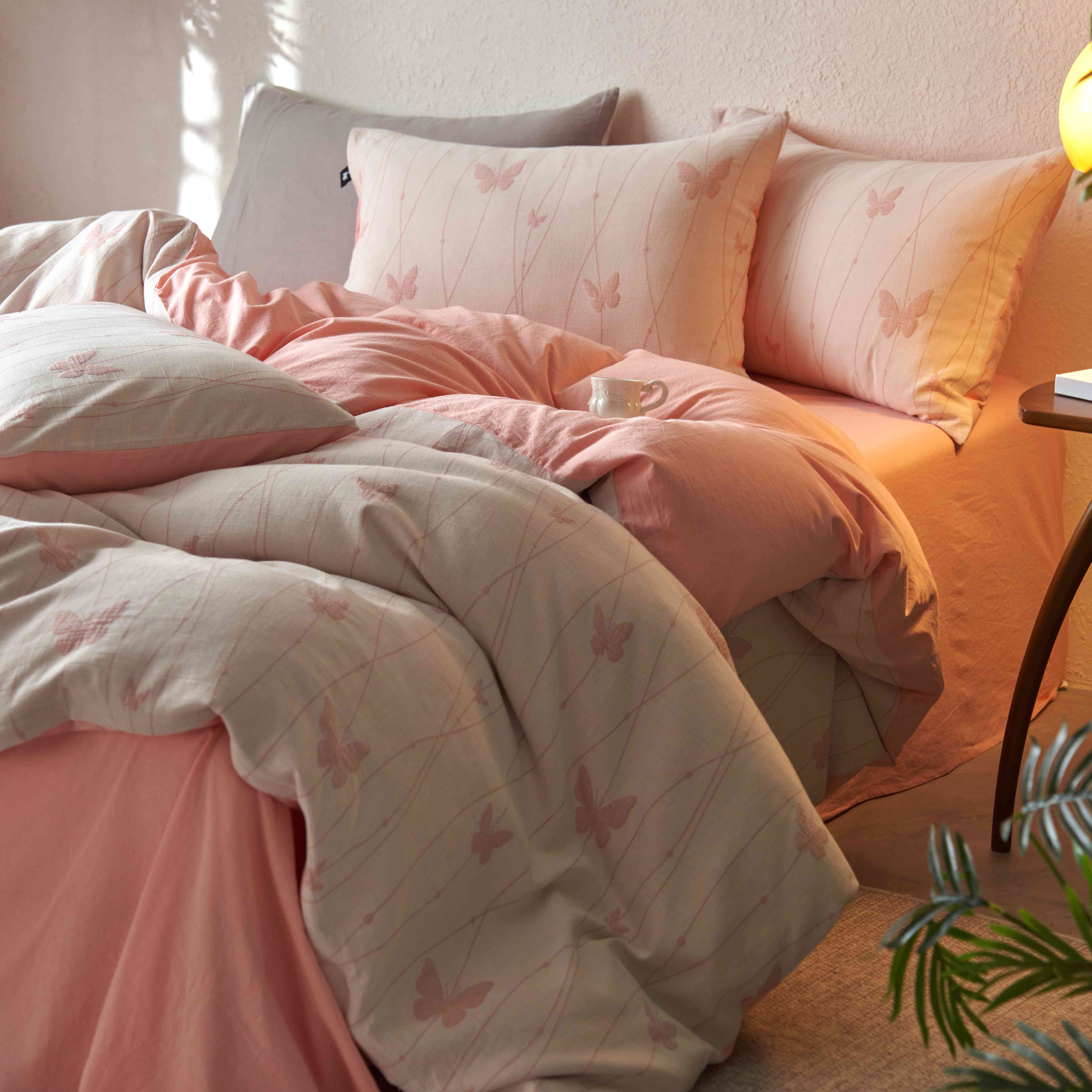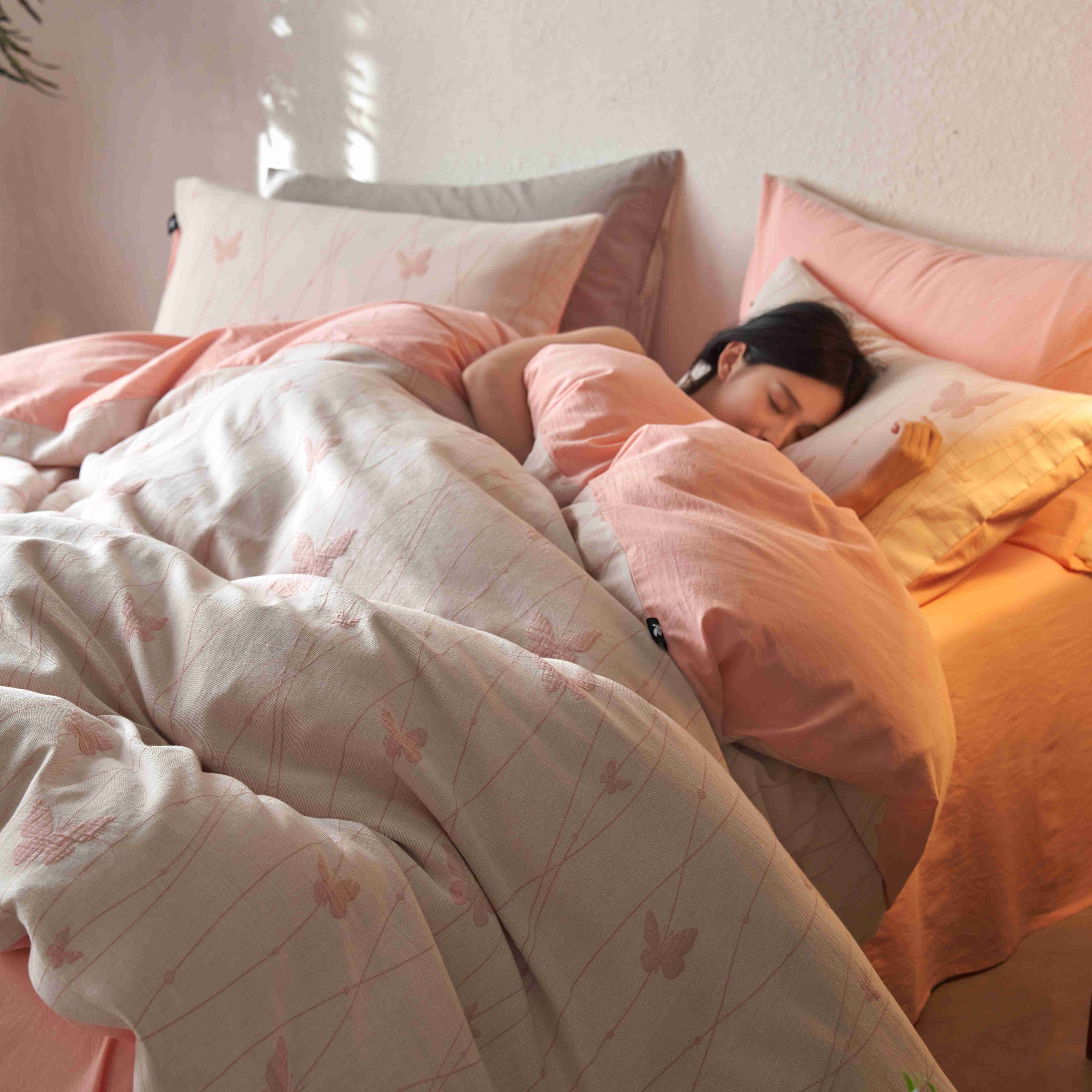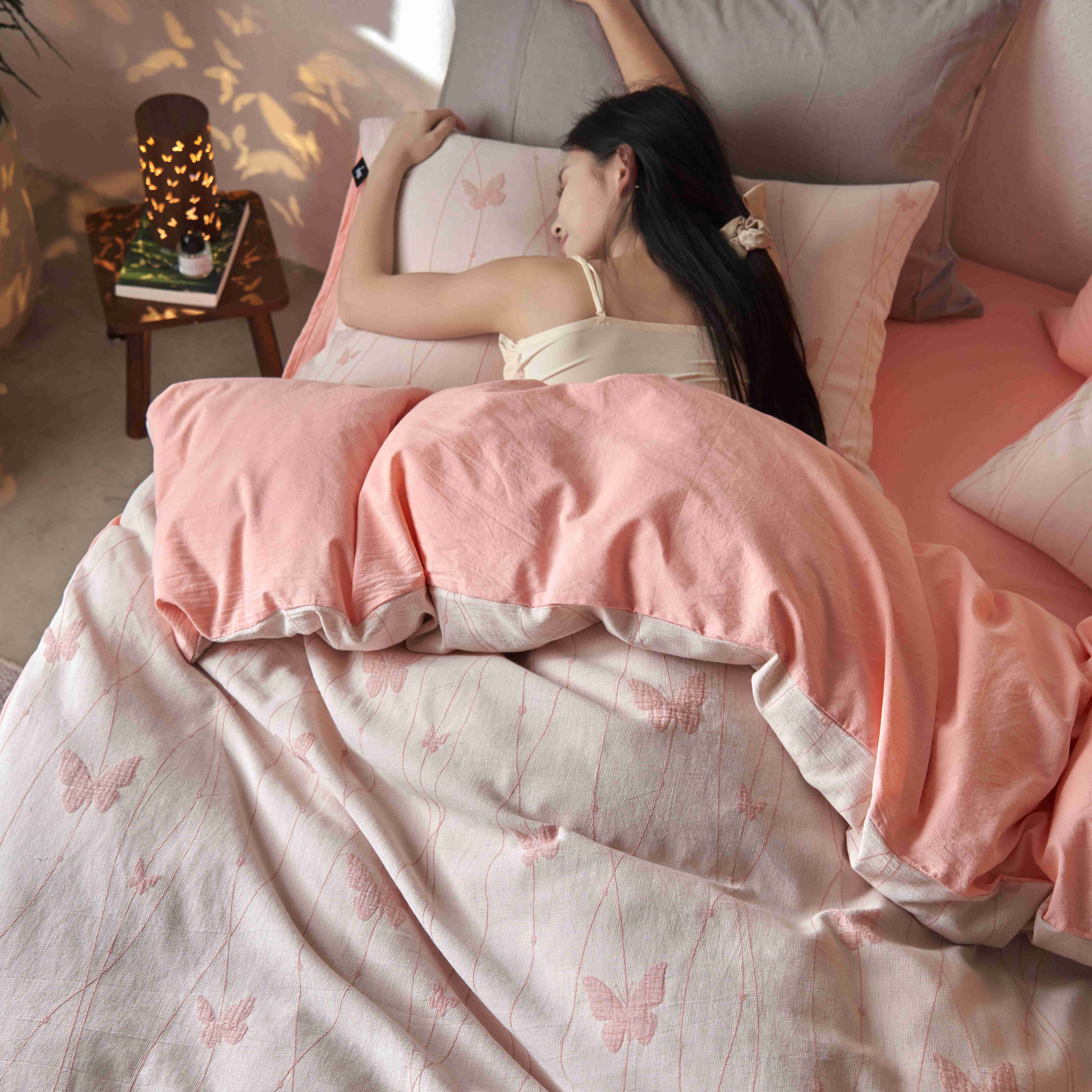 安莱生活 2025新款60s双层纱色织大提花蝶舞翩翩四件套系列 蝶舞翩翩-嫩粉