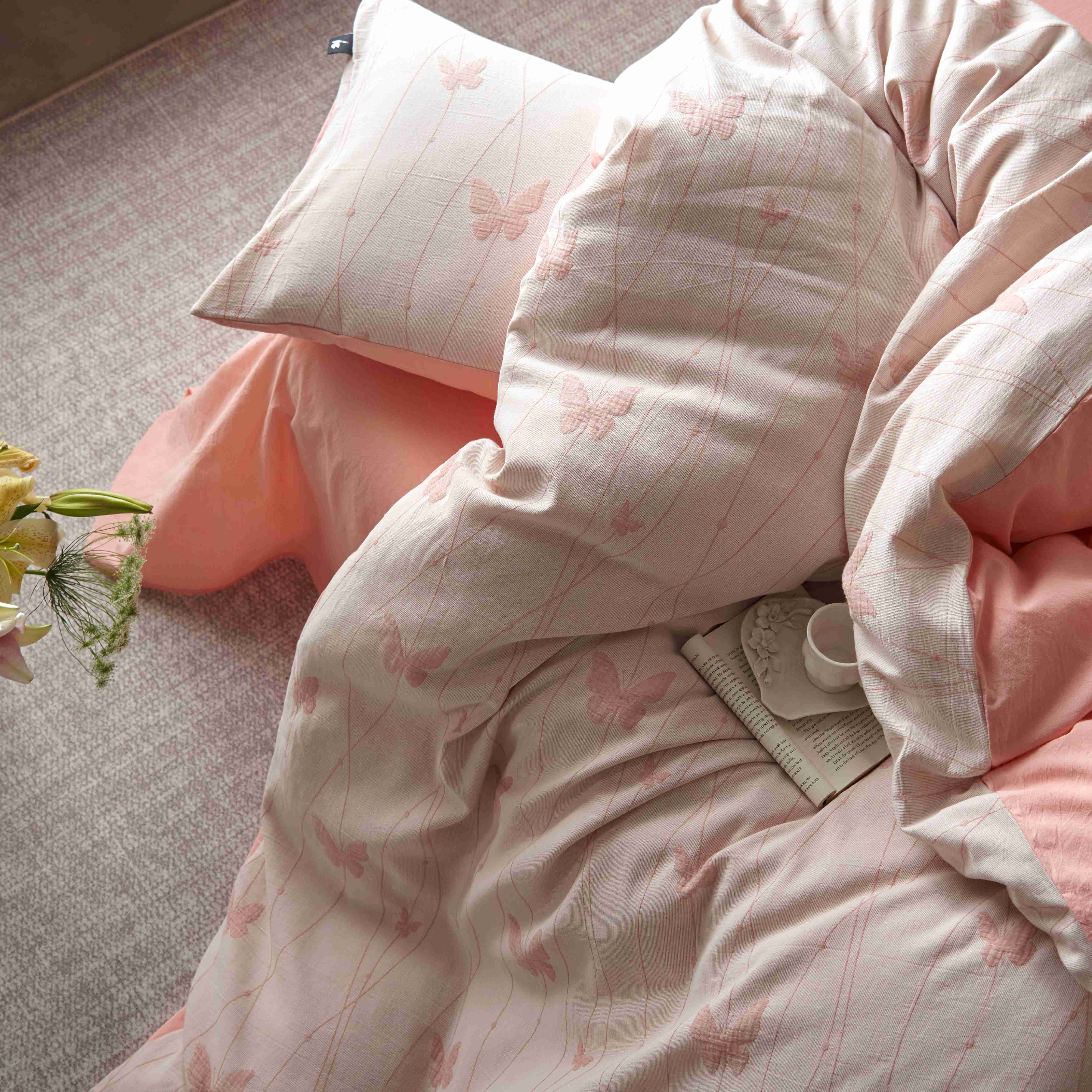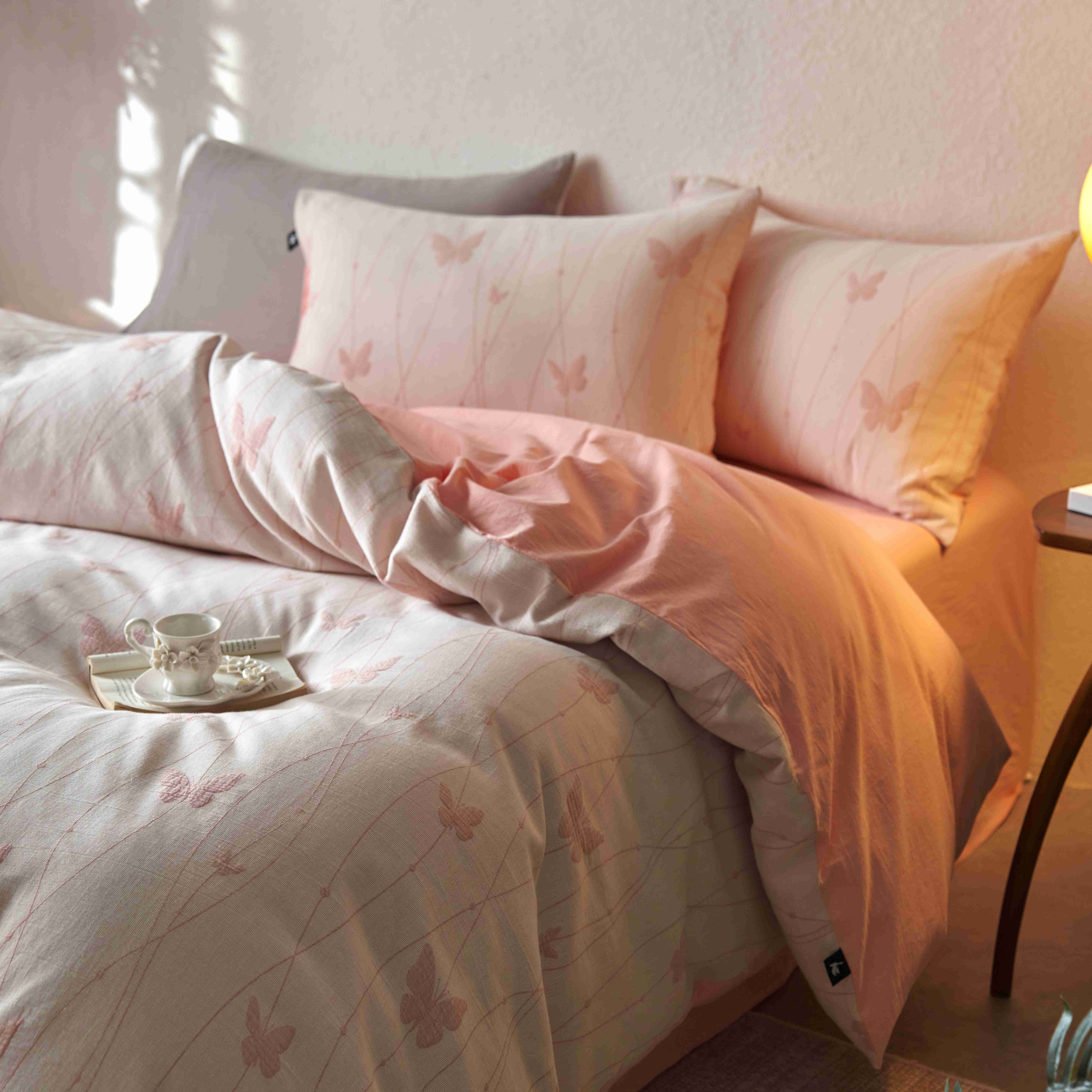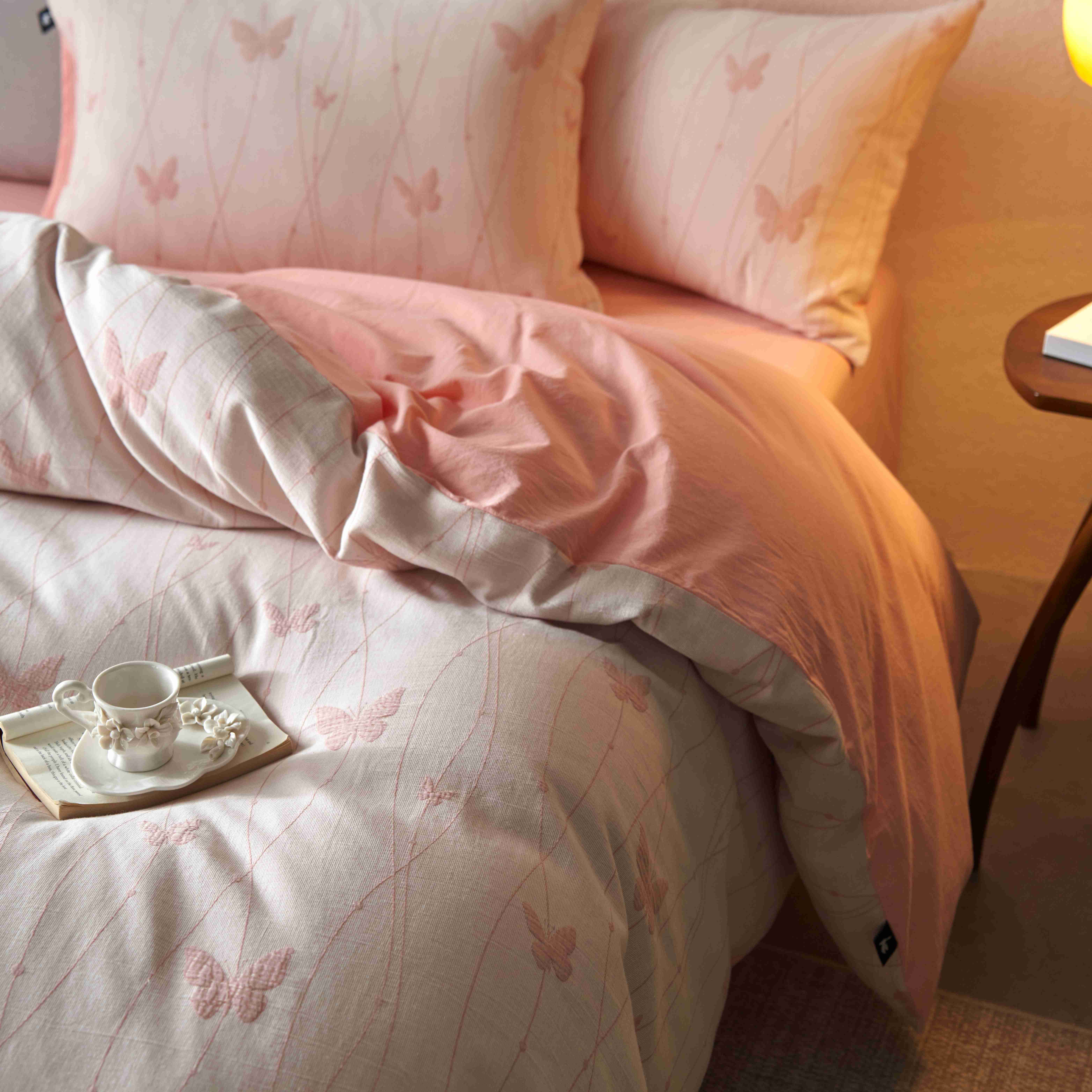 商品名称:安莱生活 2025新款60s双层纱色织大提花蝶舞翩翩四件套系列 蝶舞翩翩-嫩粉