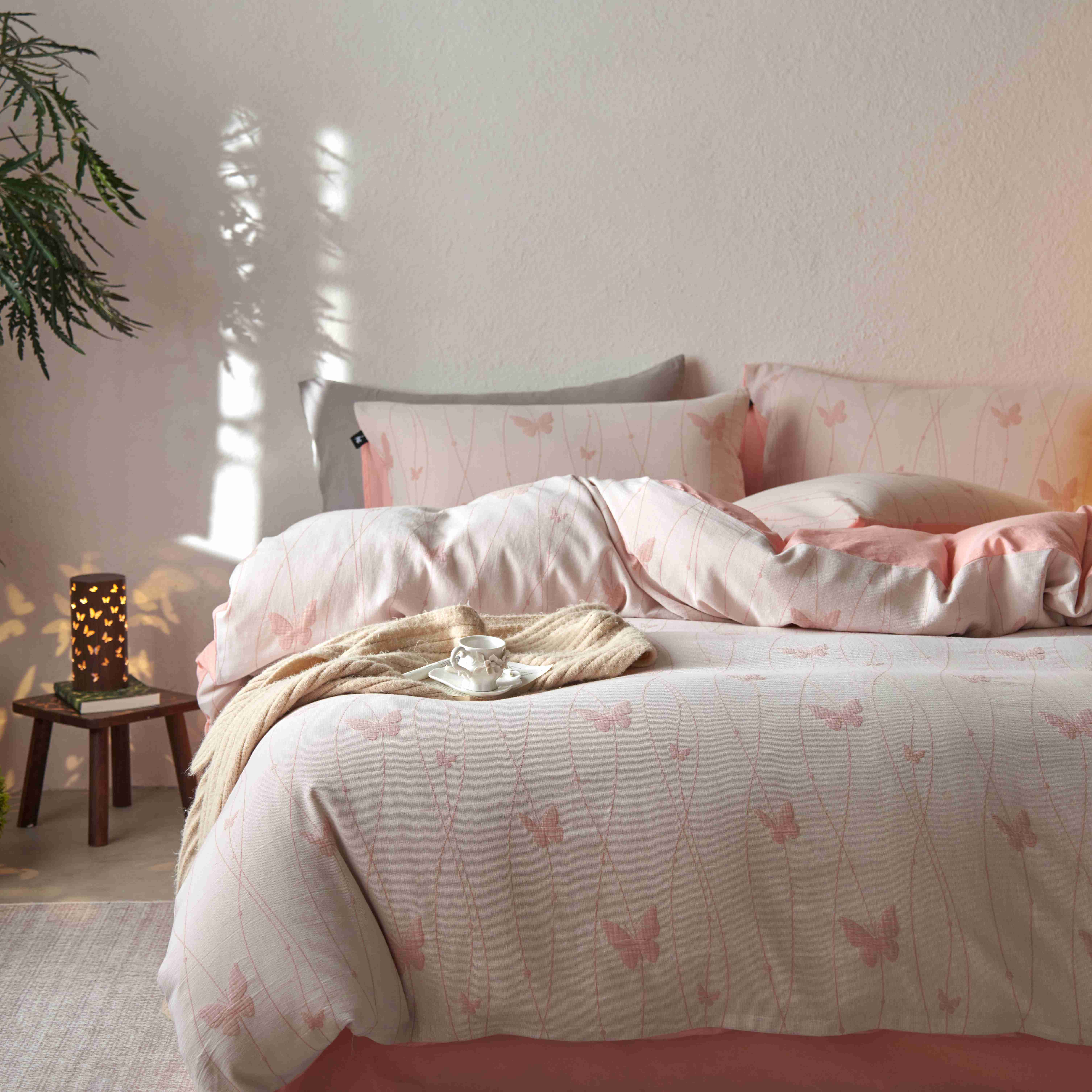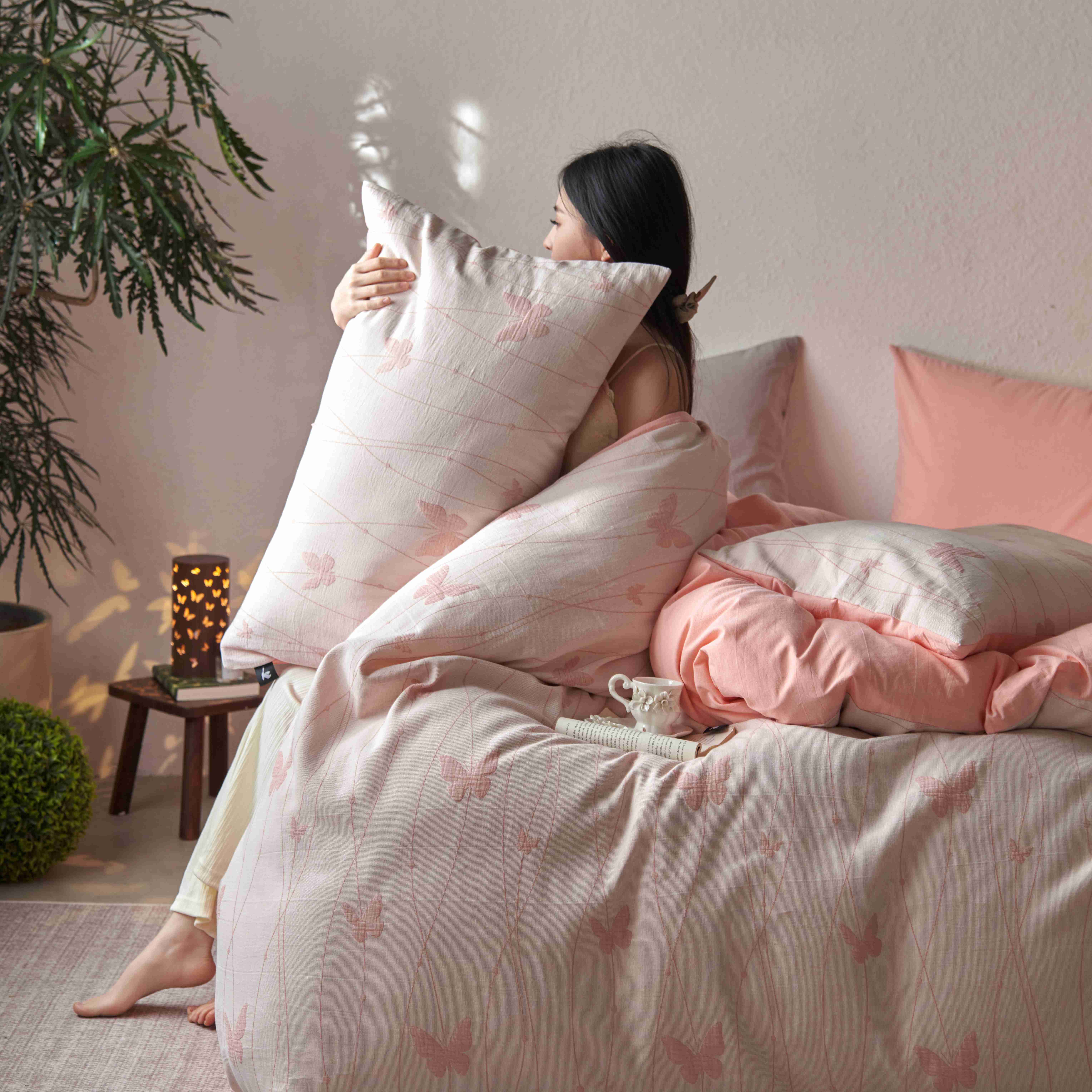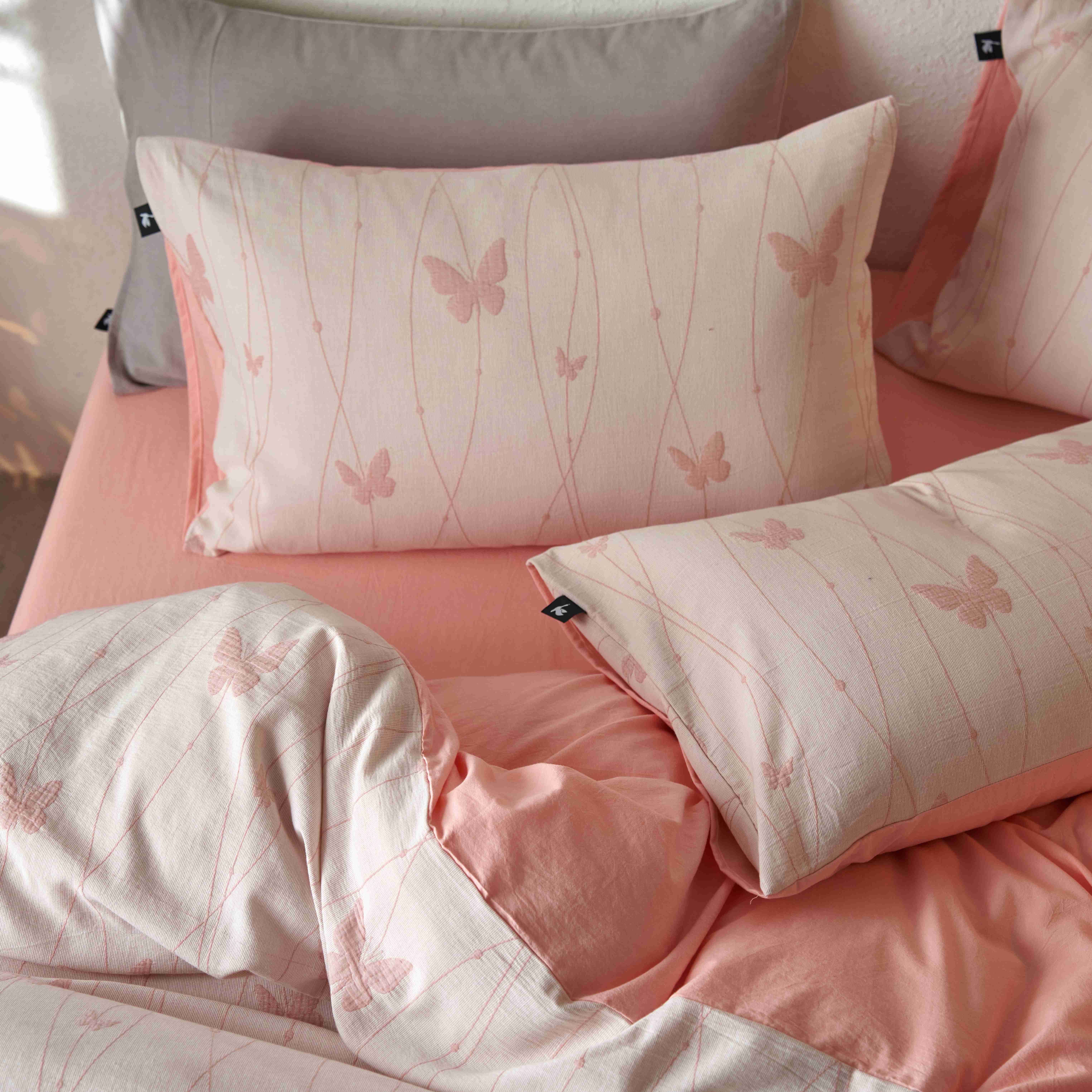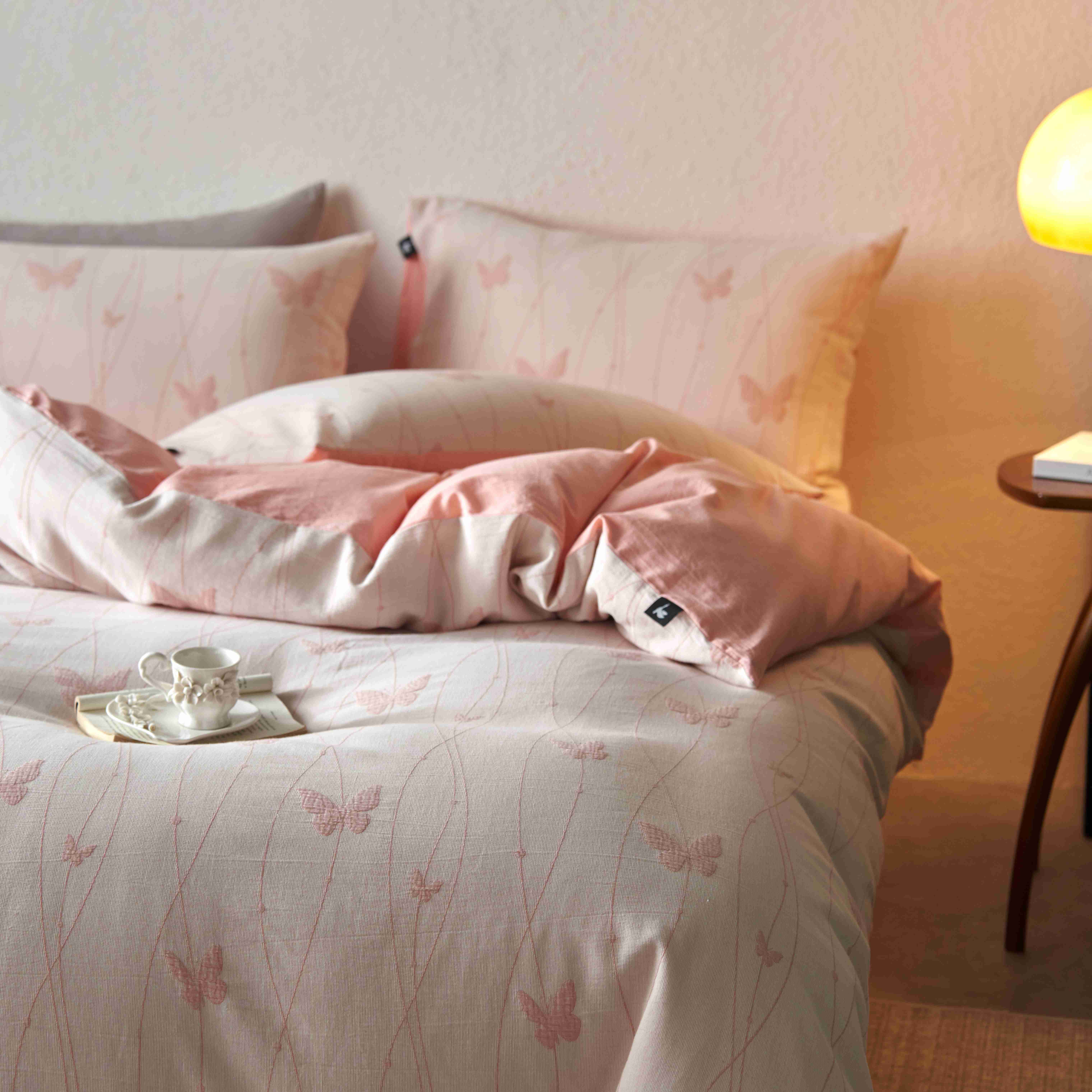 商品名称:安莱生活 2025新款60s双层纱色织大提花蝶舞翩翩四件套系列 蝶舞翩翩-嫩粉