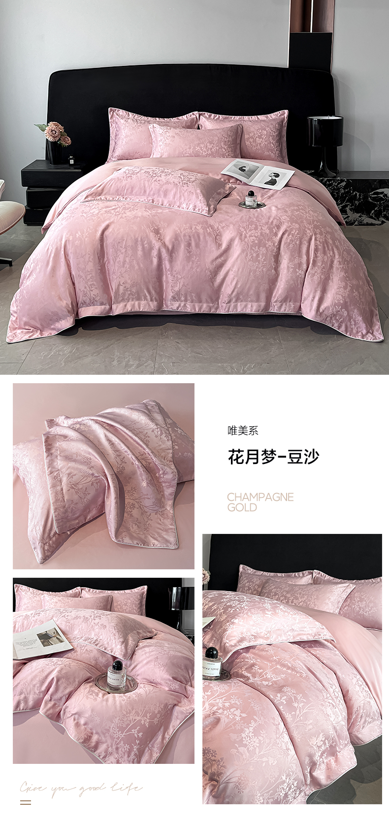 商品名称:米彩家纺 2025新款A类水洗真丝天丝提花四件套 花月梦豆沙
