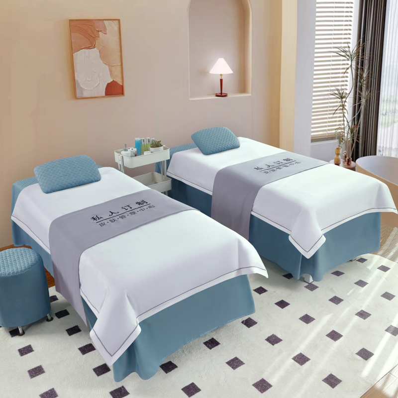 乐逸2025新品四季压线款床罩 压线白+蓝