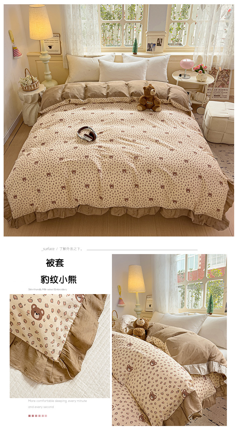 忆生活家纺 2025新款韩版全棉花边款-单被套系列 豹纹小熊