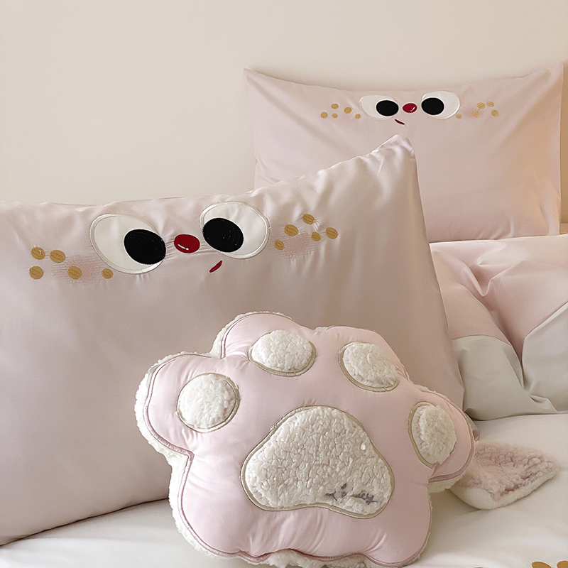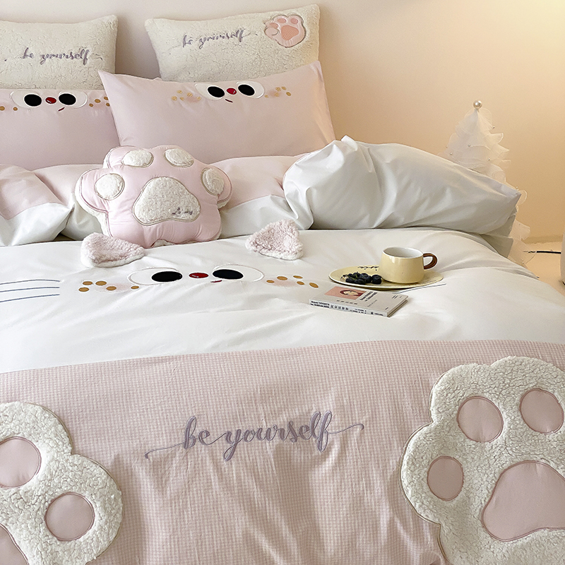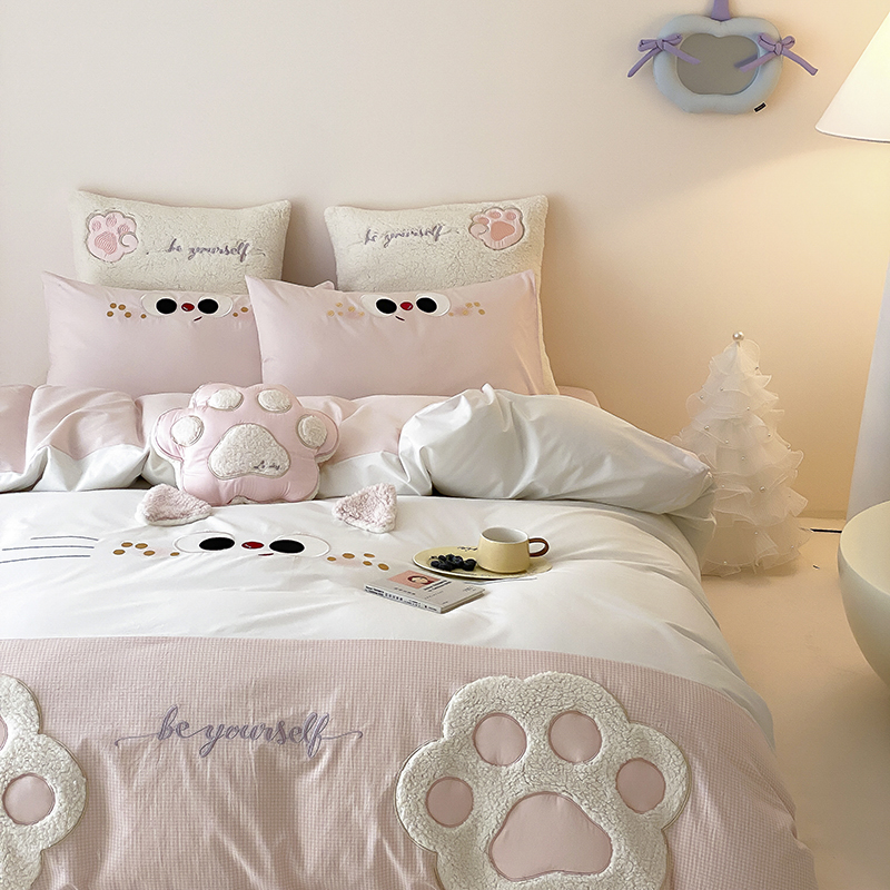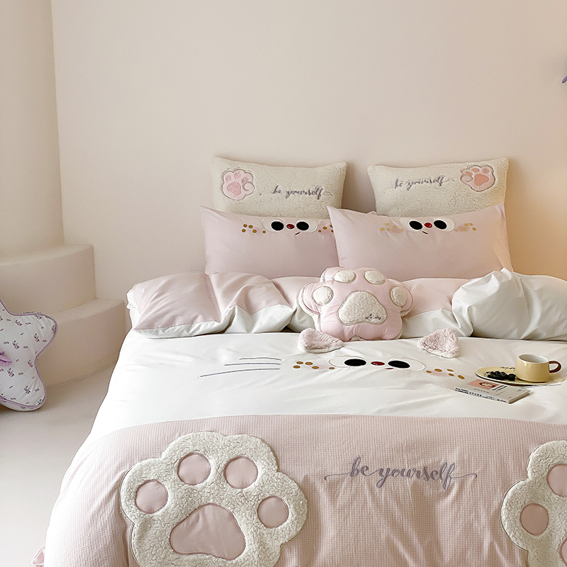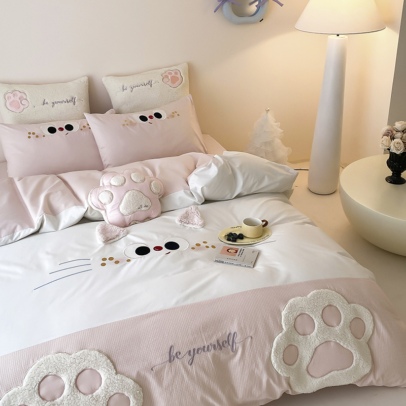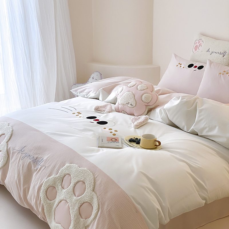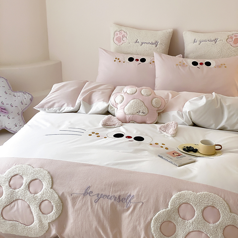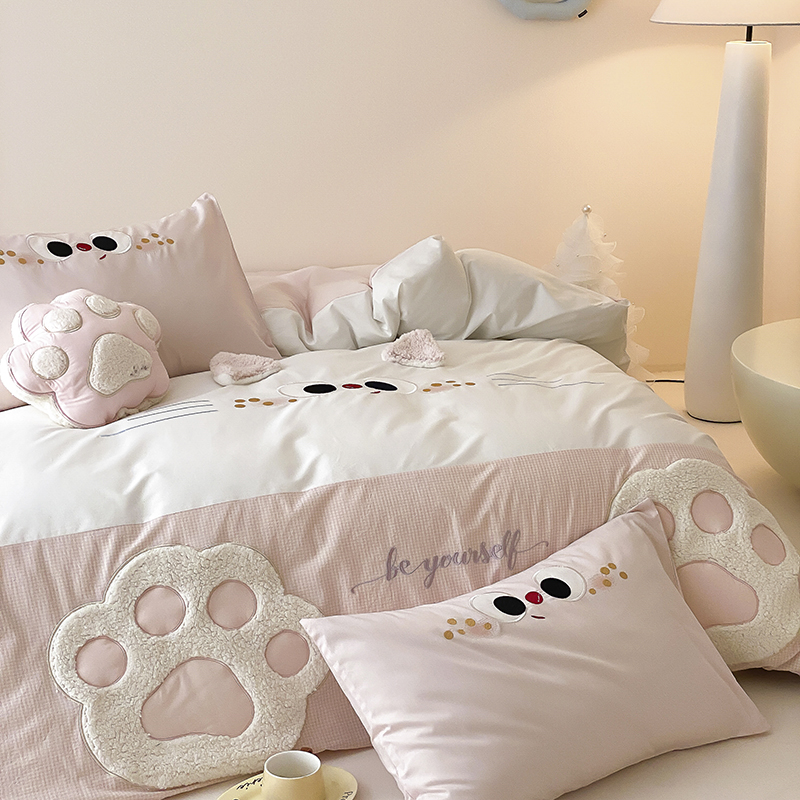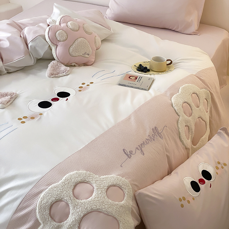 (总)星野 2025春夏新品全棉贴布绣立体耳朵卡通四件套-喵小爪