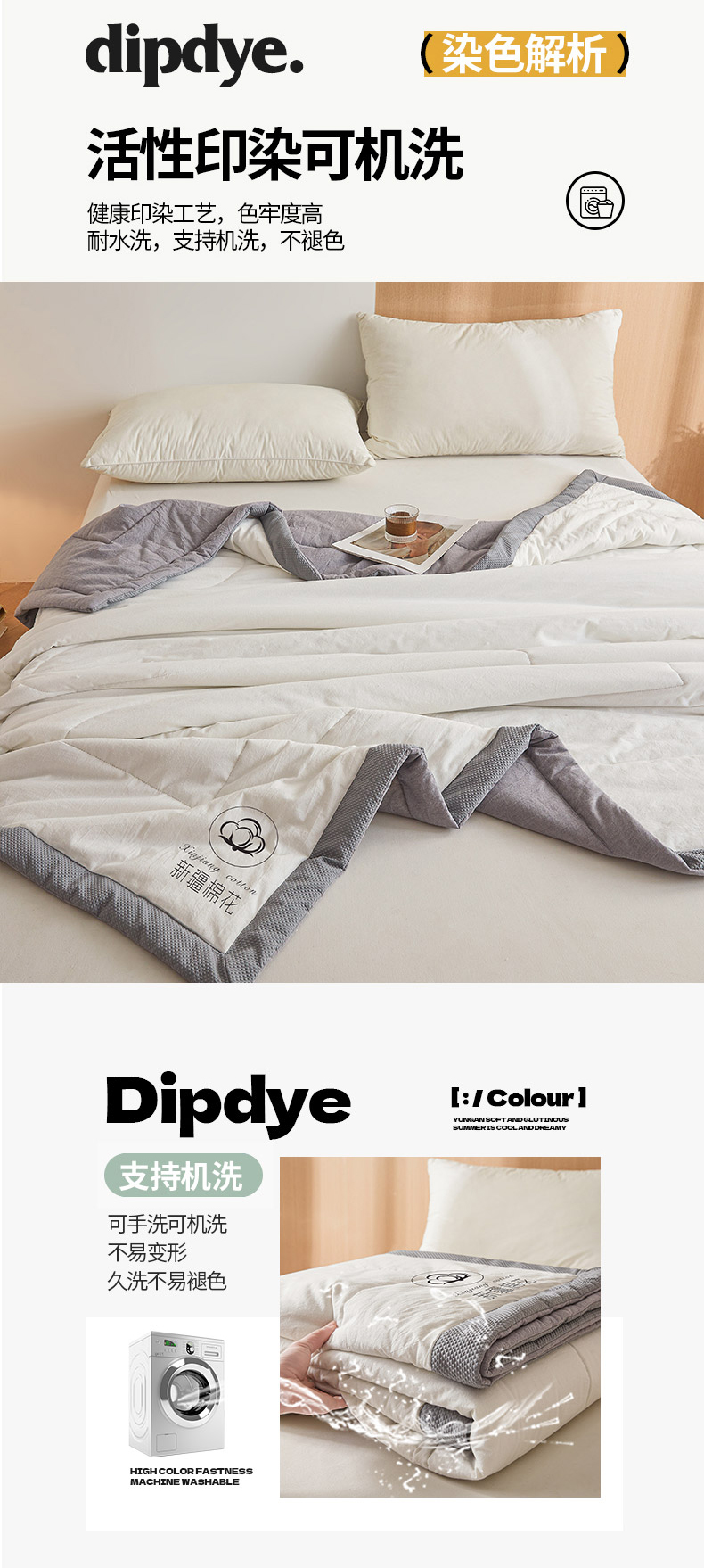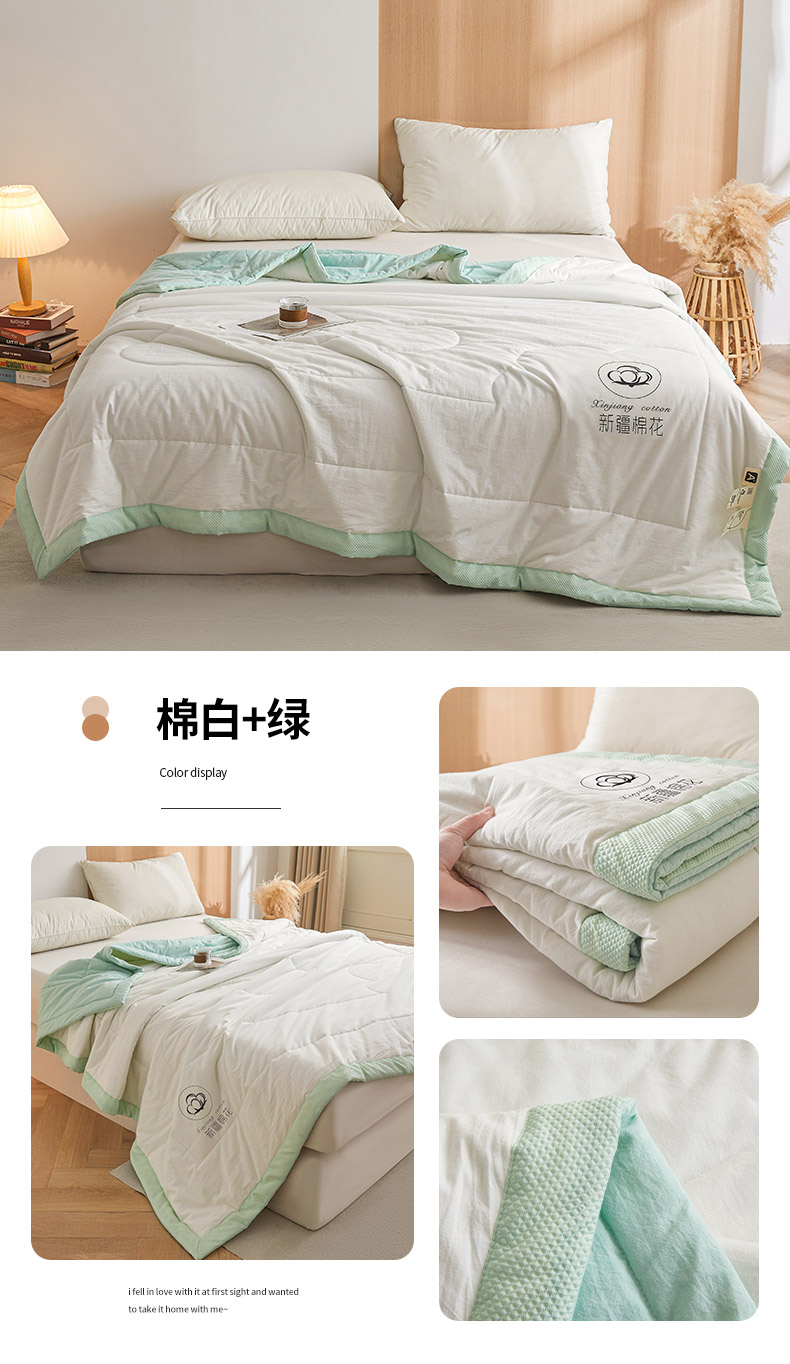 (总)熙宴家纺 2025新款水洗棉100%新疆棉花夏被-棉白,棉白+灰,棉白+蓝,棉白+绿,棉白+玉