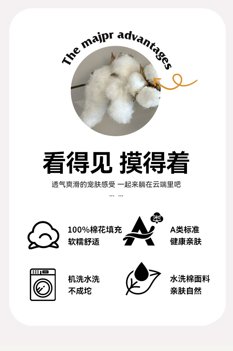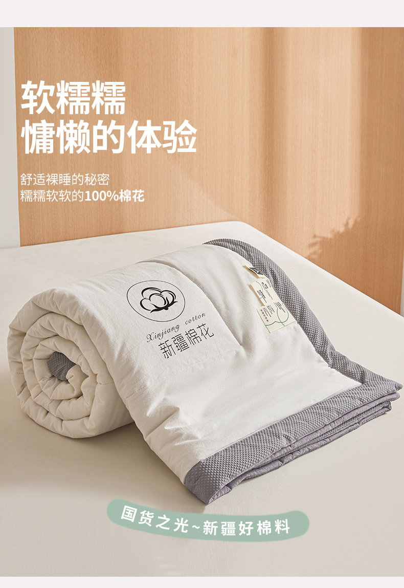 商品名称:(总)熙宴家纺 2025新款水洗棉100%新疆棉花夏被-棉白