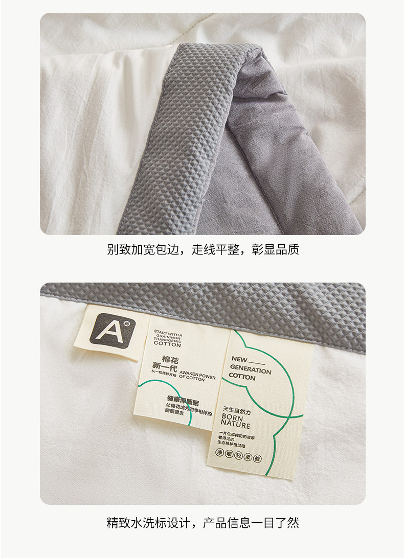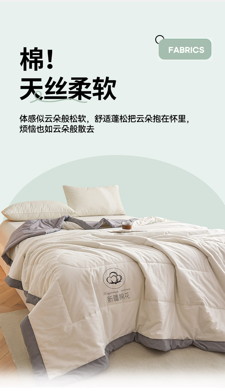 (总)熙宴家纺 2025新款水洗棉嵌绳款100%新疆棉花被,豆绿,粉玉,石灰,雾蓝