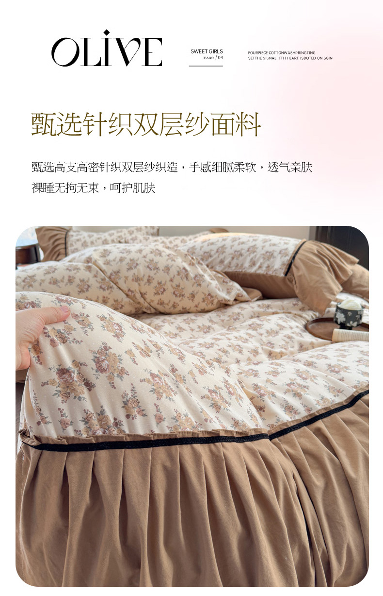 (总)沐慕 2025新款法式针织双层纱印花系列四件套
