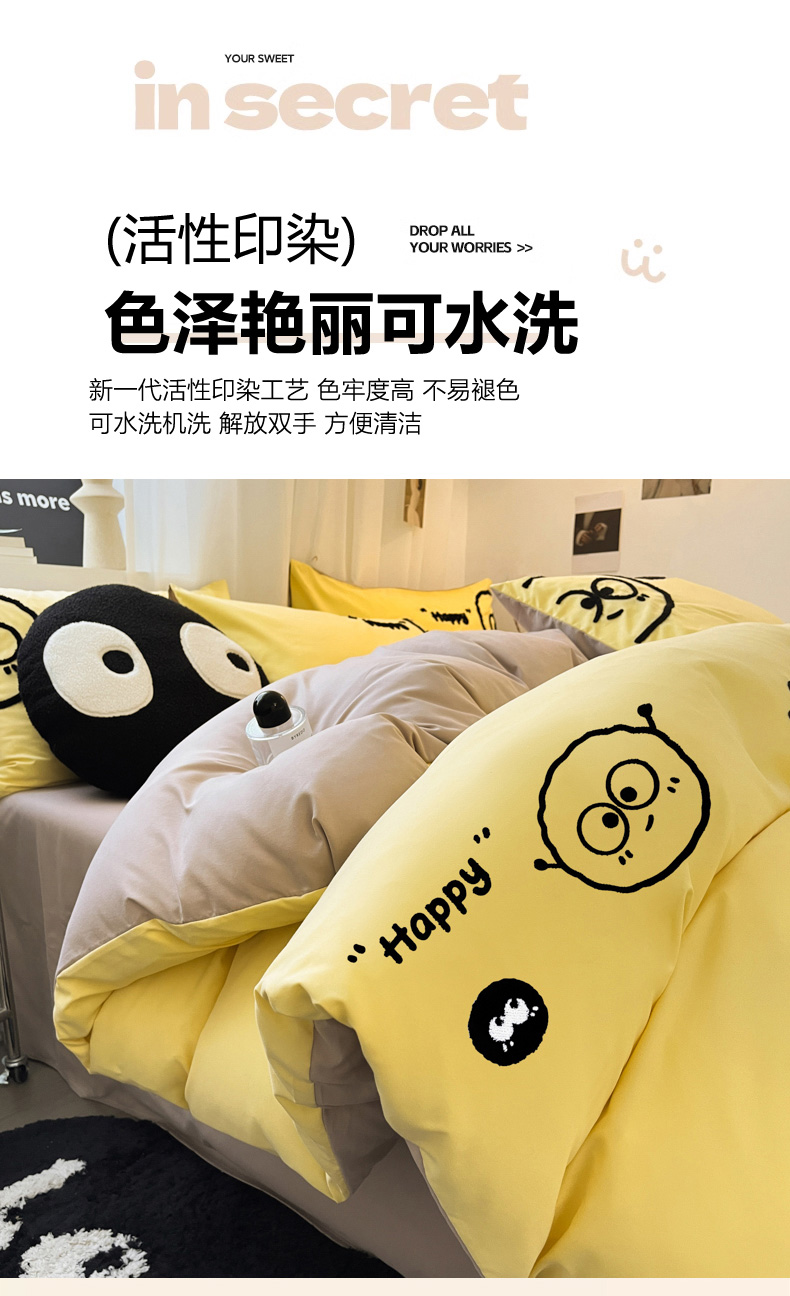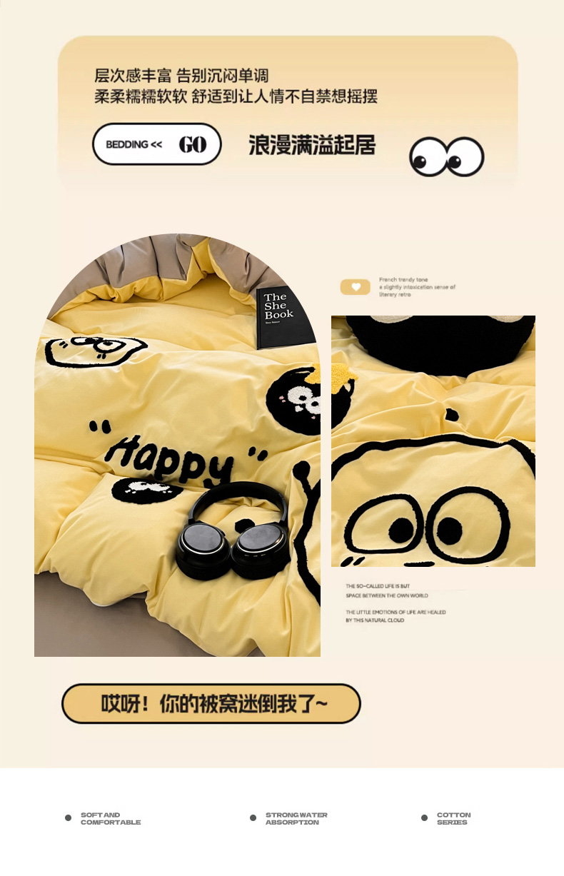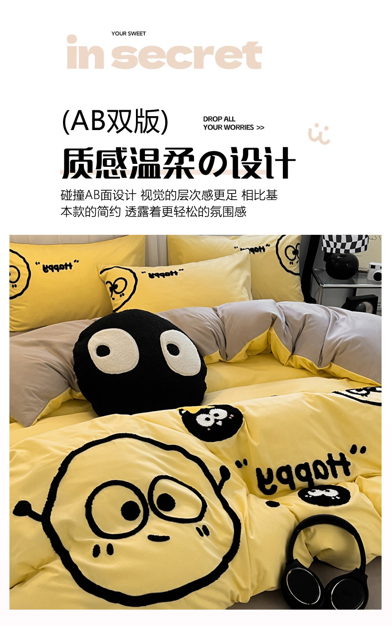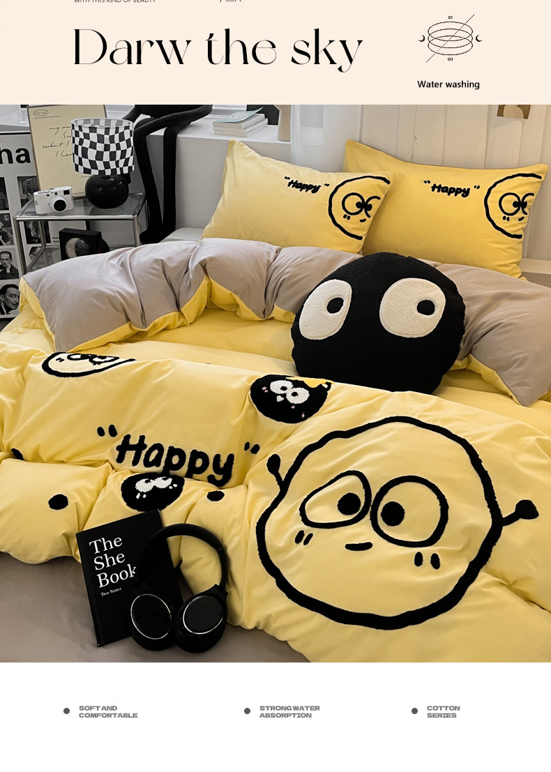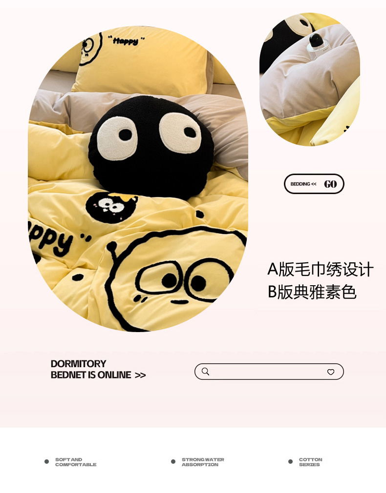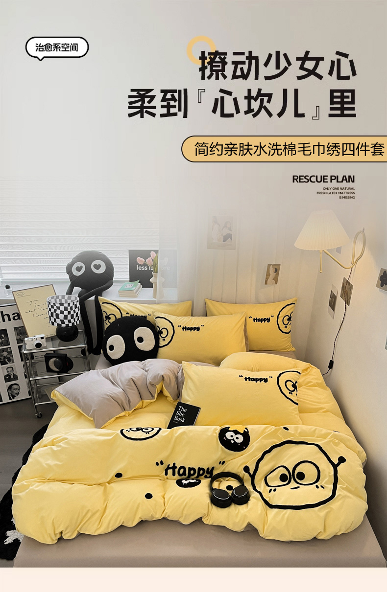 当前位置: 91家纺网 > 商品网购 > 床品套件 > 四件套 > 水洗棉四件套 > 沐慕 2025新款简约亲肤毛巾绣四件套 黑球球-黄色