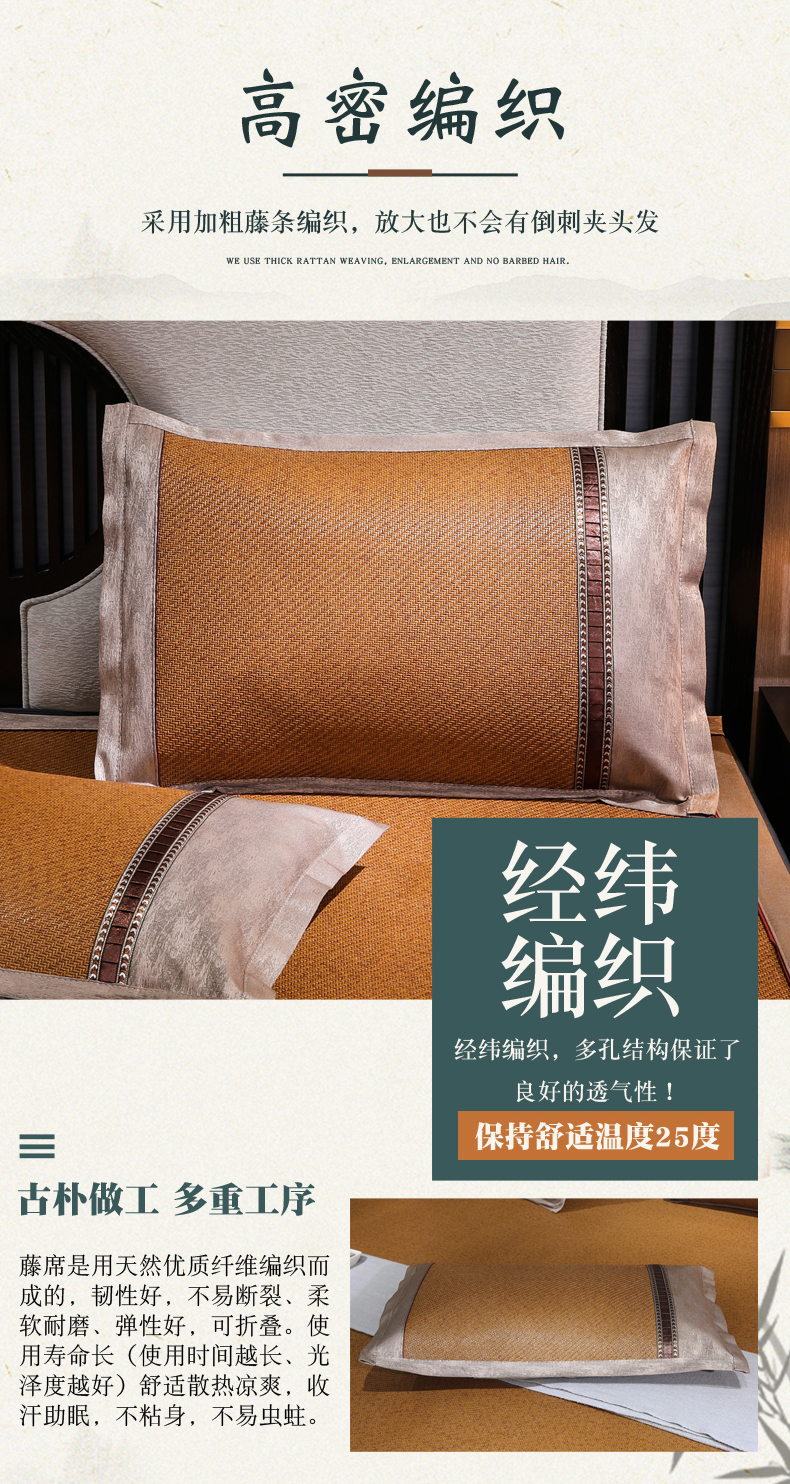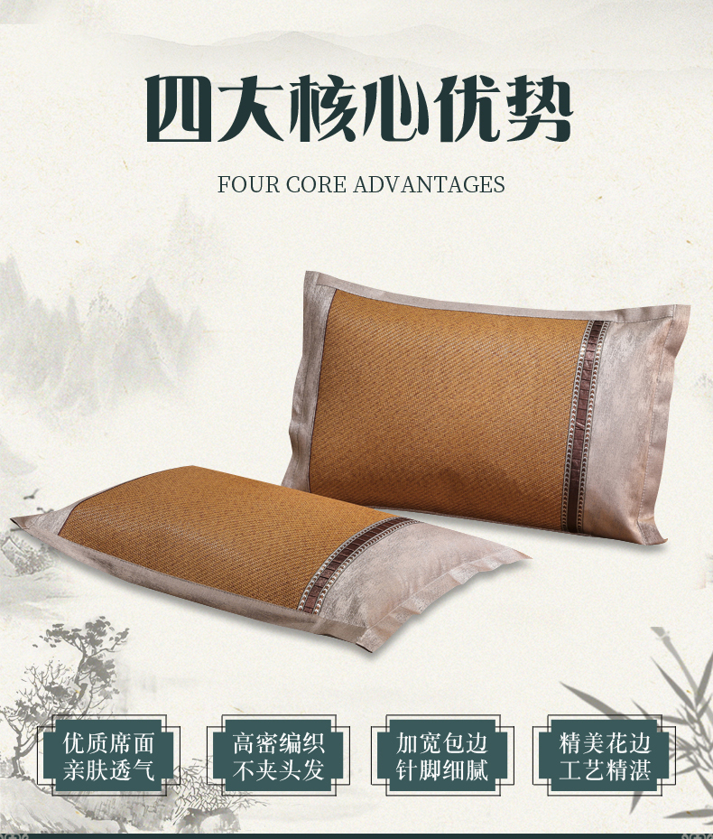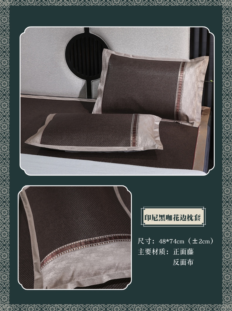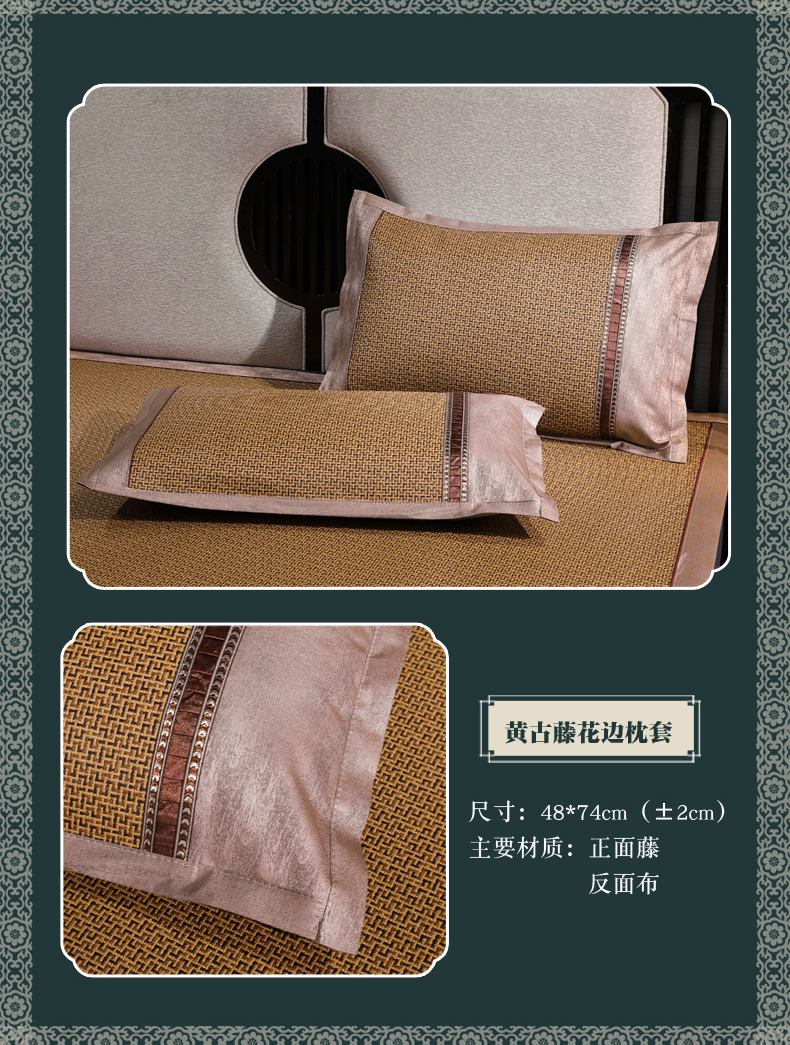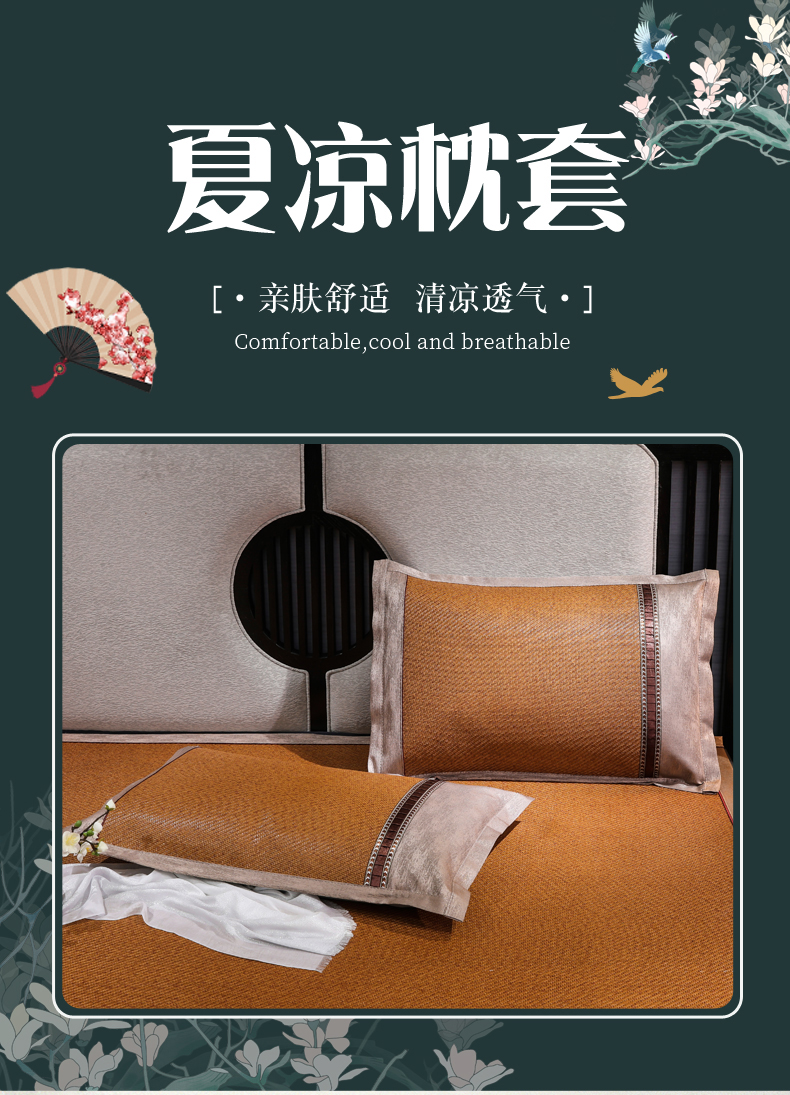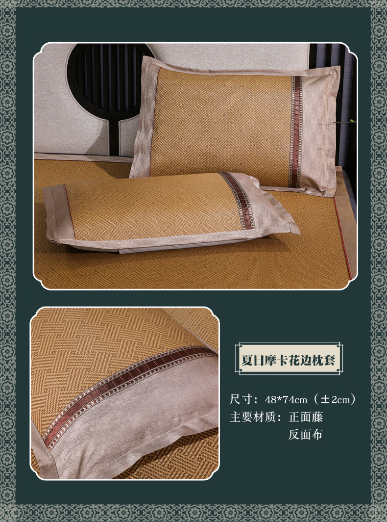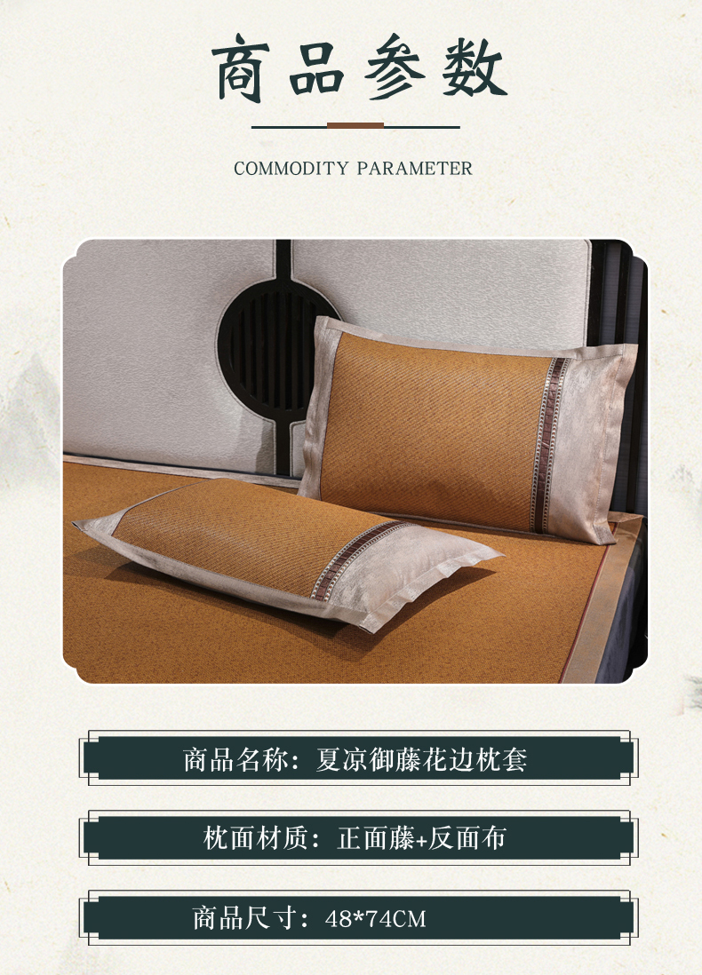 商品名称:小牛席业 2025新款B夏凉枕套系列凉枕套夏天枕套冰丝枕套竹枕套藤枕套冰藤枕套 B冰藤银灰-花边枕套