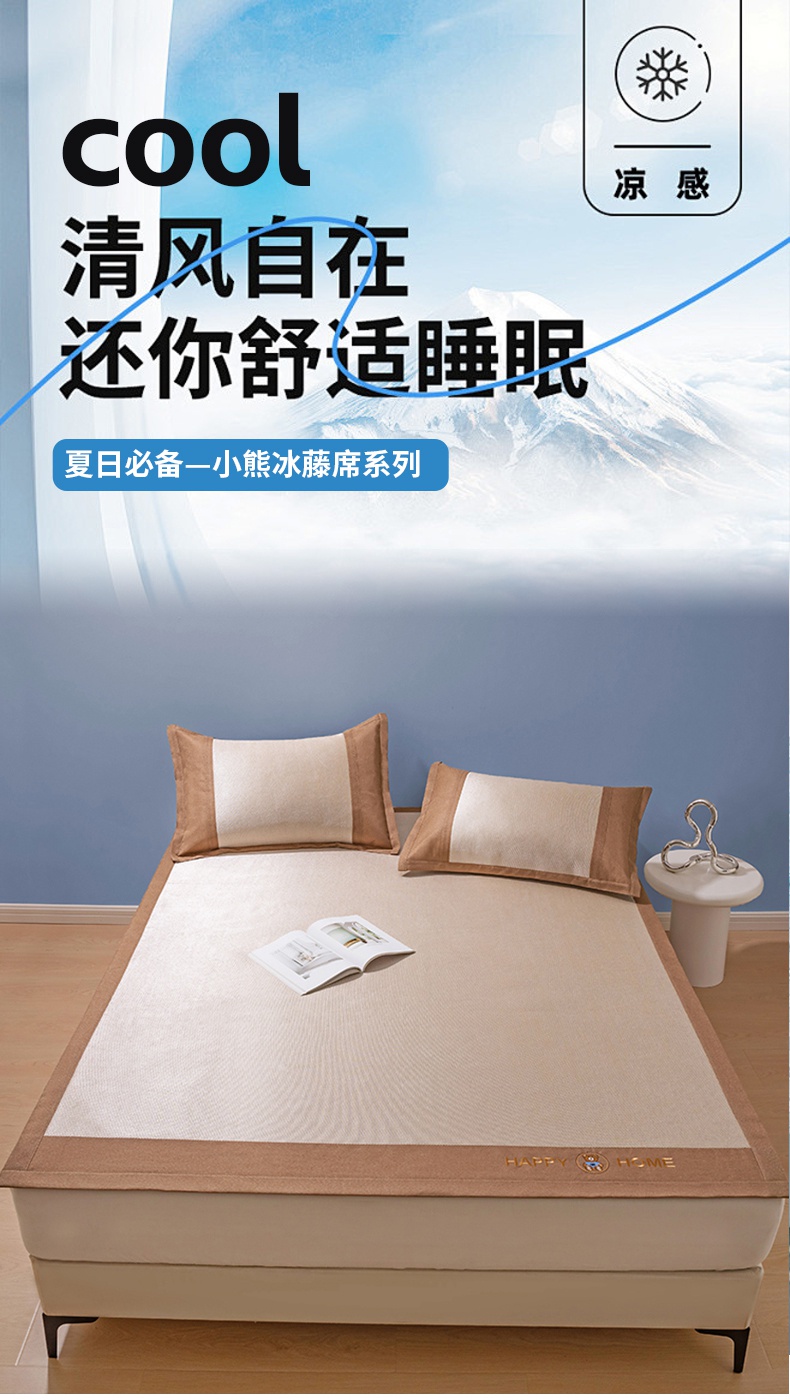 商品名称:航途席业 2025新款小熊藤冰丝凉席 快乐熊奶绿