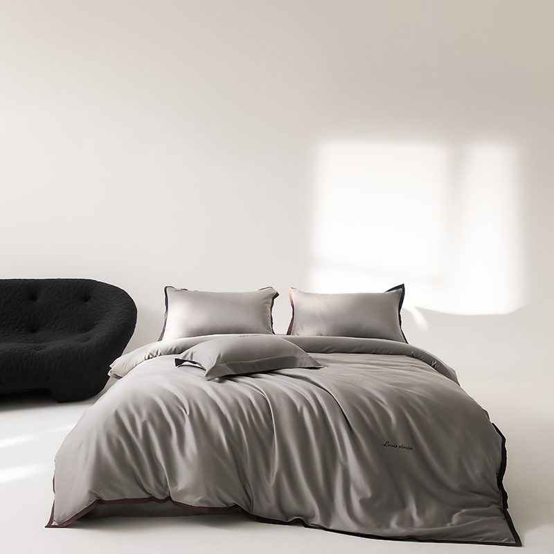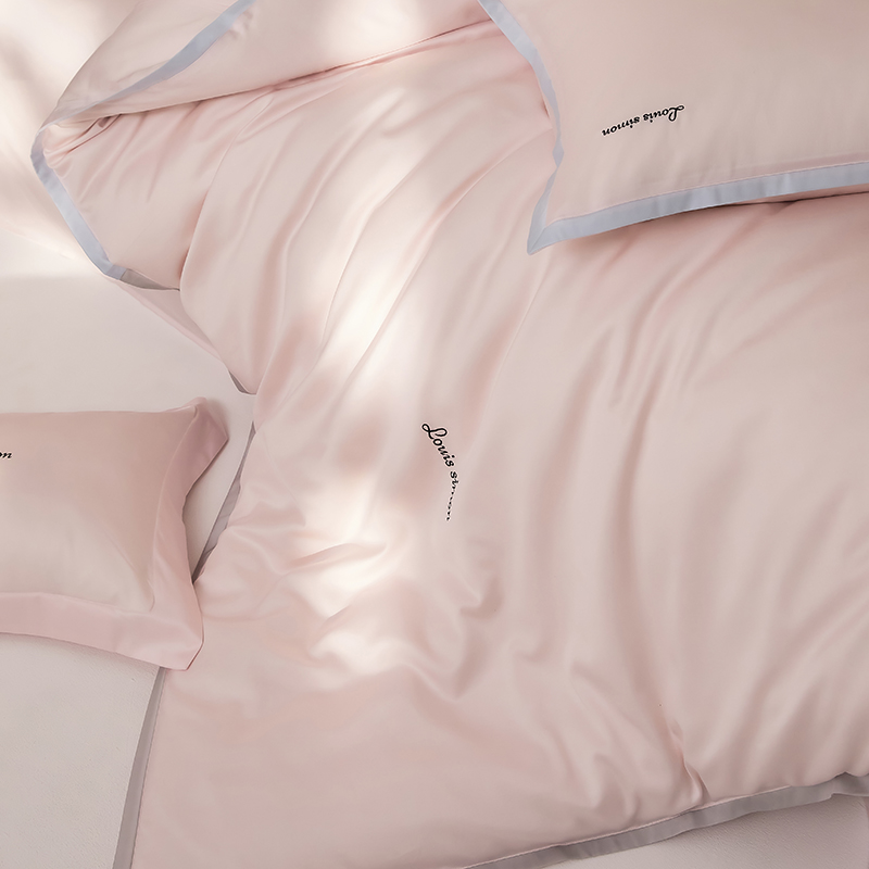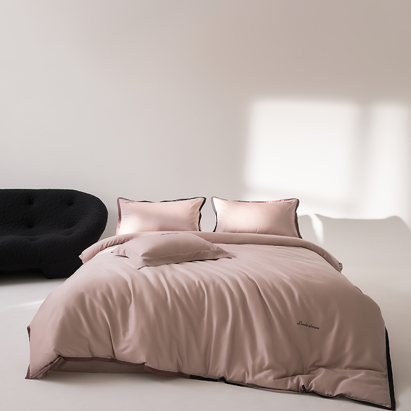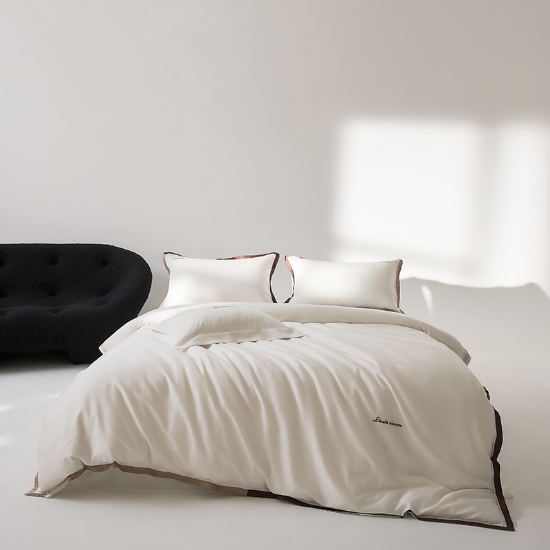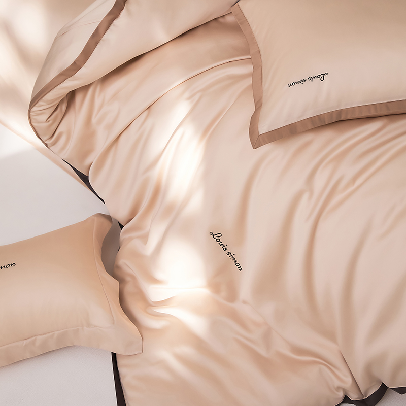 涞澳家纺 2025新款天丝棉双色拼边绣字款四件套-可夏系列 可夏-暖玉