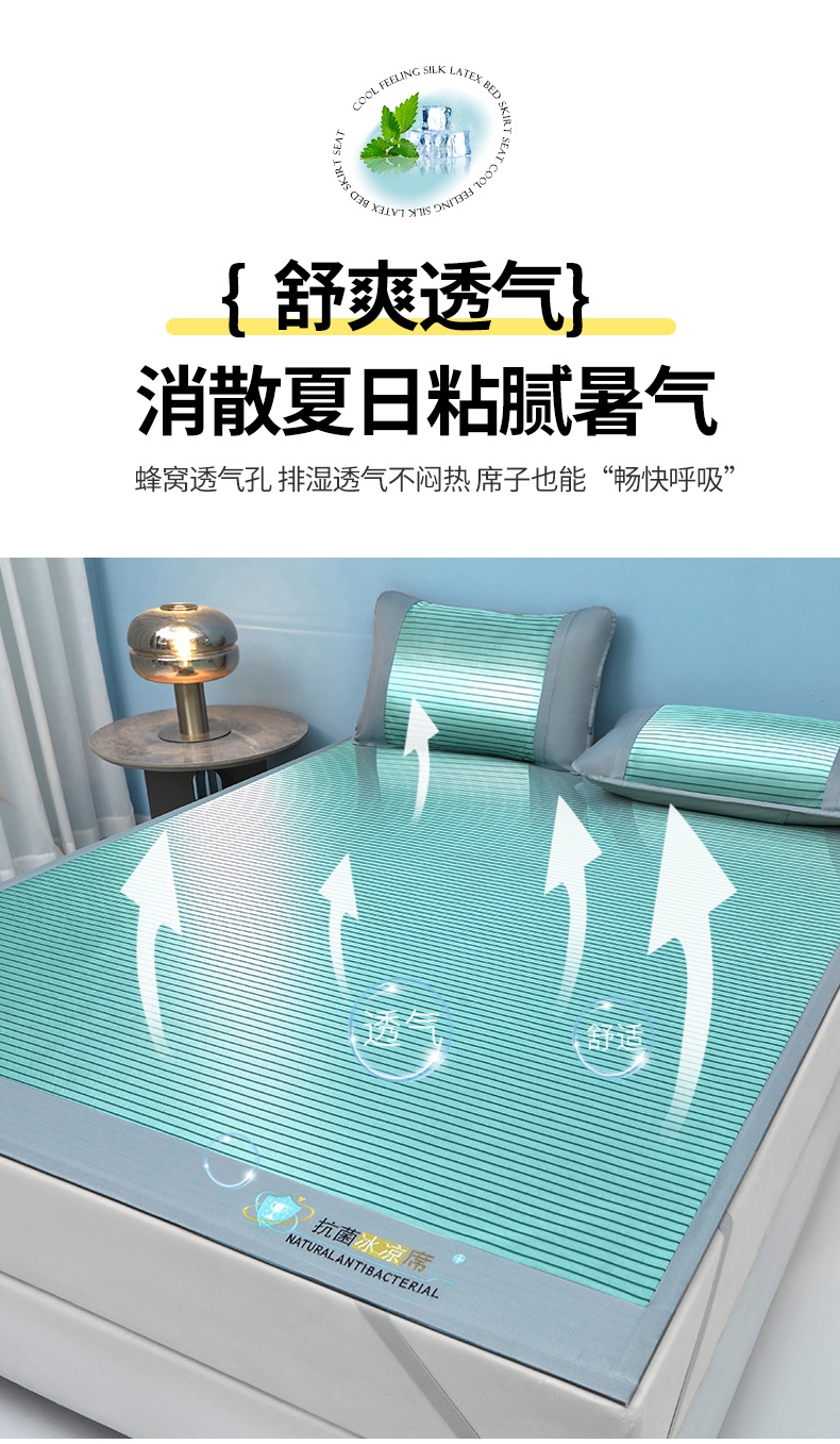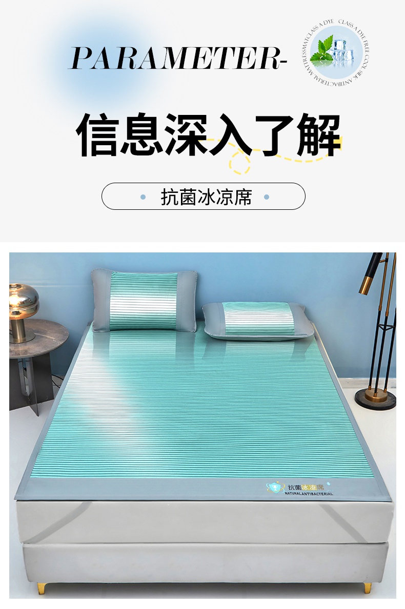 • 91家纺网 家纺一手货源 找家纺 航途席业 2025新款凉席抗菌三明治可水洗碳光冰丝席宽边刺绣冰丝席 素夏 薄荷绿-床席款