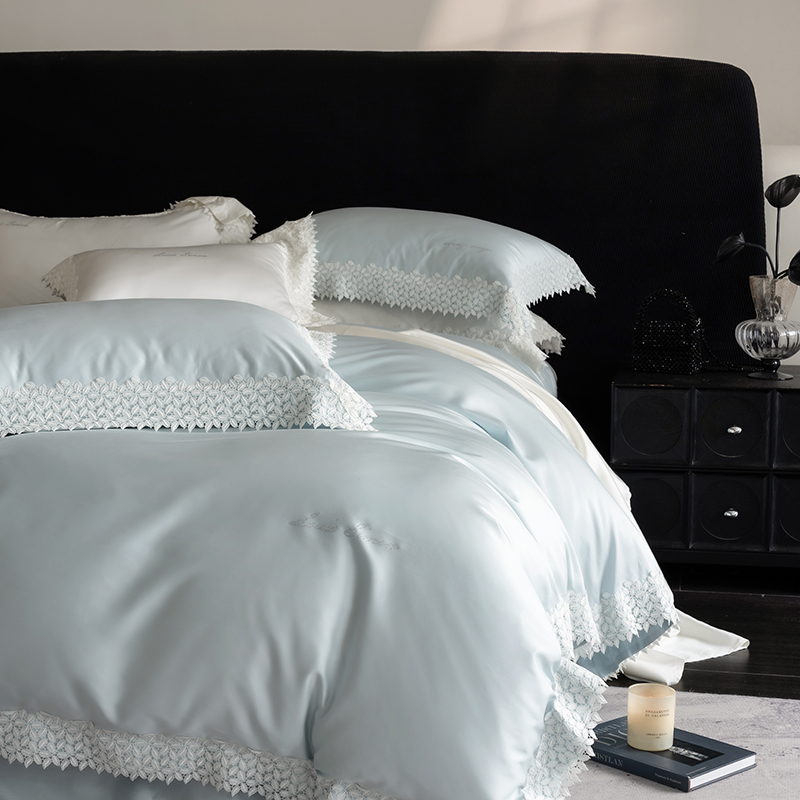 涞澳家纺 2025新款天丝棉花边款四件套--星娜系列 星娜-欣欣蓝