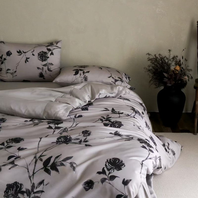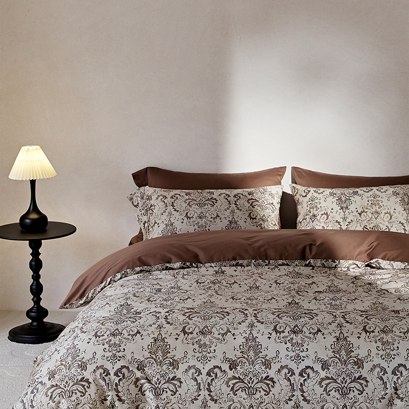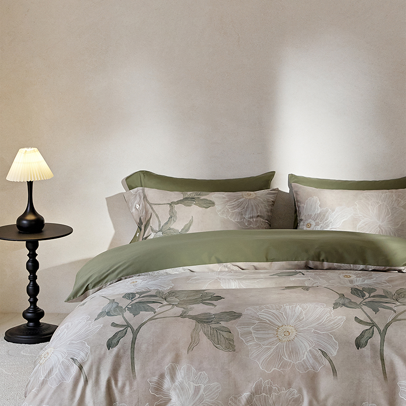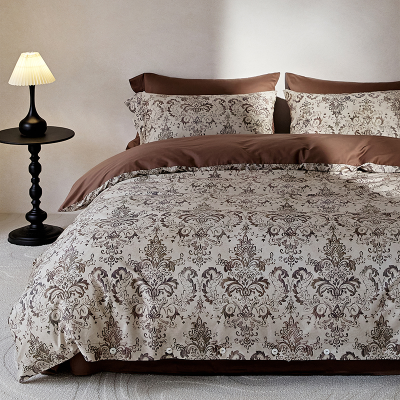 (总)涞澳家纺 2025新款全棉贡缎数码印花纽扣款四件套