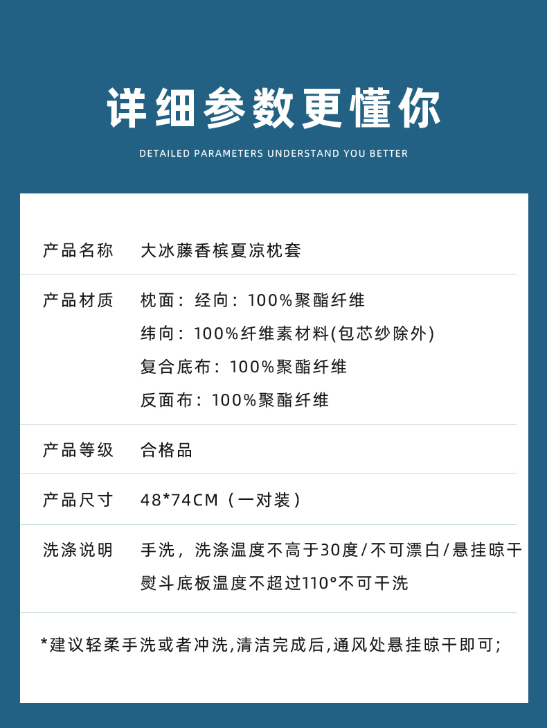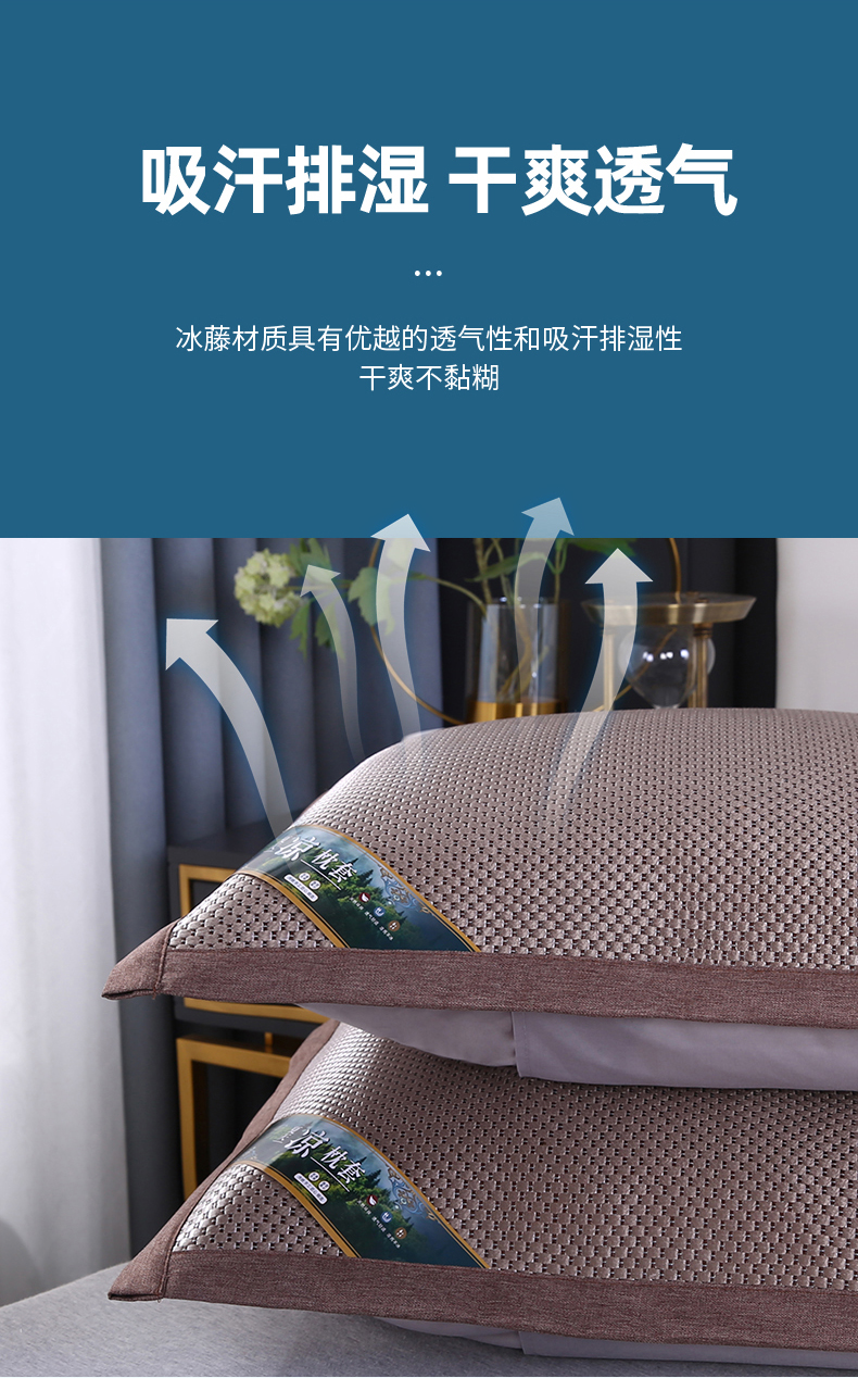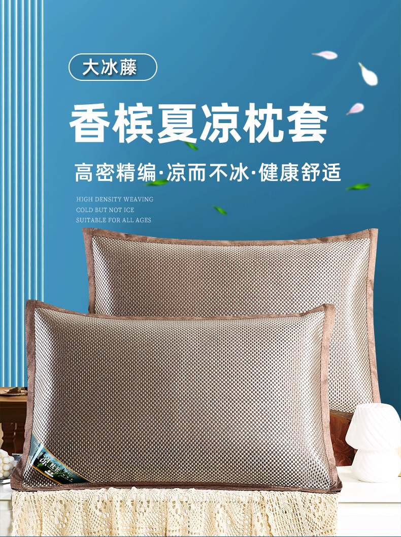 商品名称:小牛席业 2025新款大冰藤夏凉枕套系列凉枕套夏天枕套冰丝枕套竹枕套藤枕套冰藤枕套 大冰藤夏凉枕套(香槟)