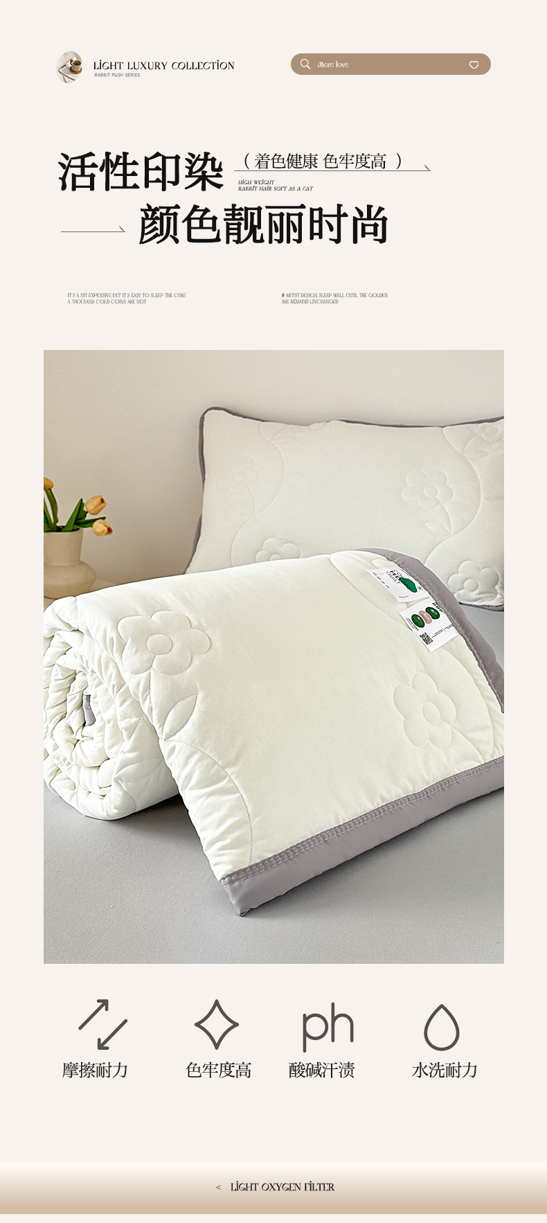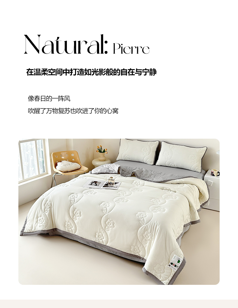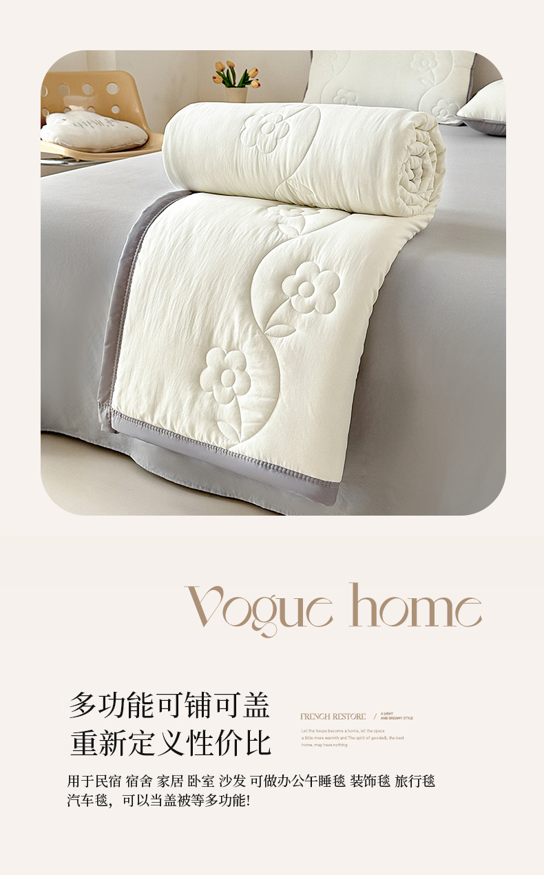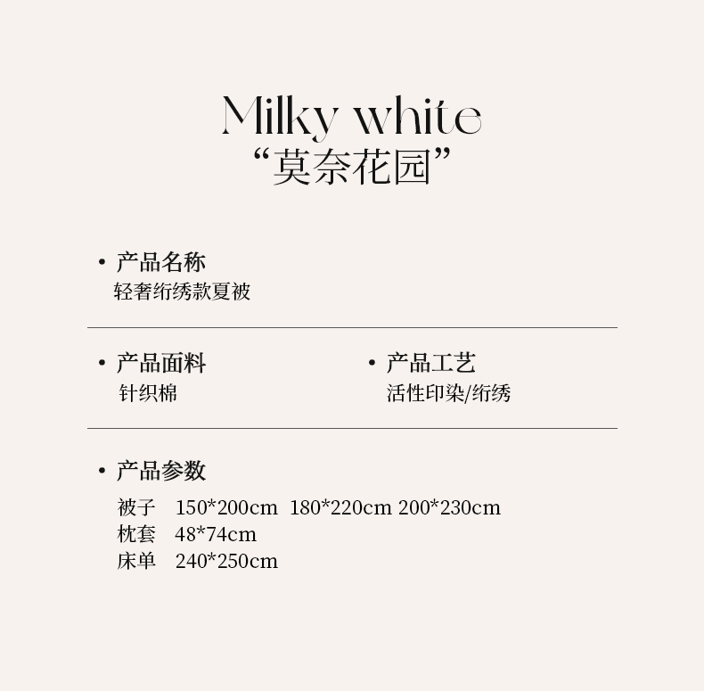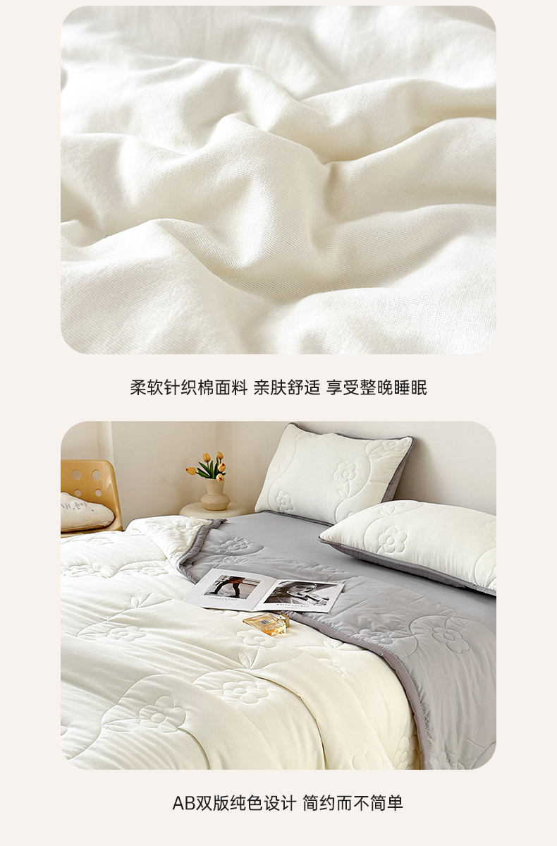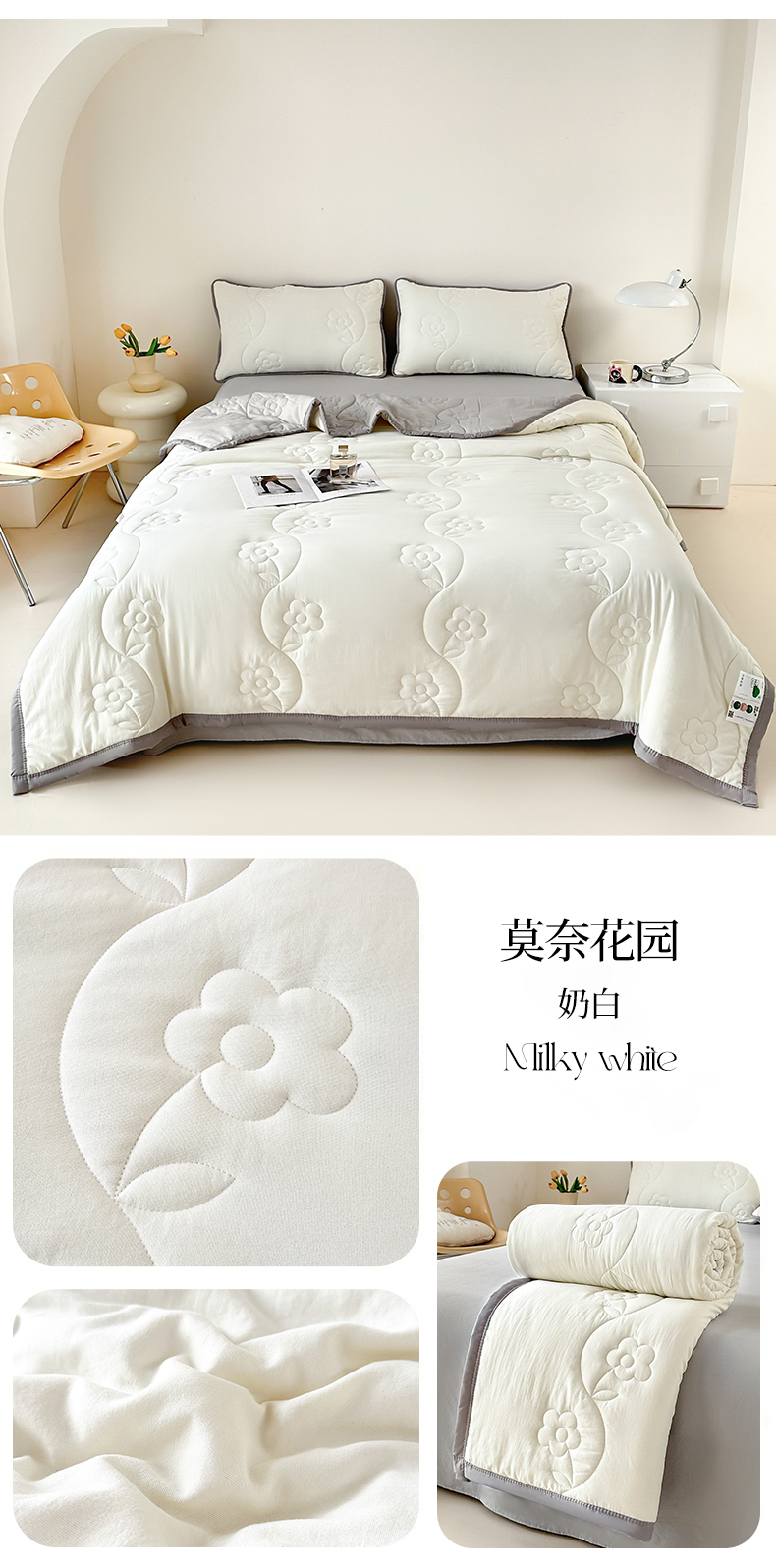 • 91家纺网 家纺一手货源 找家纺 芙绣家纺 2025新款针织棉绗缝夏被-莫奈花园 莫奈花园-奶白