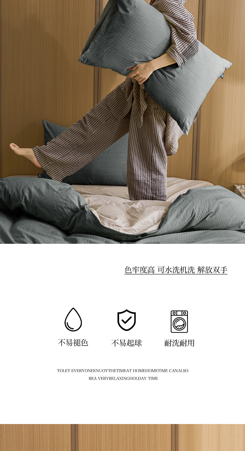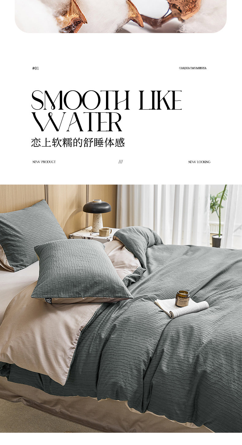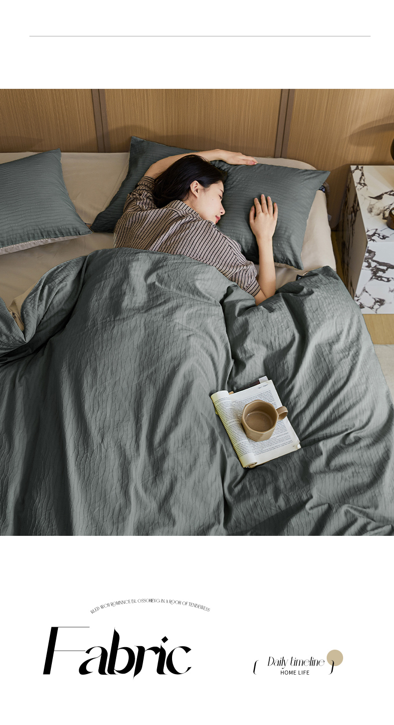 恋人优选 2025新款波纹纱全棉纯棉提花四件套 山屿灰