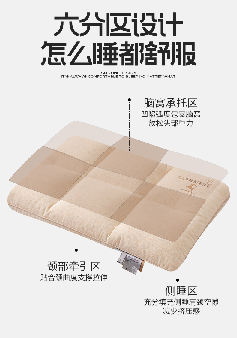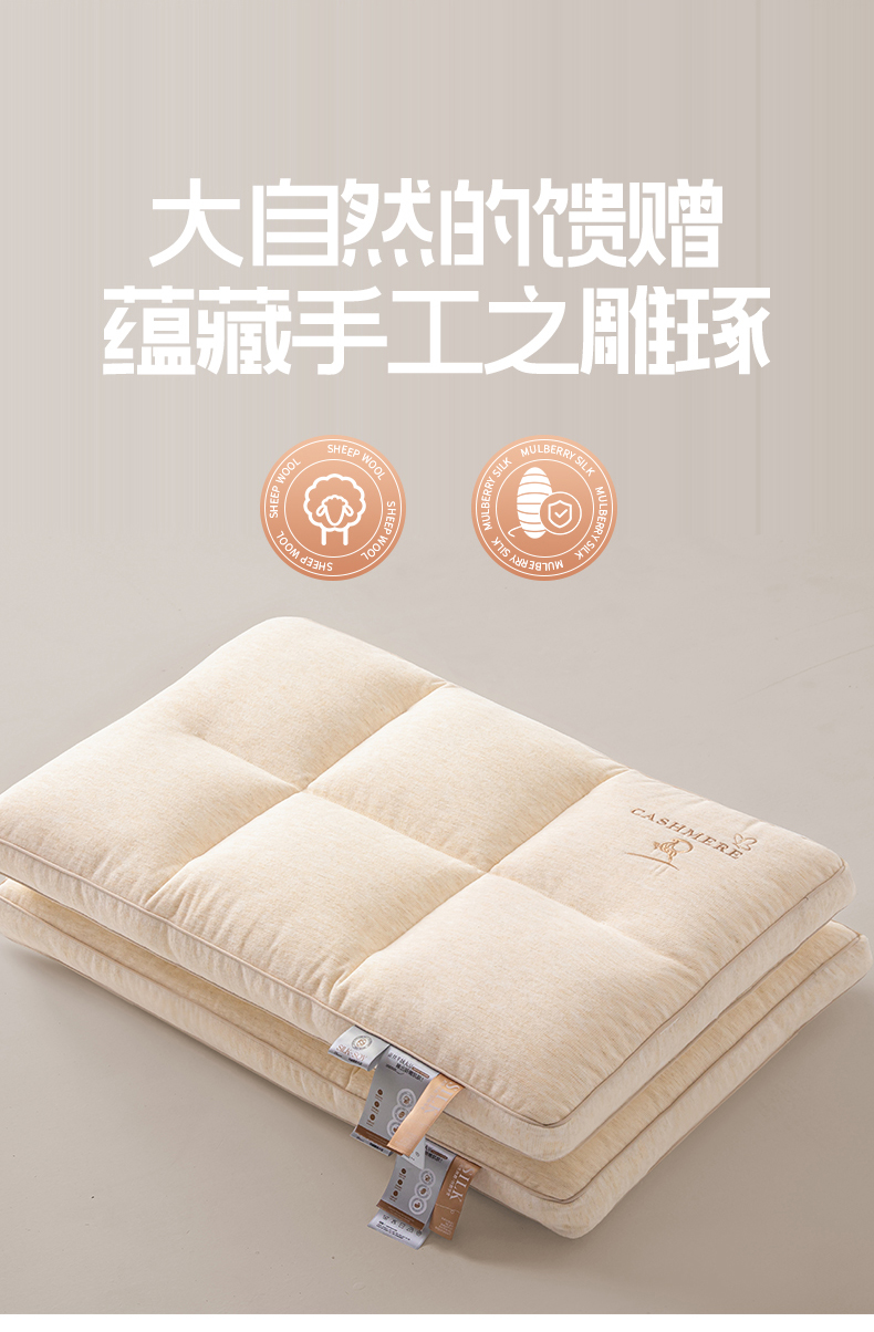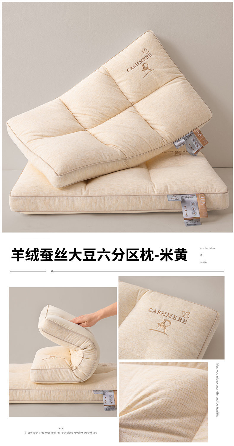 当前位置: 91家纺网 > 商品网购 > 枕头/枕芯/保健枕/颈椎枕 > 普通枕芯 > 麦肯锡 2025新款羊绒蚕丝大豆六分区枕 米黄48*74