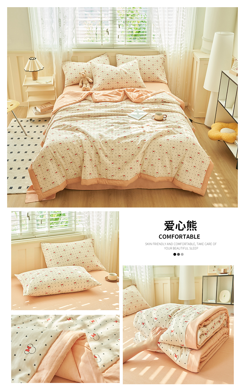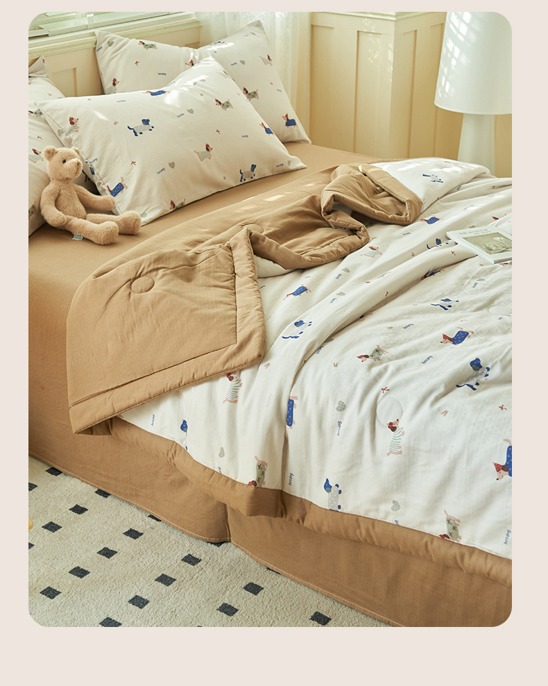 当前位置: 91家纺网 > 商品网购 > 床品套件 > 四件套 > 夏被四件套 > 金鹰 2025新款A类纯棉双层纱大豆夏被四件套全棉夏凉被空调被 爱心熊