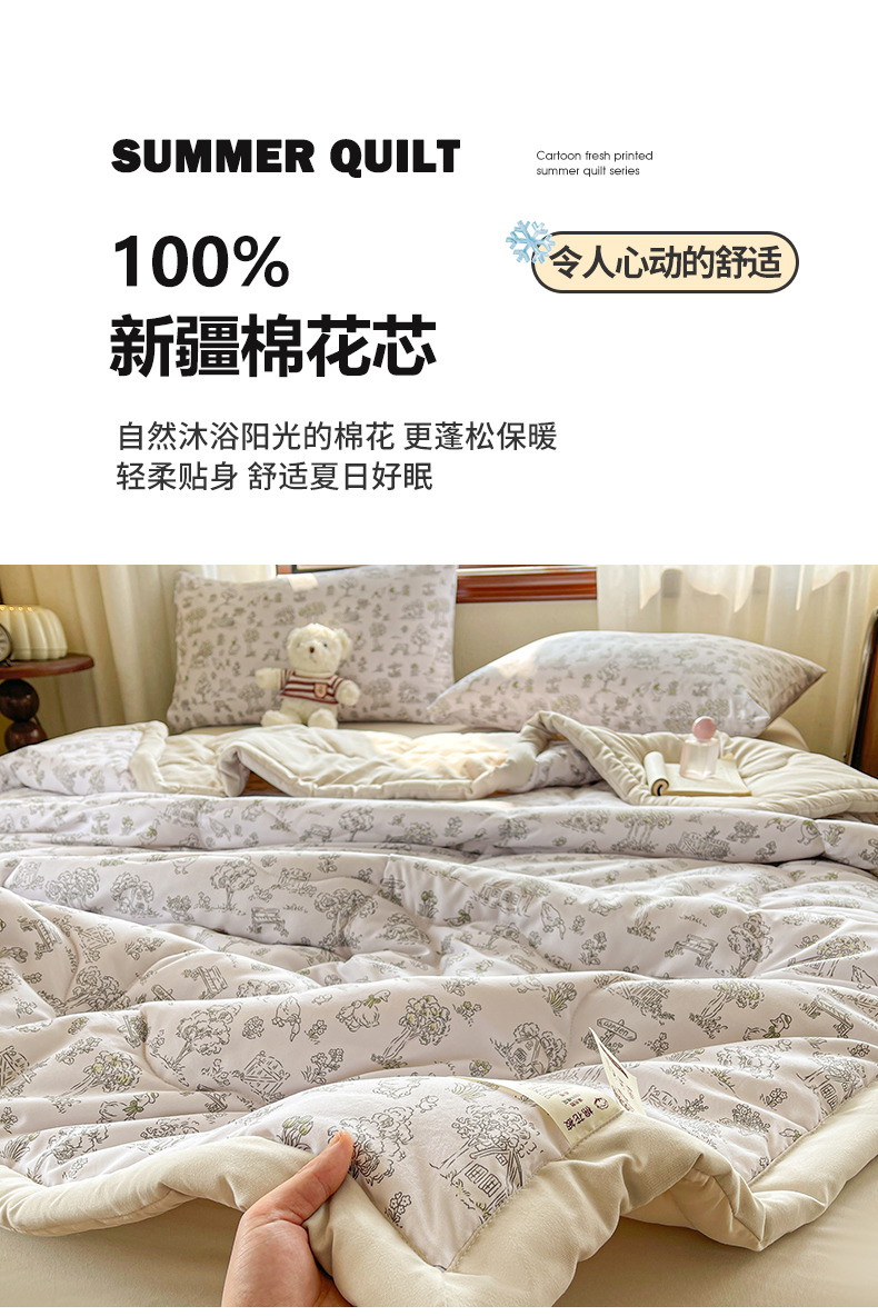 (总)易博 2025新款100% 棉花小清新双层纱新疆棉夏被夏凉被空调被棉花被(带买家秀),爱丽丝,蝶舞,动物世界,好丽友,花趣,花园兔,可爱萌宠 卡其,可爱萌宠 绿,腊肠狗,曼塔玫瑰,绵绵南瓜,木马奇缘,山茶物语,田园牧歌,熊博士,组合图仅做展示