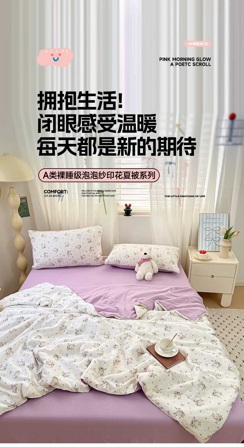 寐眠 2025春夏新款泡泡纱印花夏被夏凉被空调被 薰衣草
