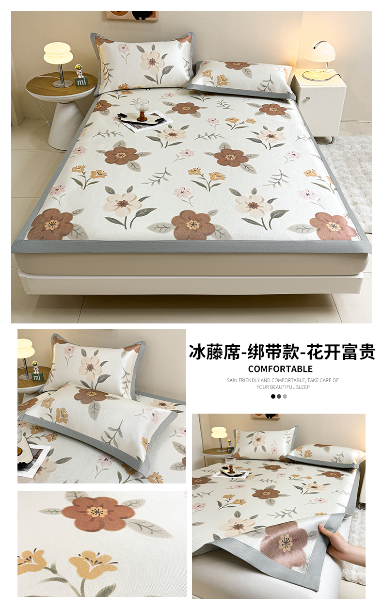 当前位置: 91家纺网 > 商品网购 > 床上用品 > 凉席 > 凉席套件 > 雯豆2025夏季新品冰藤印花凉席三件套平铺绑带款冰丝凉席三件套 冰藤席-绑带款-花开富贵