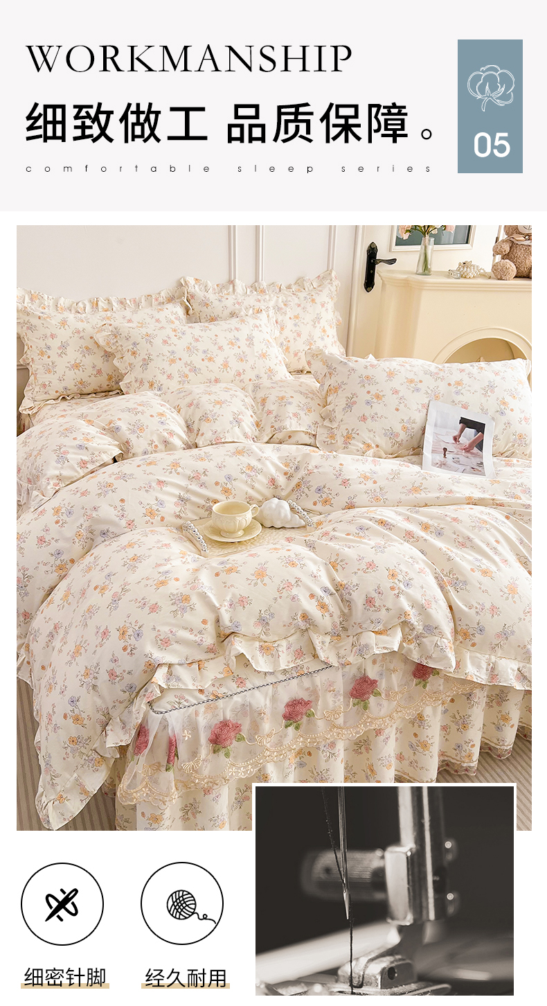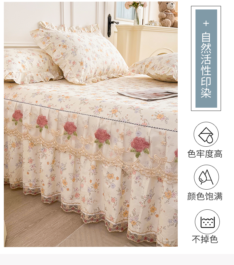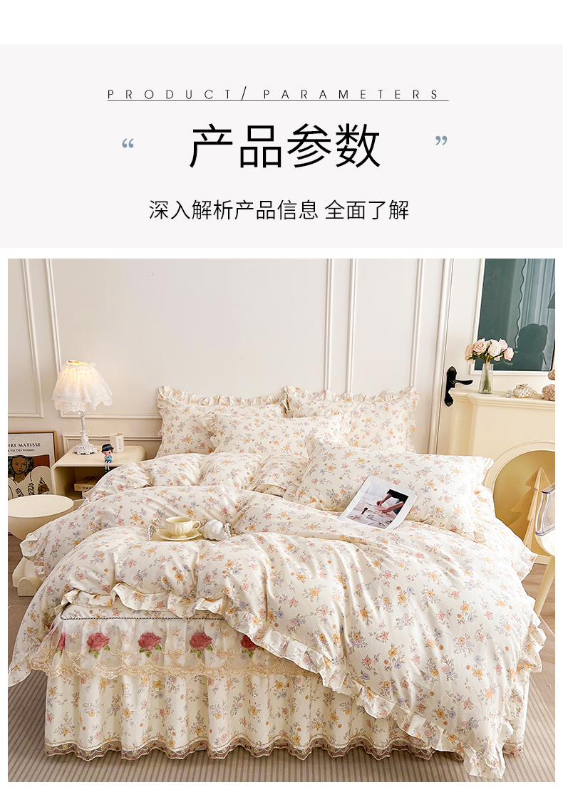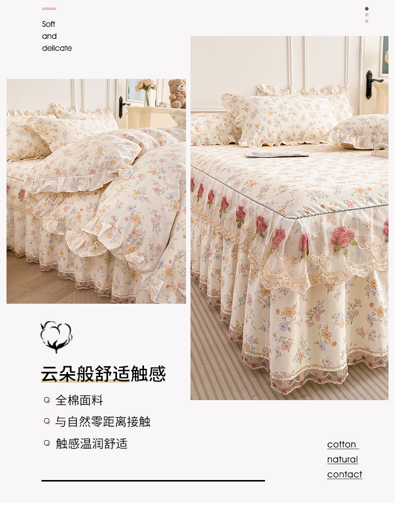 当前位置: 91家纺网 > 商品网购 > 床品套件 > 四件套 > 全棉普通四件套 > 十个点 2025新款全棉纯棉蕾丝花边床裙四件套 花小莱-粉