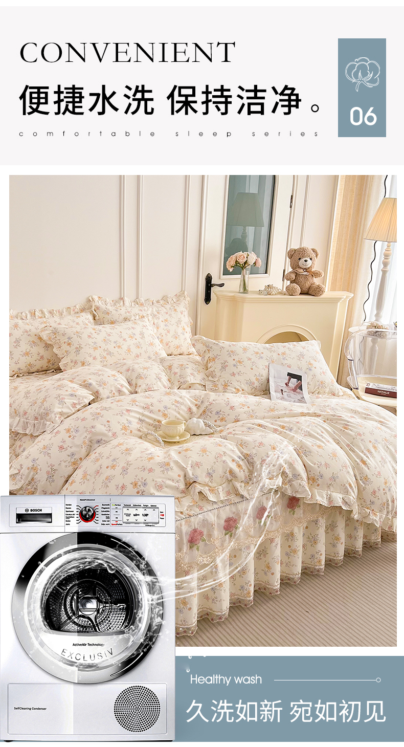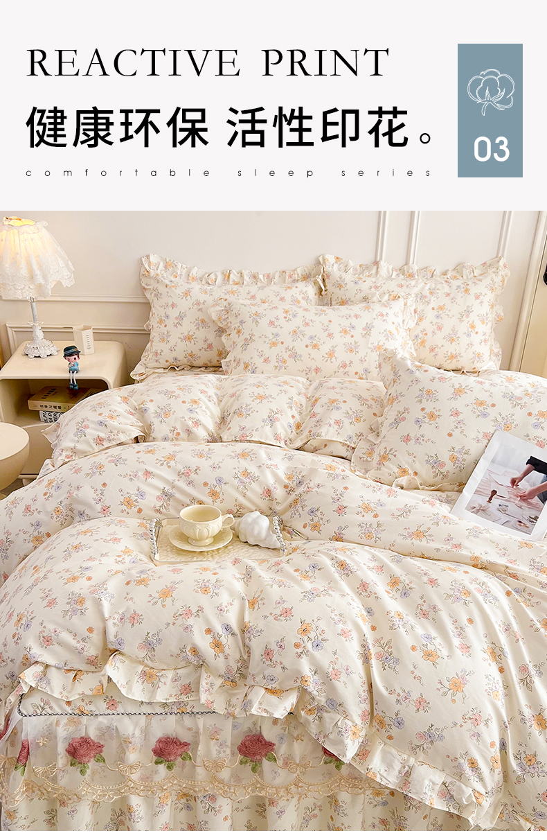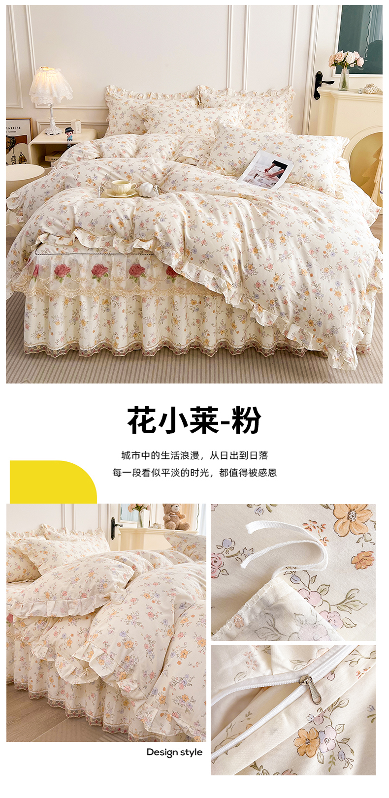 当前位置: 91家纺网 > 商品网购 > 床品套件 > 四件套 > 全棉普通四件套 > 十个点 2025新款全棉纯棉蕾丝花边床裙四件套 花小莱-粉